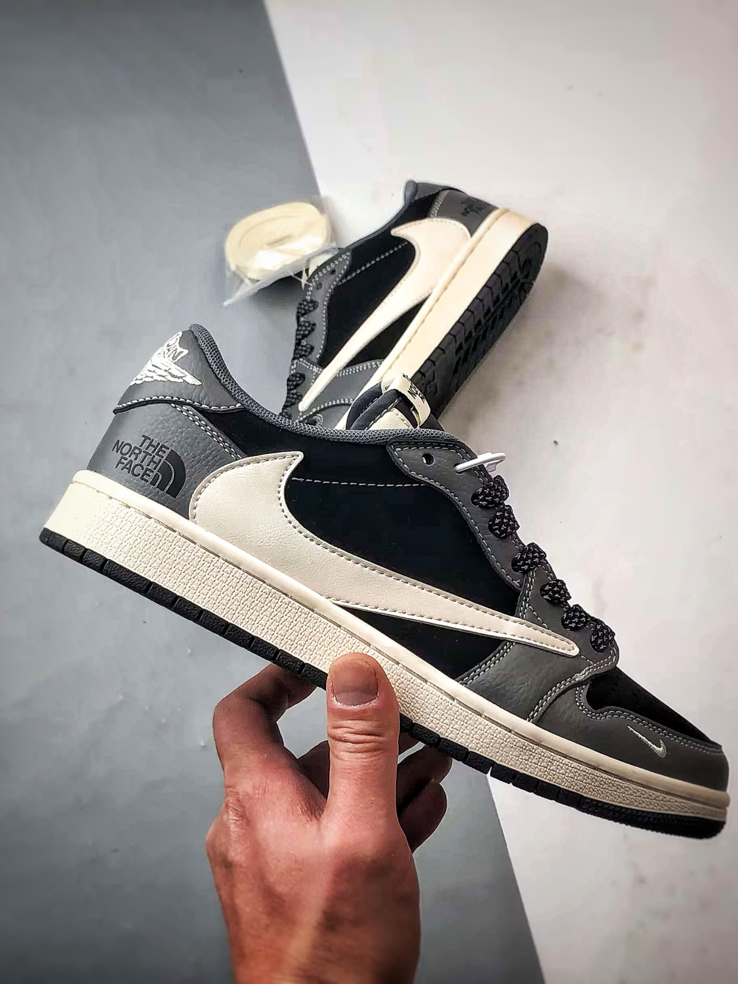 North Face Black Gray White Reverse Swoosh, Premium Factory Original Craftsmanship