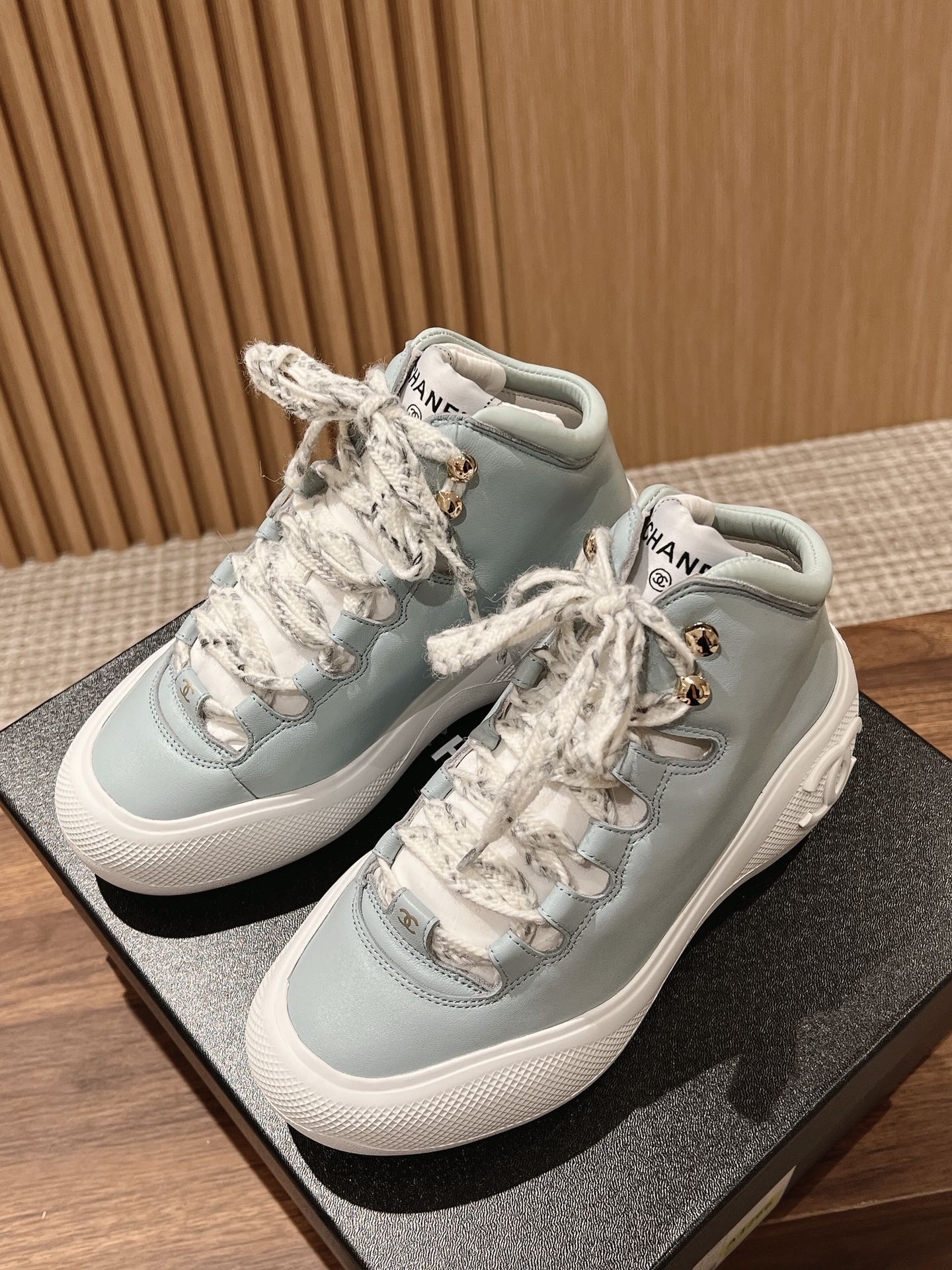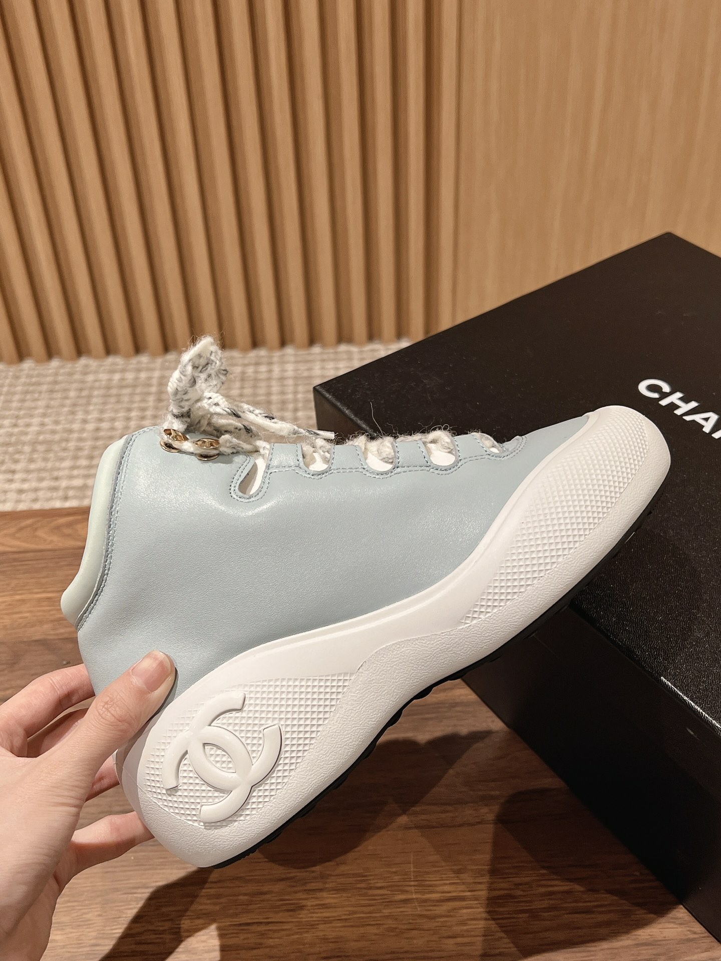 [Top Version] Leather Upper# Chanel 2022N Coco Neige Ski Series Snow Boots, Small Chanel C House Autumn/Winter Limited Edition Sport Lace-Up Platform Women's Boots, Jennie Same Performance Shoes. Comfortable and easy to wear, yet super cool. Molded anti-slip studded outsole. Each pair comes with a dedicated keychain. The anti-slip double C logo can be opened. Upper made of calfskin and tweed fabric, lining made of sheepskin, sole made of molded two-color platform sole. Sole height approximately 5cm. Sizes 35-40.
