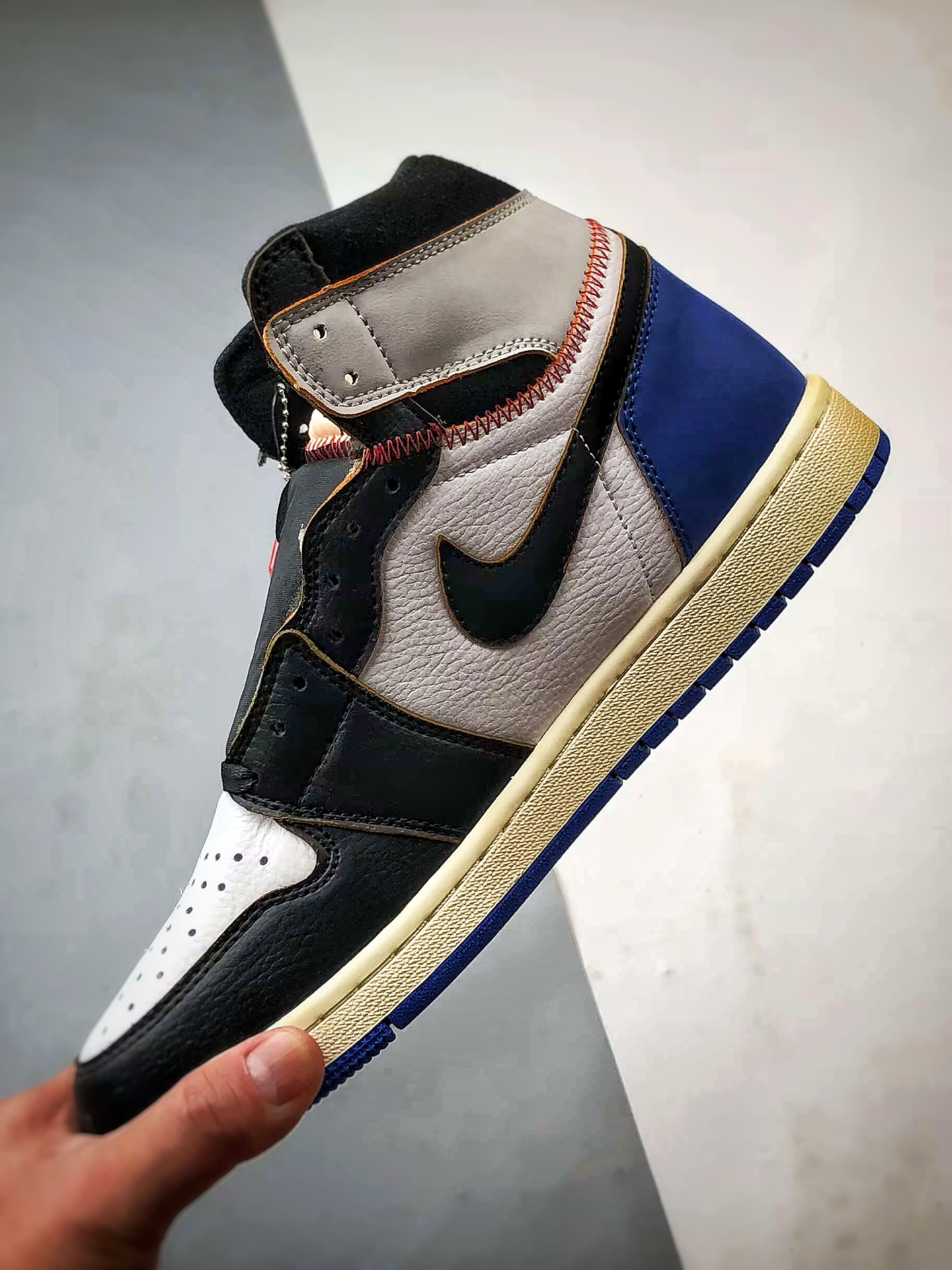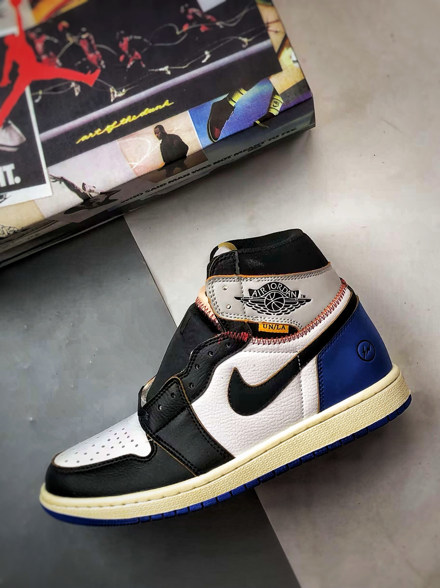 Triple collaboration lightning white, black, and blue AJ1 high-top trendy retro basketball shoes