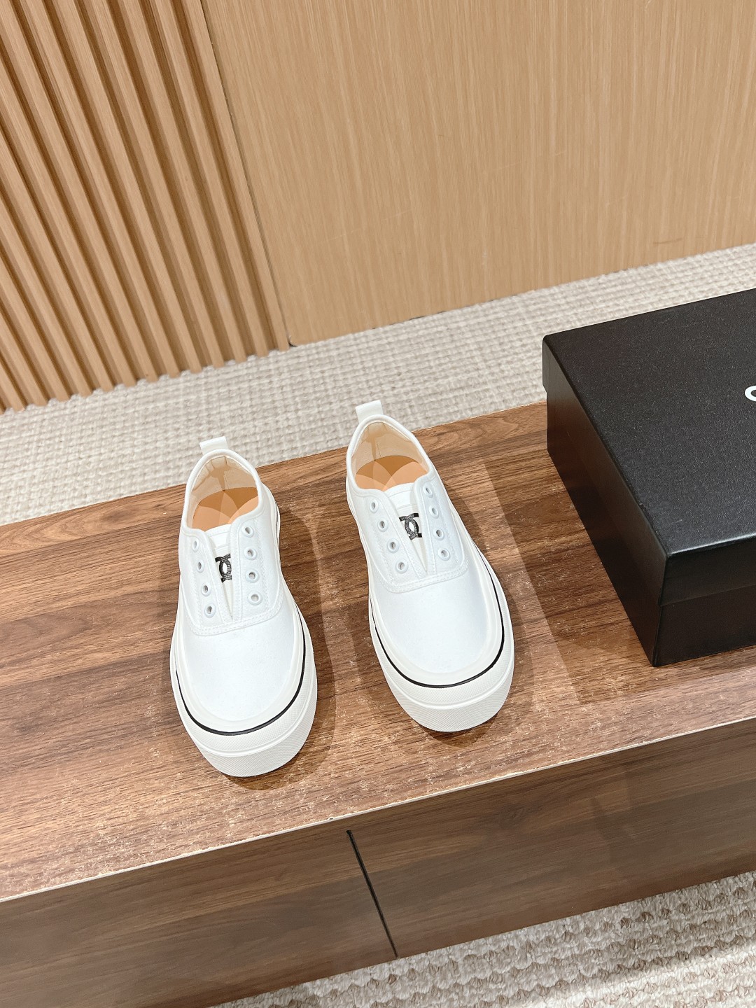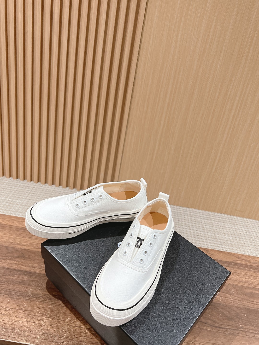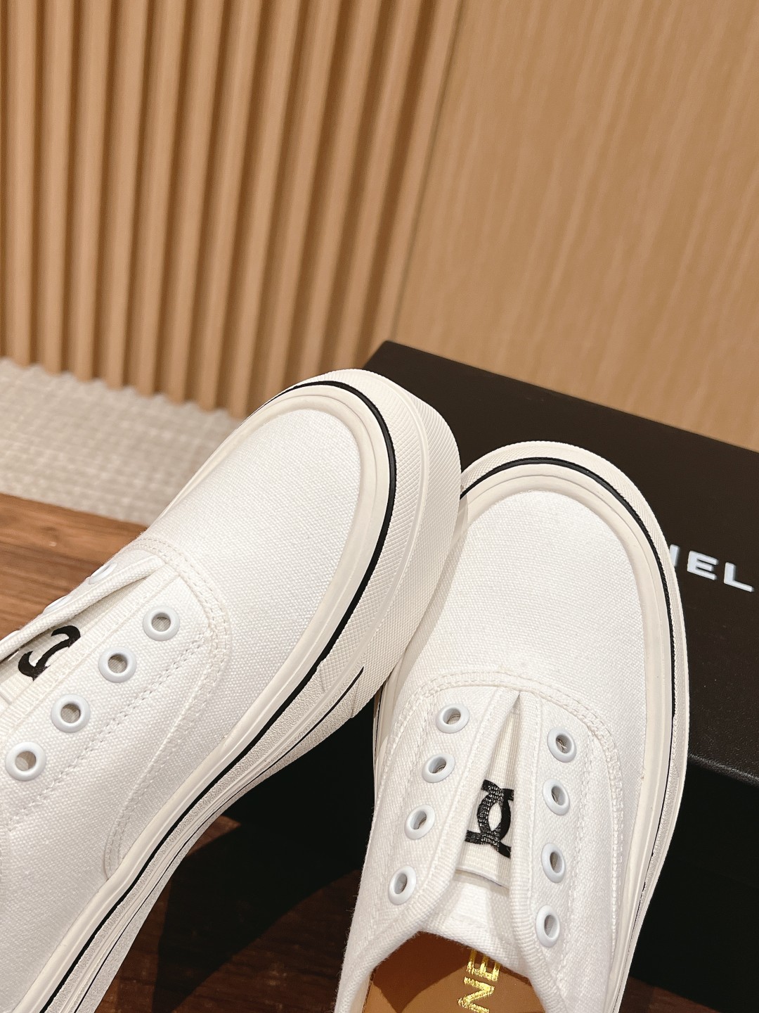 [Top Version] #Leather Surface Chanel# New Canvas Laceless White Sneakers from Chanel