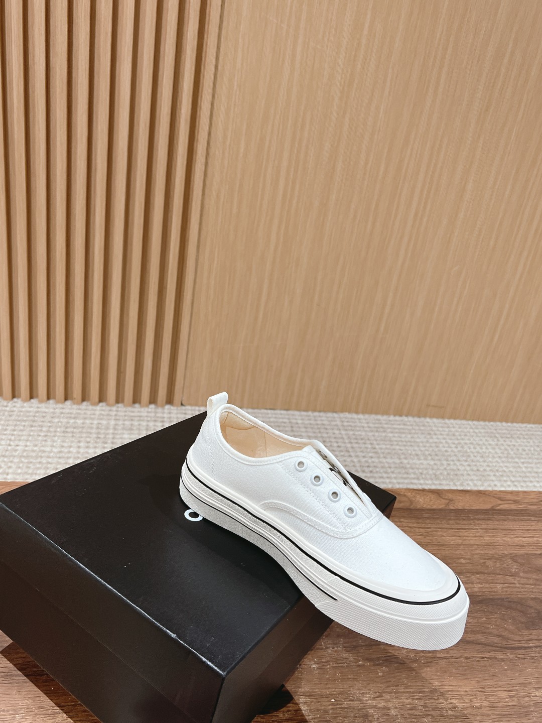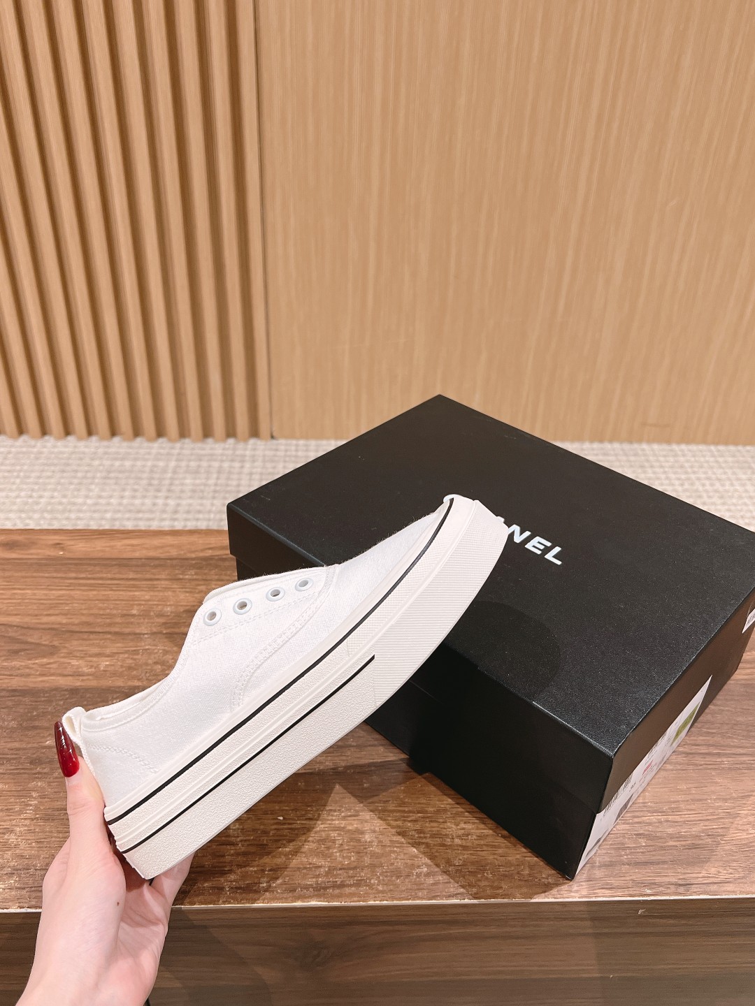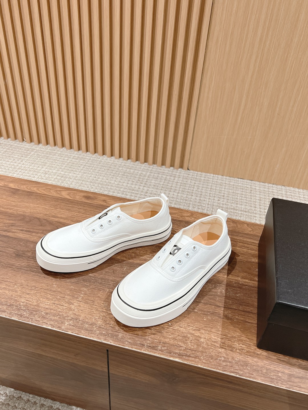 [Top Version] #Leather Surface Chanel# New Canvas Laceless White Sneakers from Chanel