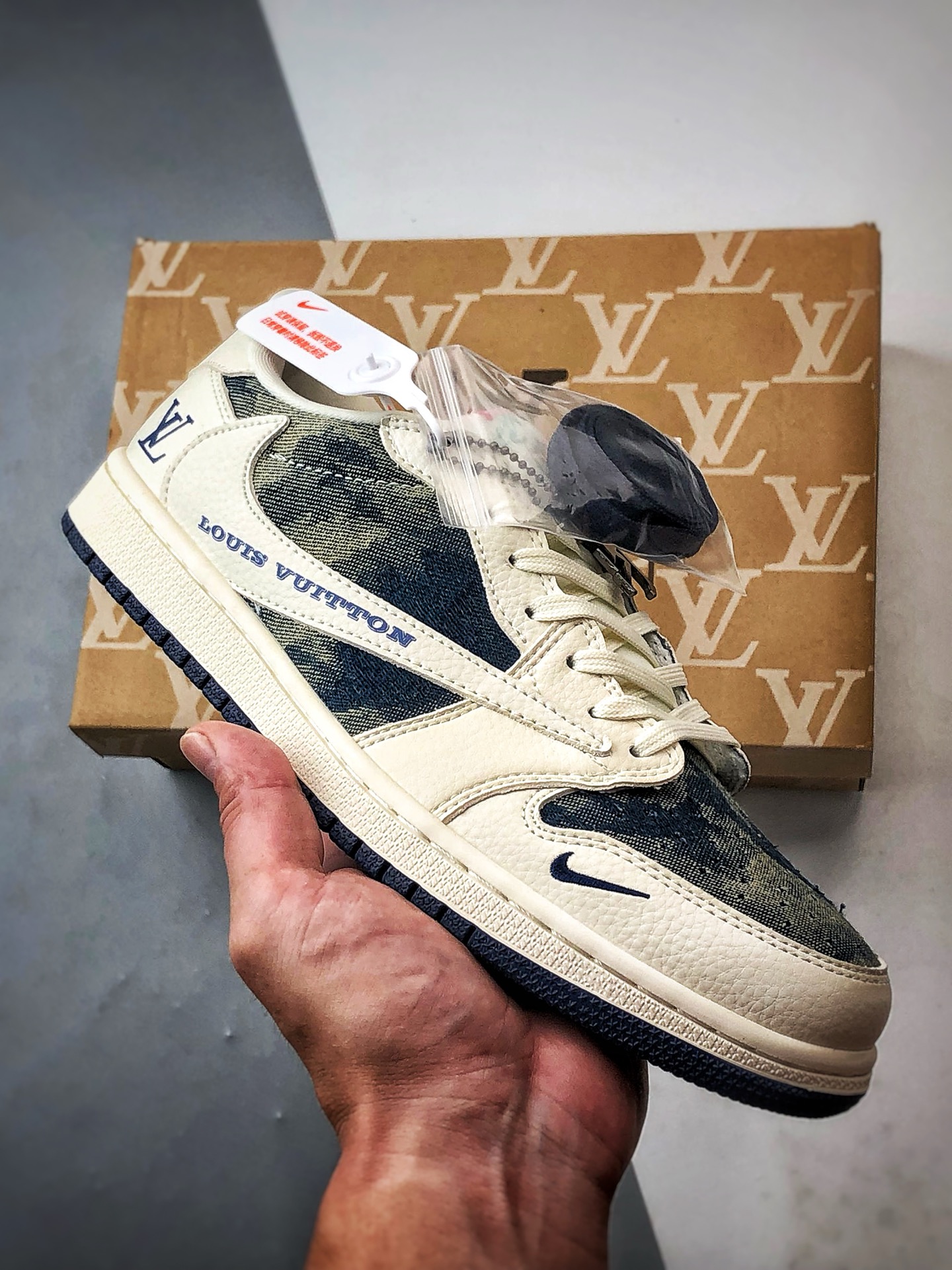 LV Off-White Washed Blue Denim Reverse Swoosh, Major Factory Pure Original Craftsmanship