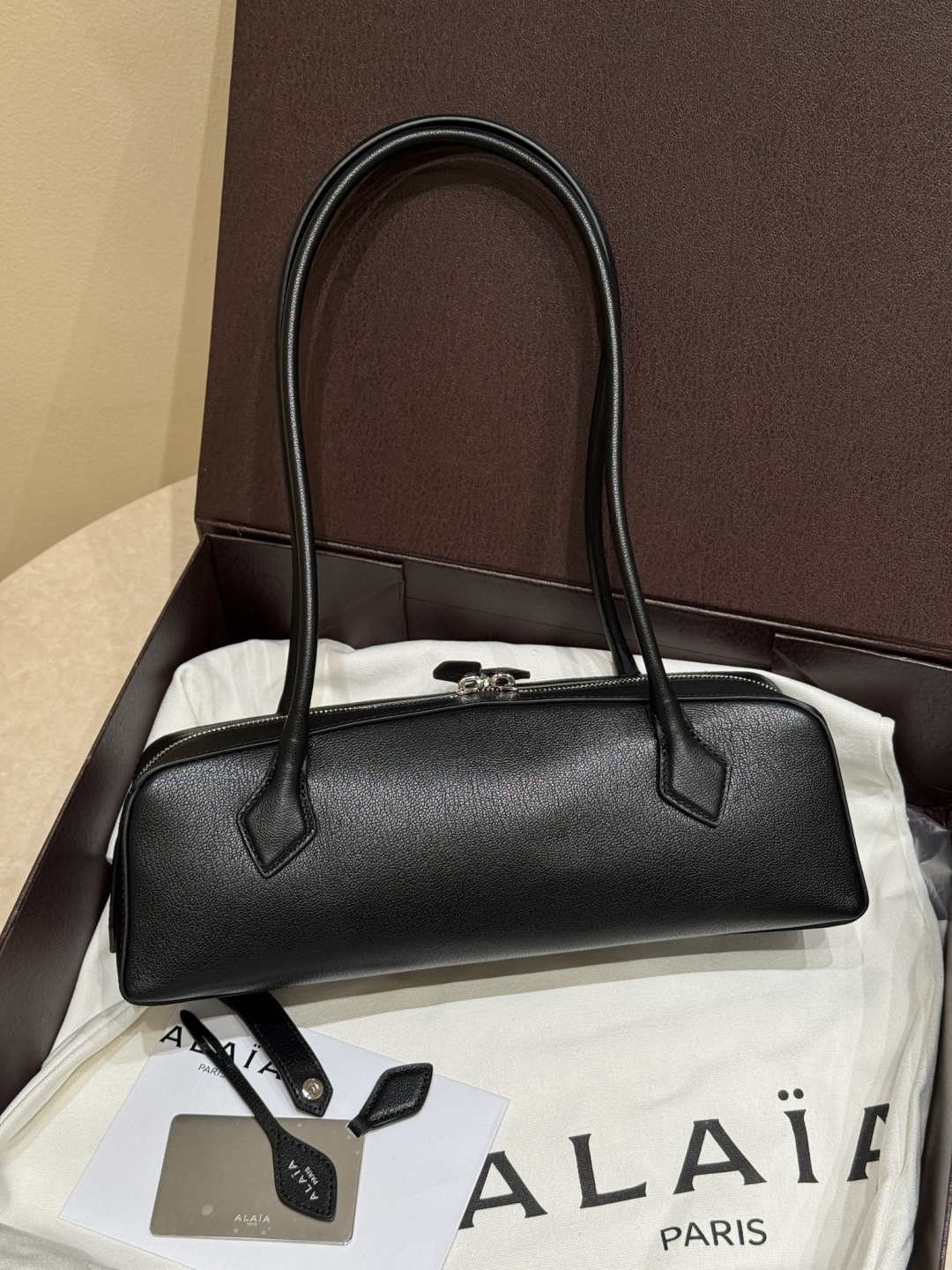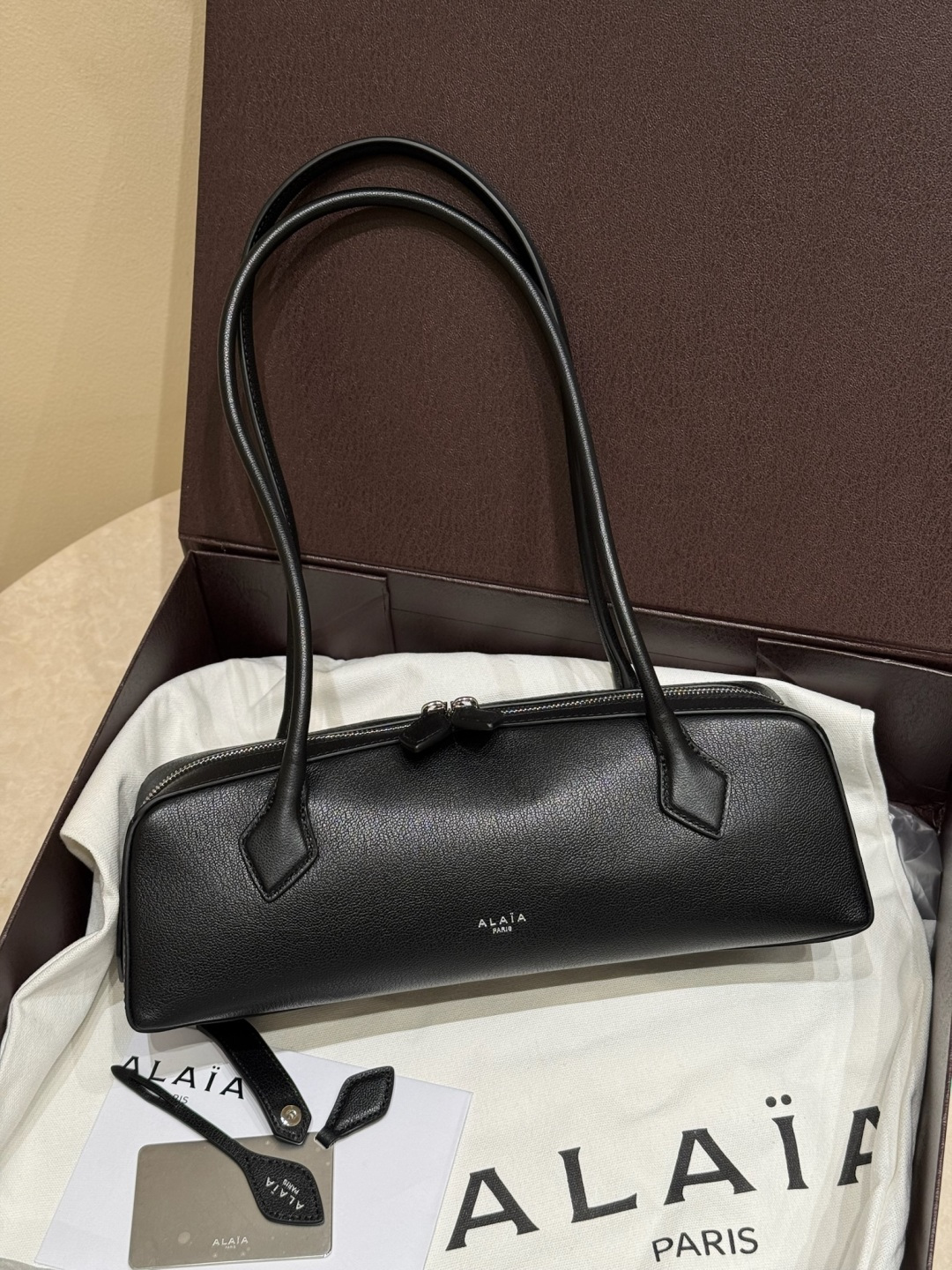 Alai@ Another masterpiece! The new Le Teckel Dachshund bag is here! The long-handle baguette bag design is full of retro and stylish feel. The bag adopts a slender silhouette, inspired by the designer's beloved dachshund, with high fashion recognition. The long handle enables the bag's versatility, it can be carried on the shoulder or held in the hand. Double zipper closure design. Looks incredibly beautiful when worn, a fashionable item that is both cool and chic 〰️