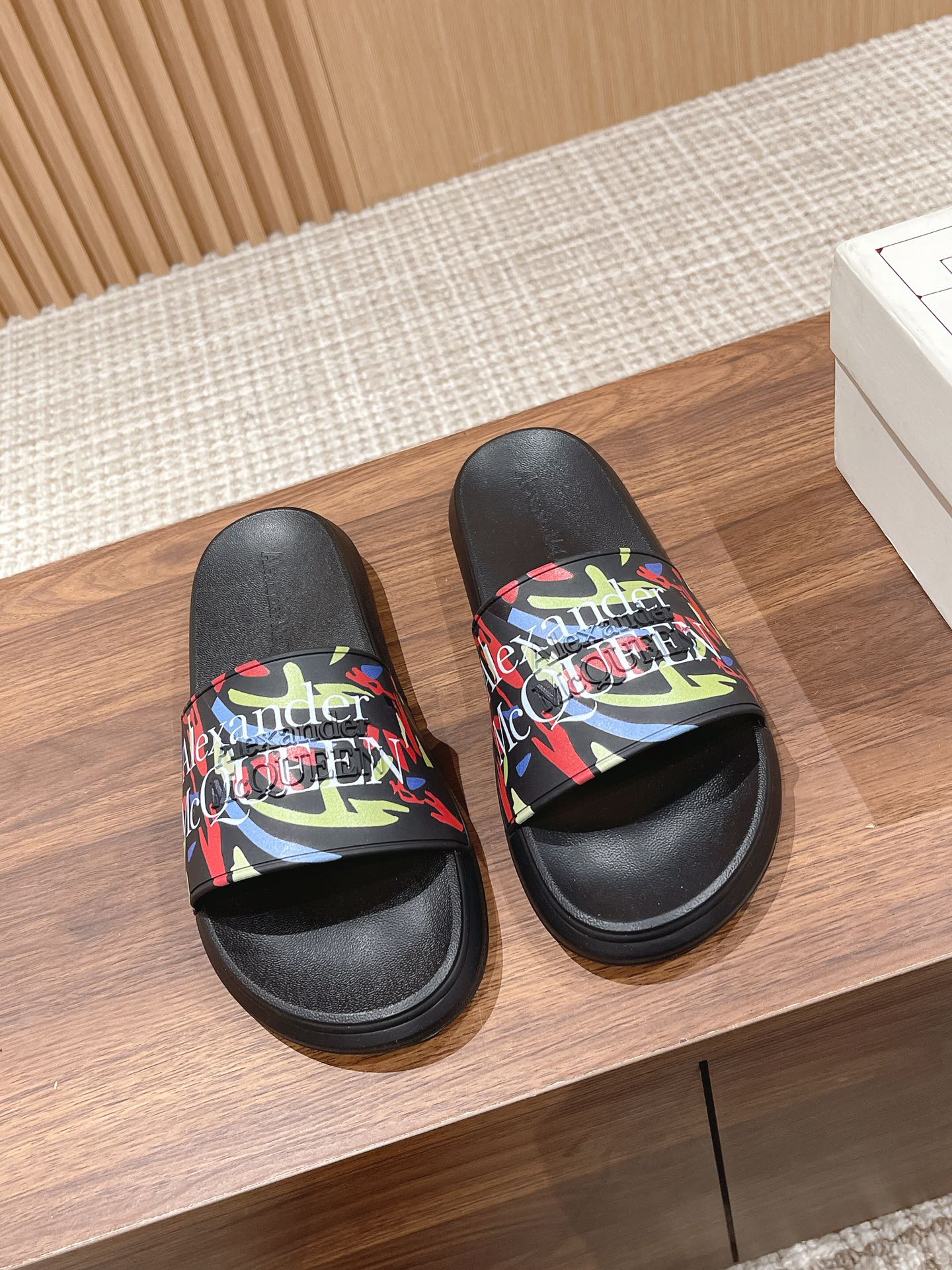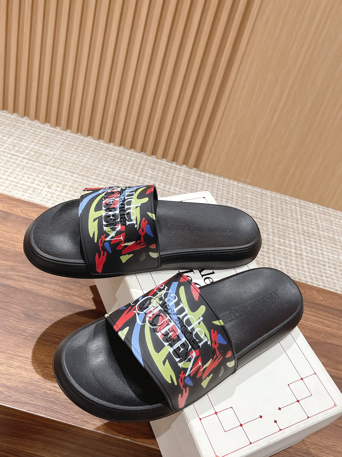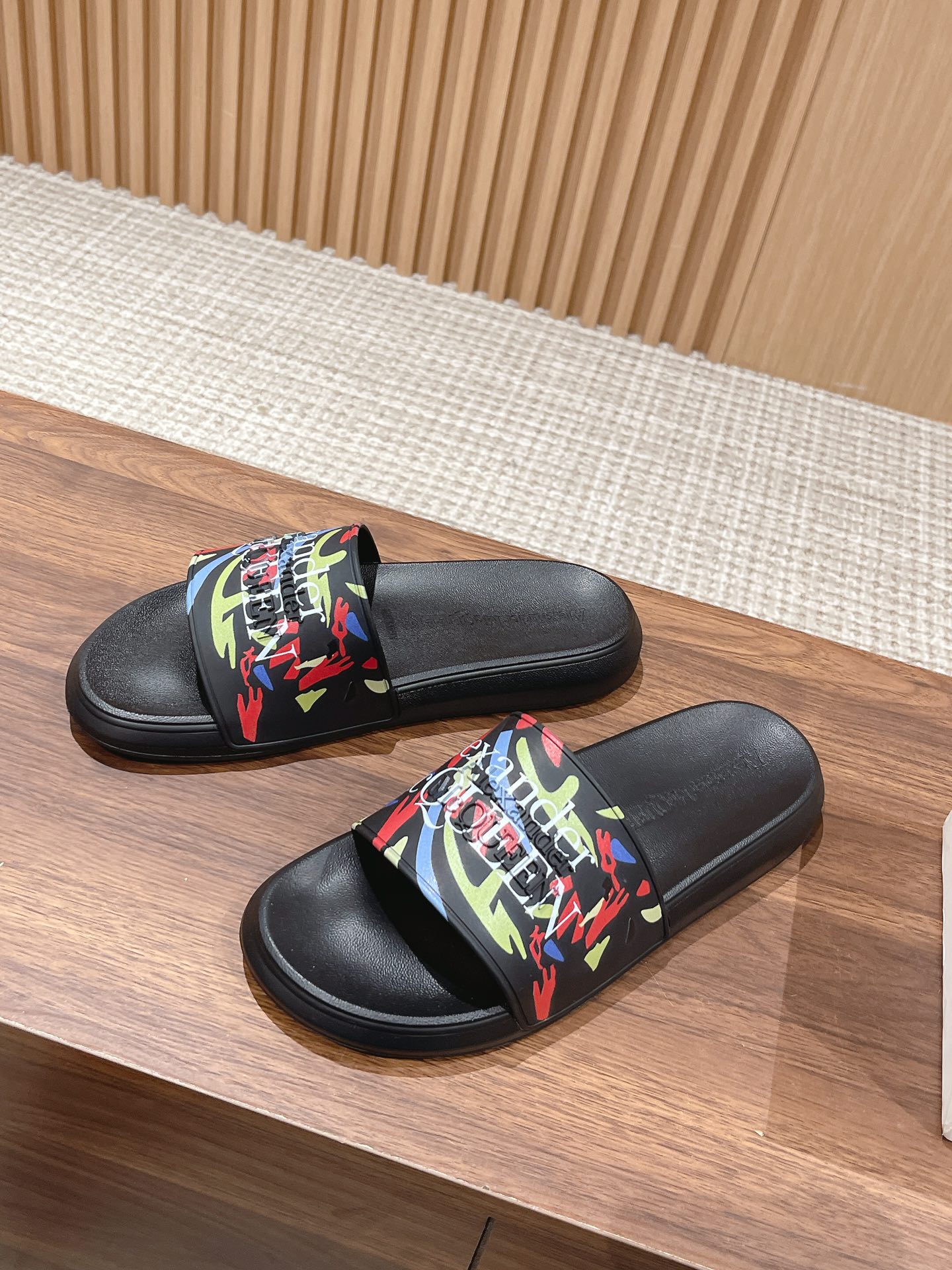 Alexander McQueen graffiti beach sandals, unisex sizes 35-46.