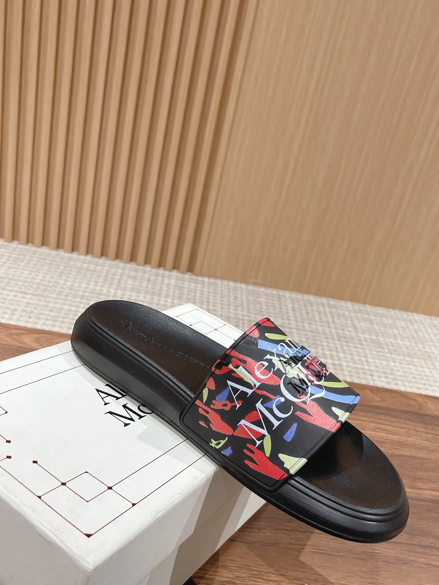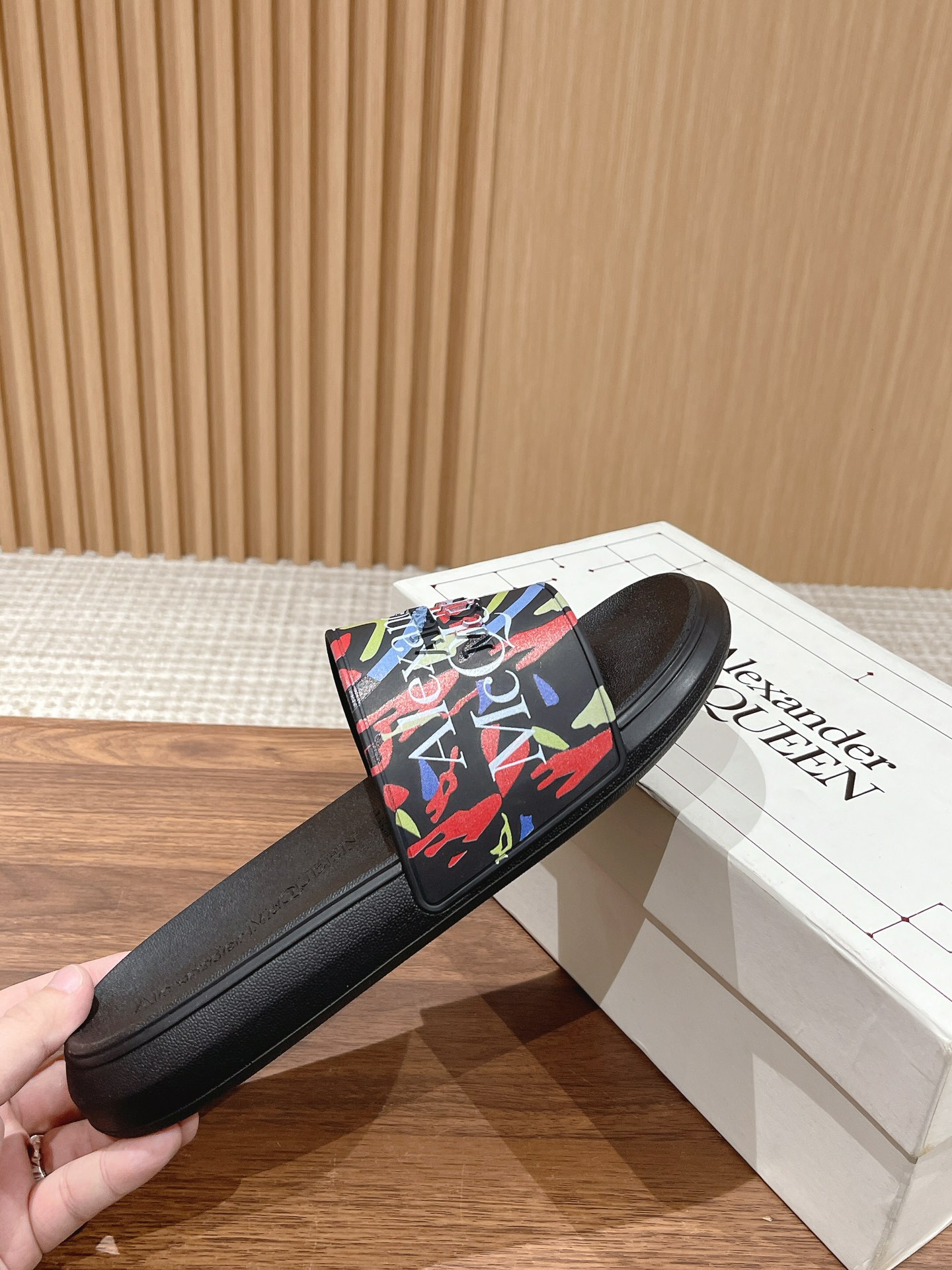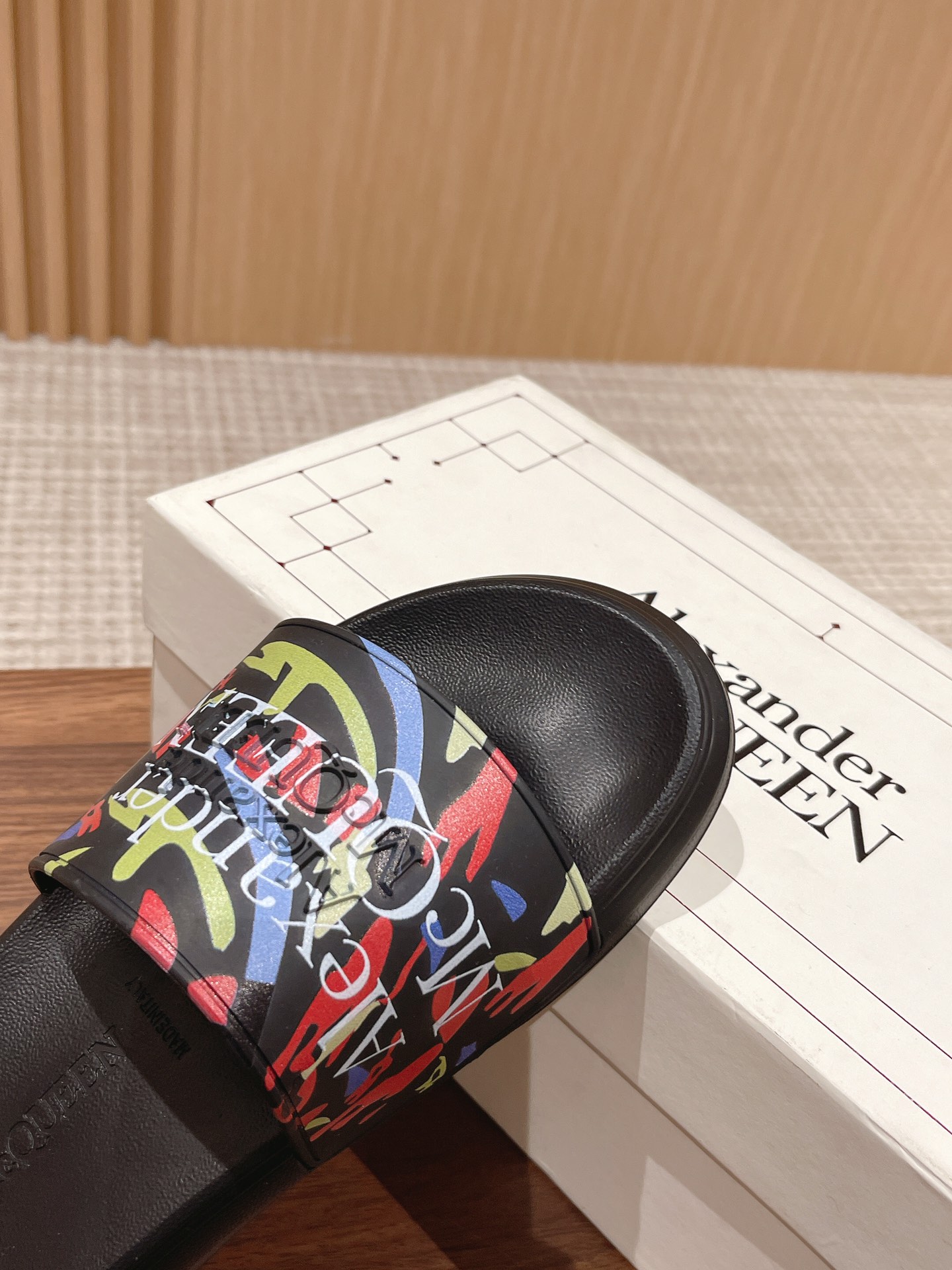 Alexander McQueen graffiti beach sandals, unisex sizes 35-46.