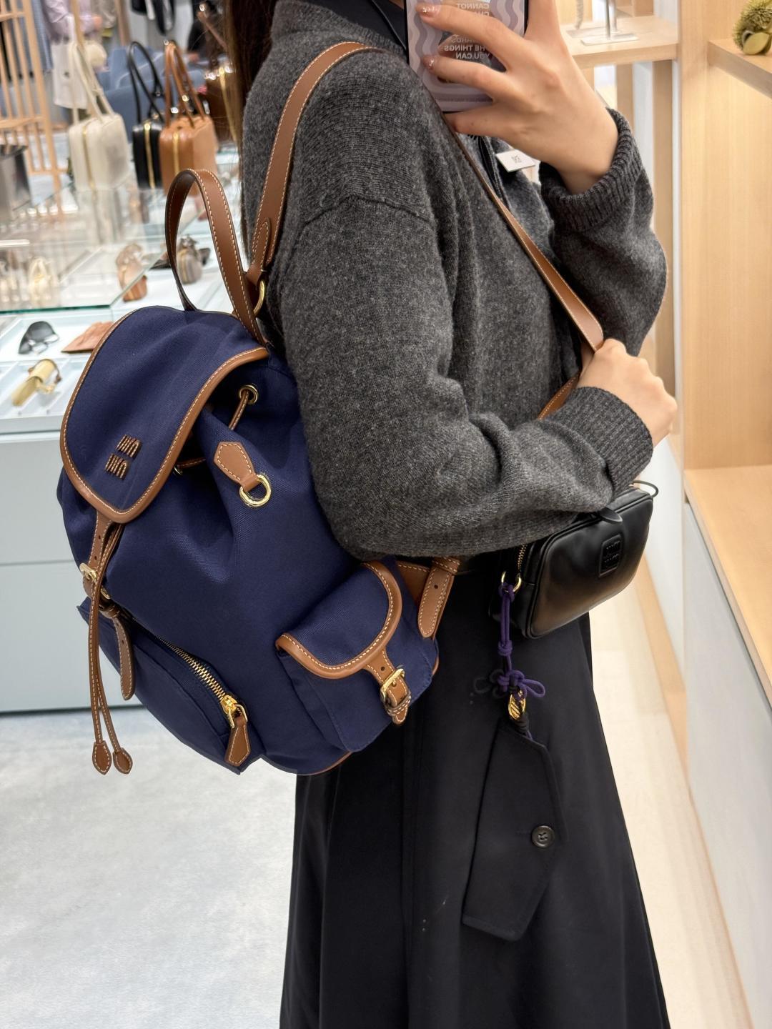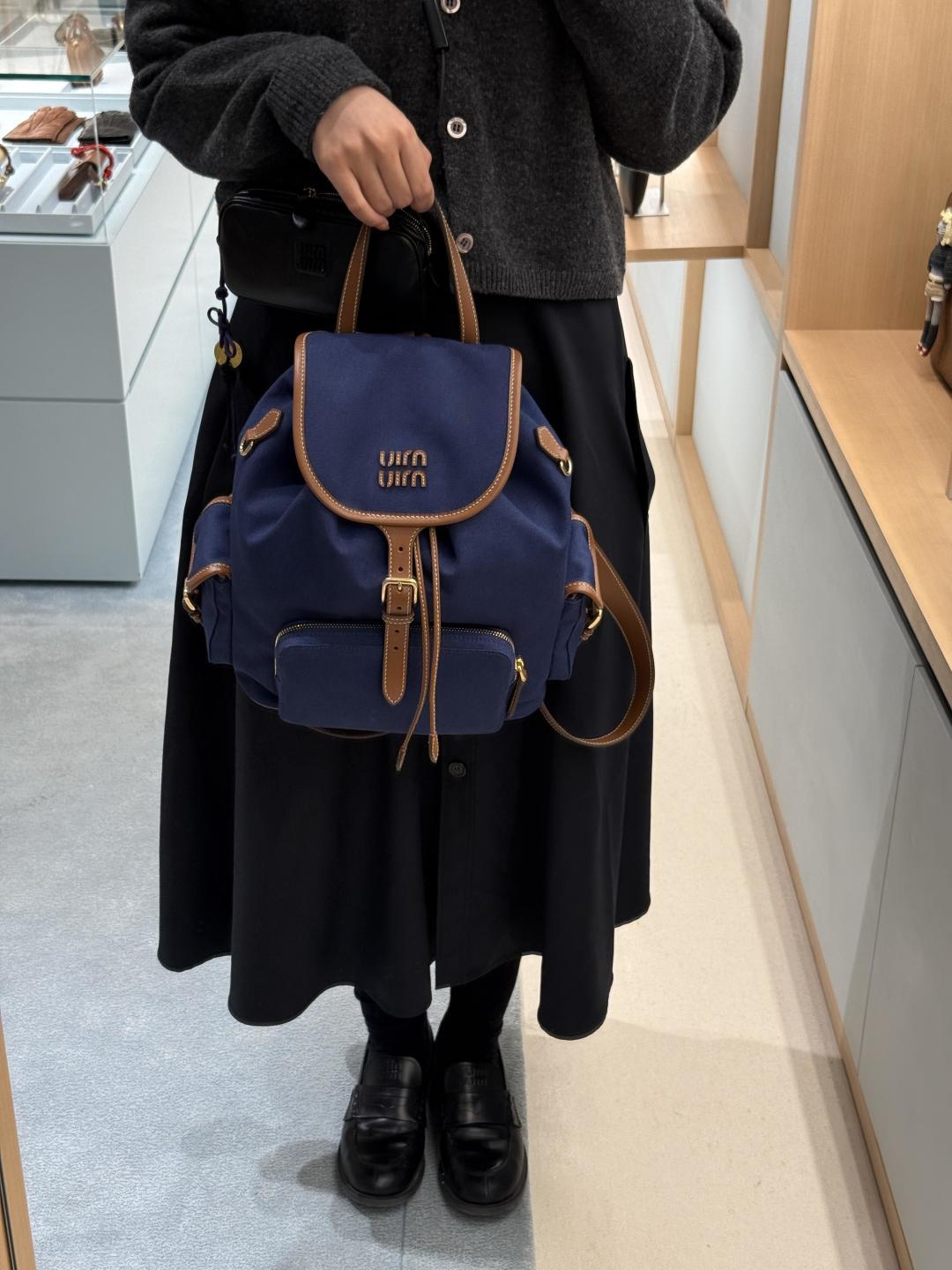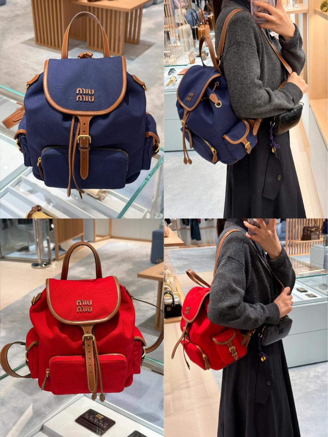The miumiu pop-up limited edition backpack ||| Love at first sight series, it completely matches my aesthetic taste. Just happened that my sister went to Japan and caught the last day of the pop-up store. Actually, the red canvas one is also very nice, and since it's my zodiac year, I wanted to get something red. But this brown leather one is really especially vintage. In the end, after a tough choice between two options, I went with this small brown one. The only downside is that the front flap is a bit inconvenient, but if you tighten the drawstring, you can completely leave the flap unbuttoned. Love it love it.