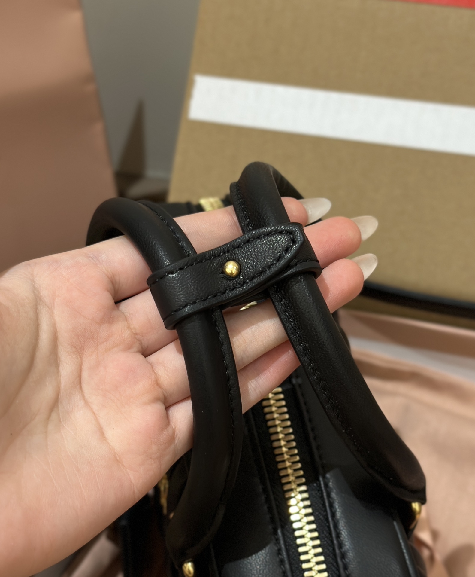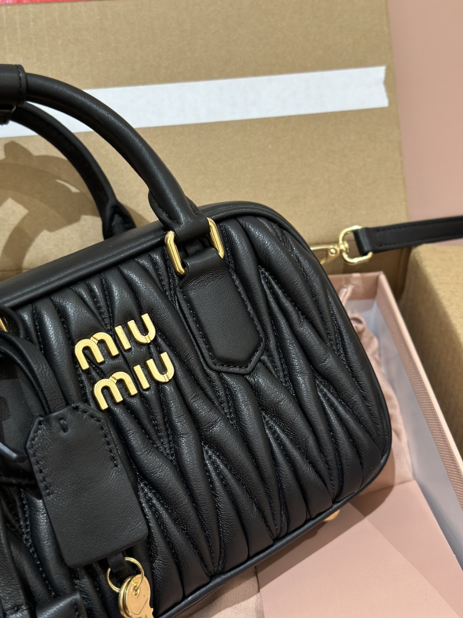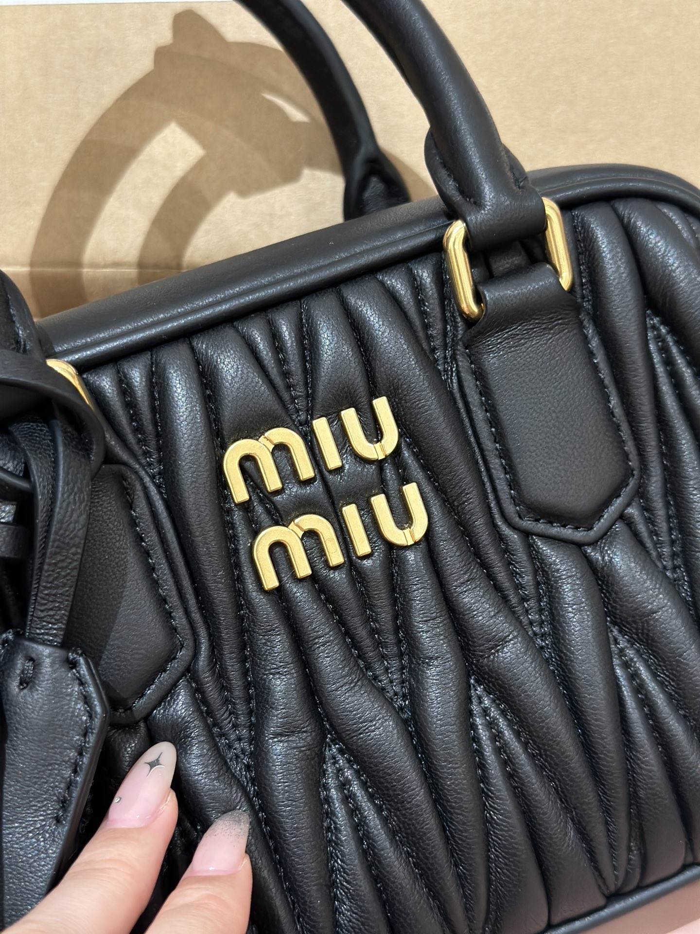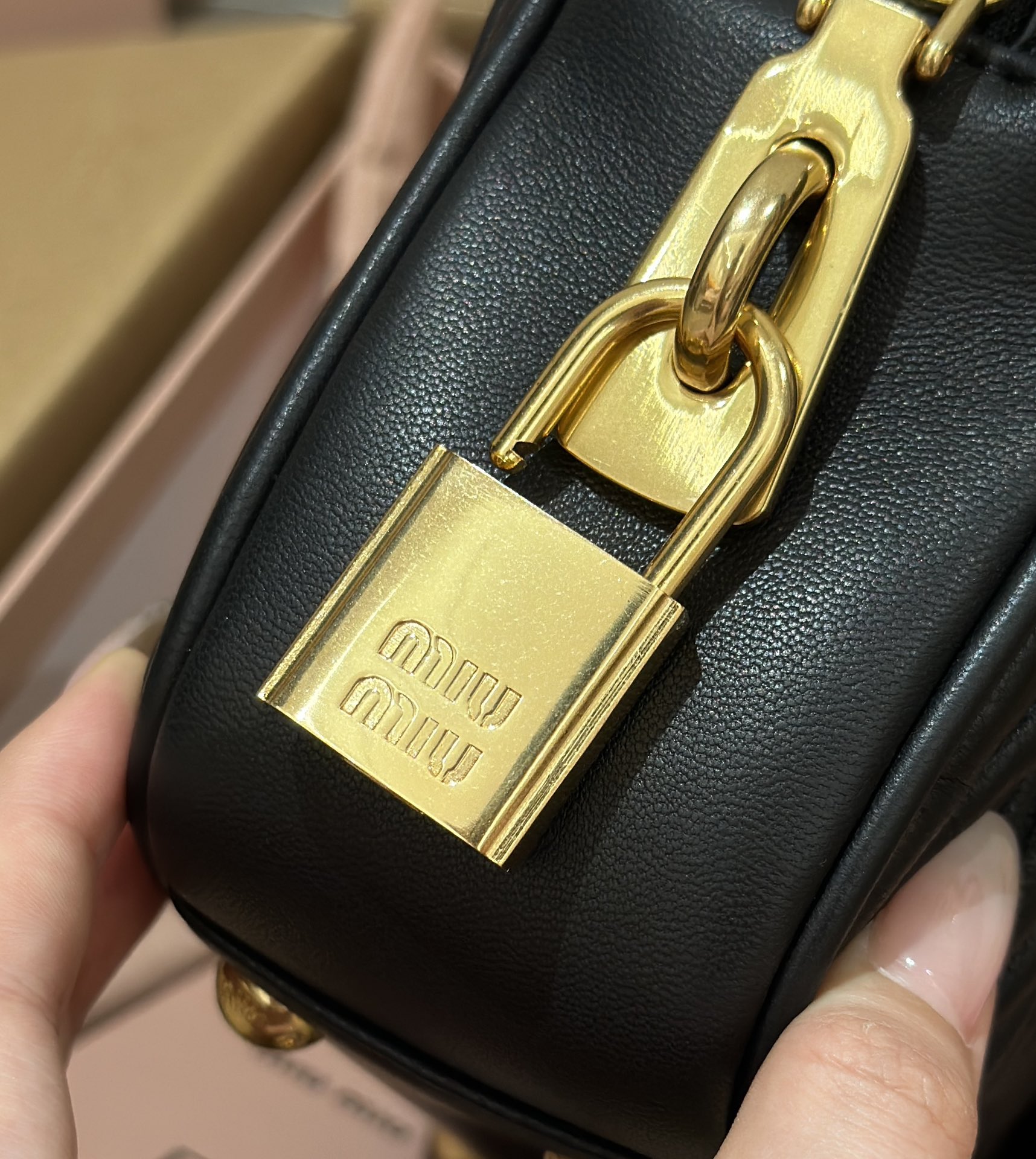 This elegant bowling bag. It's been so popular this year, taking over the entire fashion scene. Made from imported Spanish lambskin with a wrinkled, retro texture, the small square shape features a clean and neat overall design. The iconic embossed logo and interior design meet daily commuting needs, suitable for both hand-carry and cross-body wear. It's really captivating.