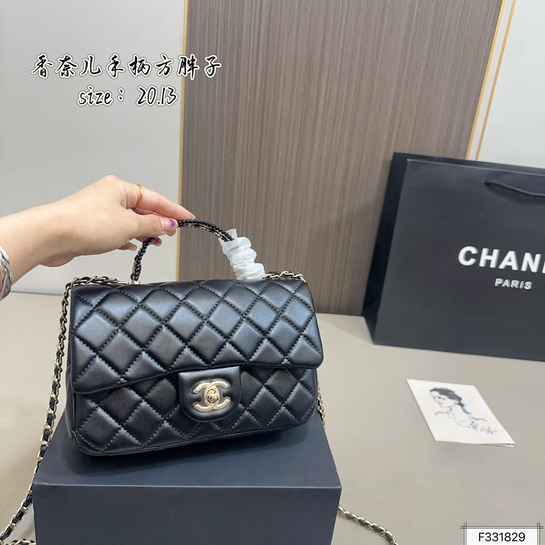 Chanel handle square mini bag, high quality, super good feel, original hardware, super luxury brand. With its gorgeous and elegant appearance, it has become the most sought-after piece of the moment. A must-have for everyone, highly praised by celebrities, a work of fine craftsmanship. Dimensions: 20.13