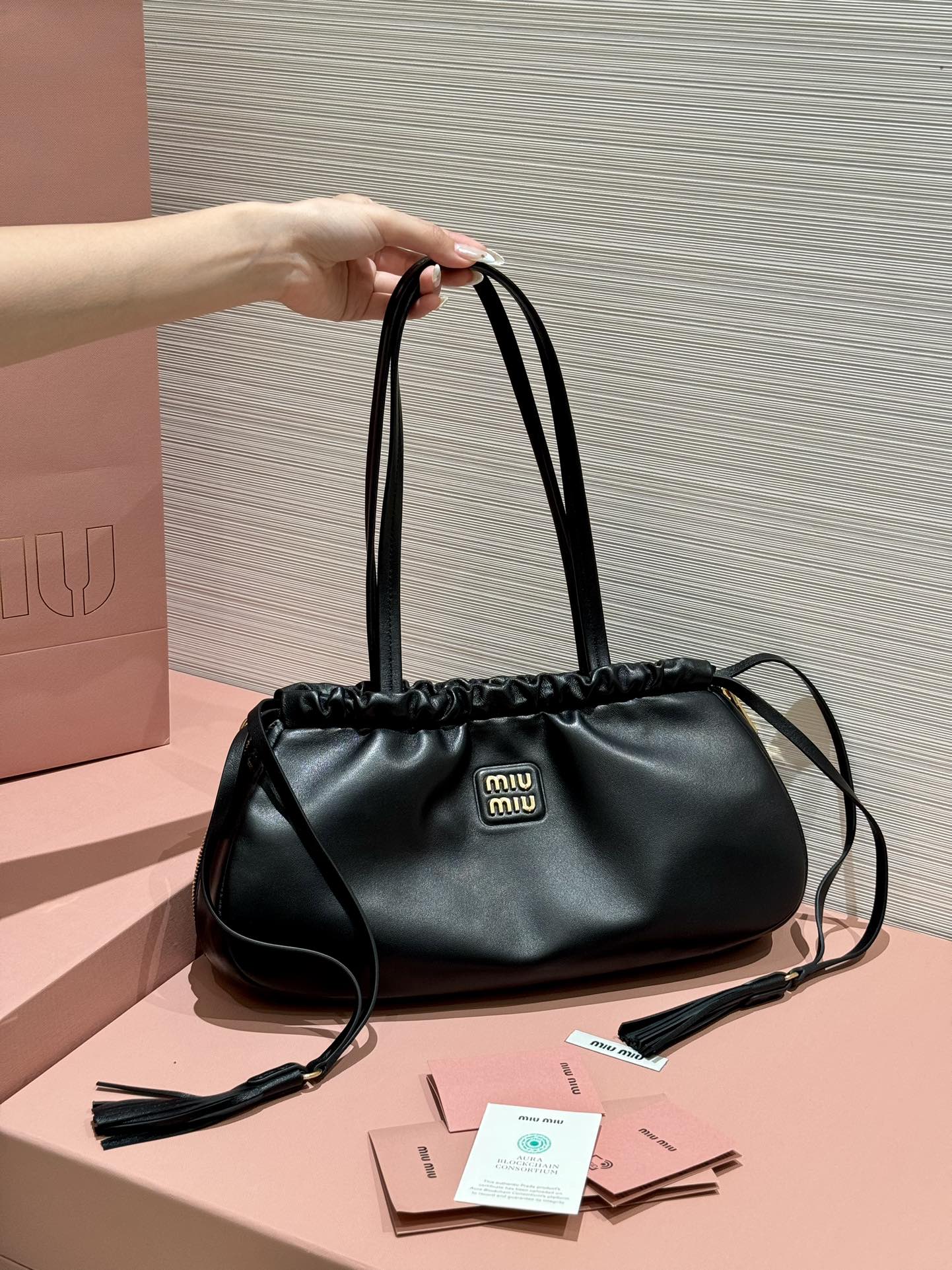 JD-1280 MiuMi new French loaf underarm bag. Size: 35x18x9cm.
