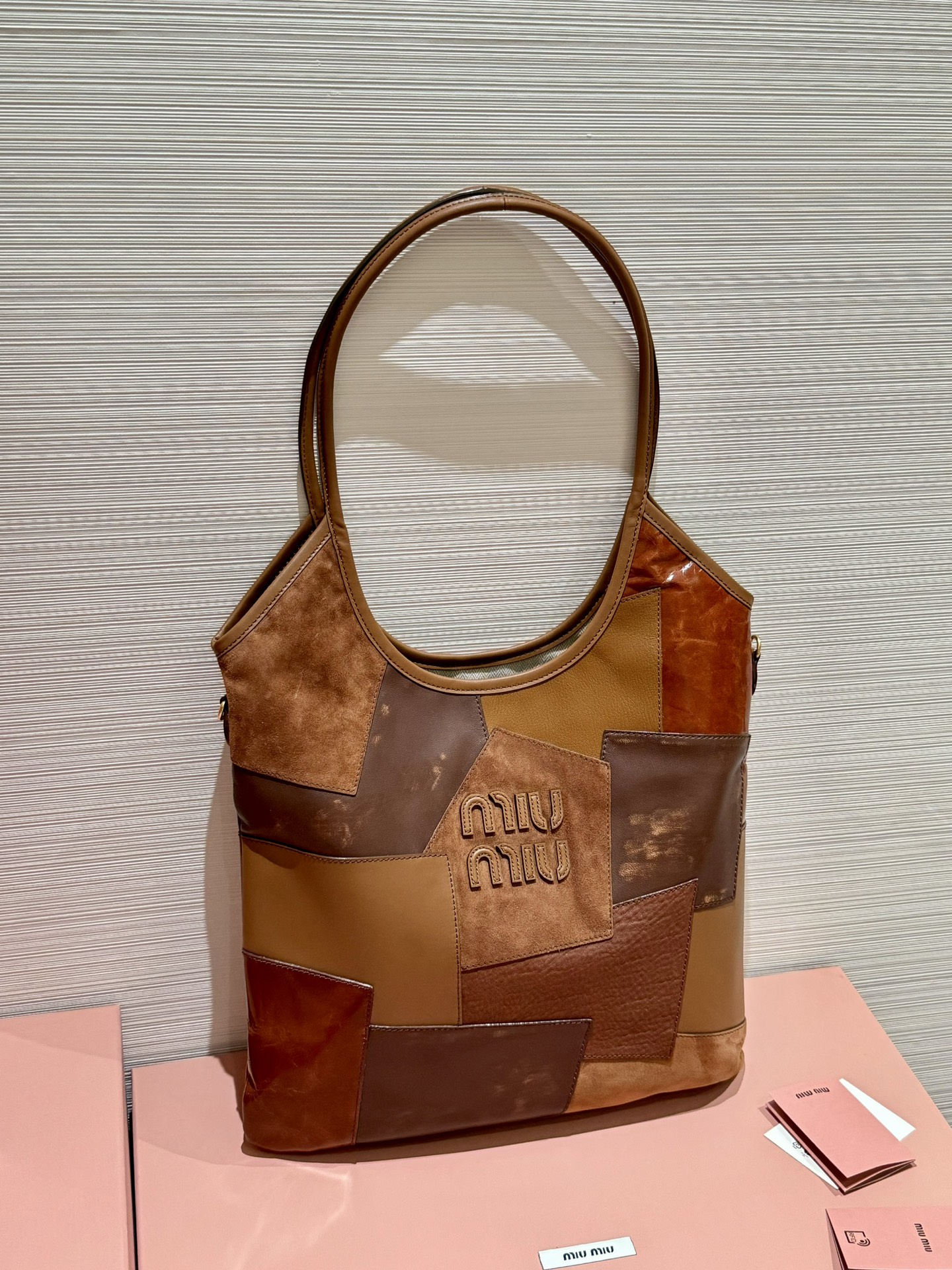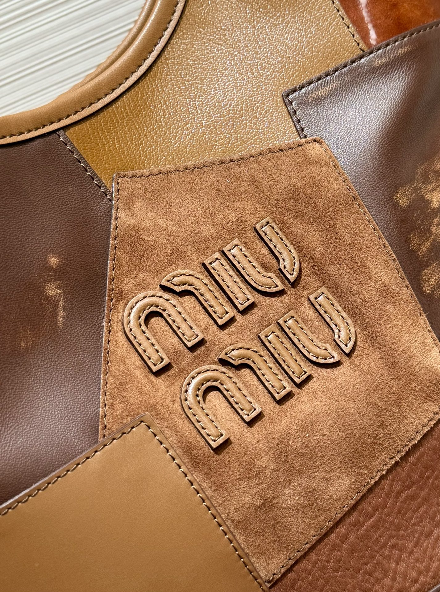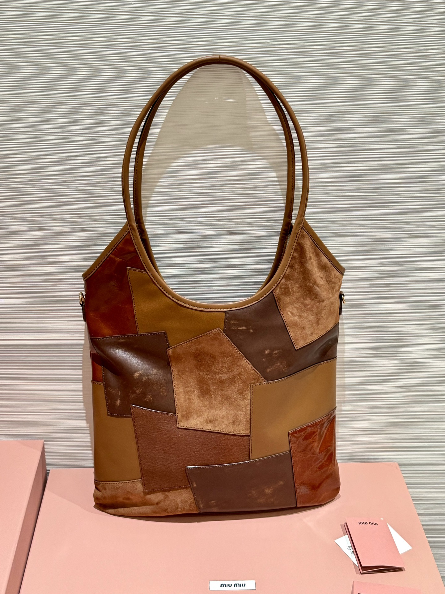 [Patchwork Brown] MiuMi* 24ss Runway Hobo Tote Underarm Bag