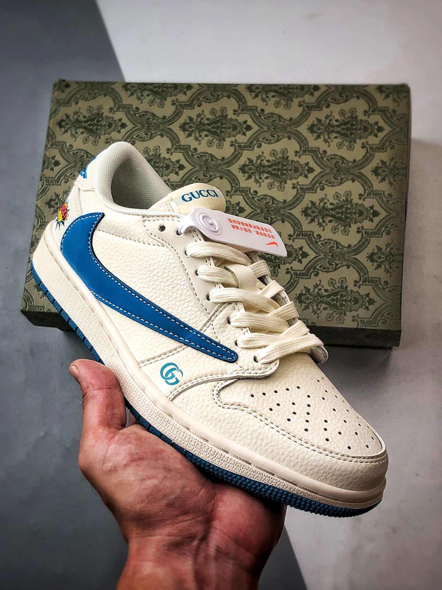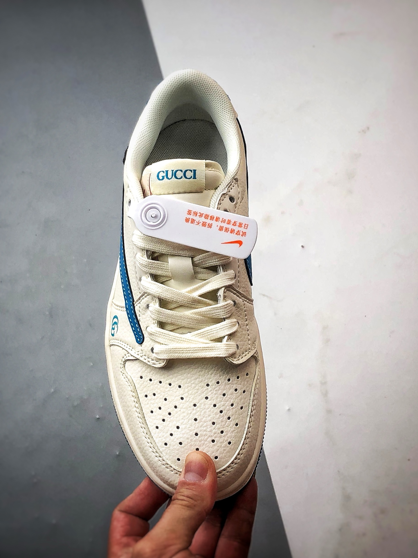Gucci Off-White Blue Reverse Swoosh, Major Factory Pure Original Craftsmanship