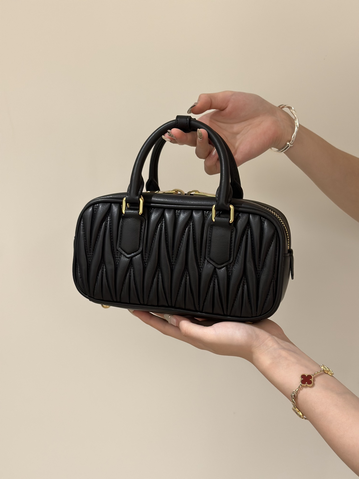 MiuMi textured lambskin retro square bag. Small size: 23x12x8cm.
