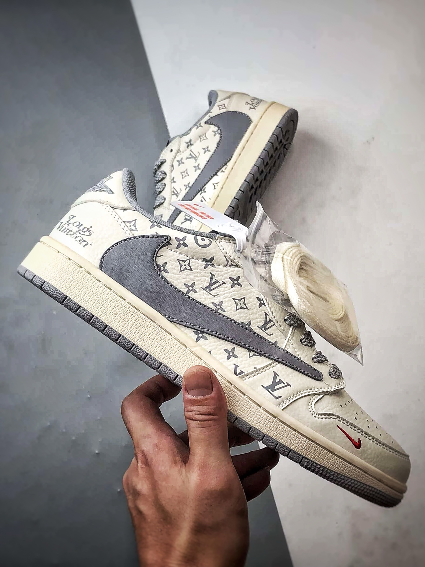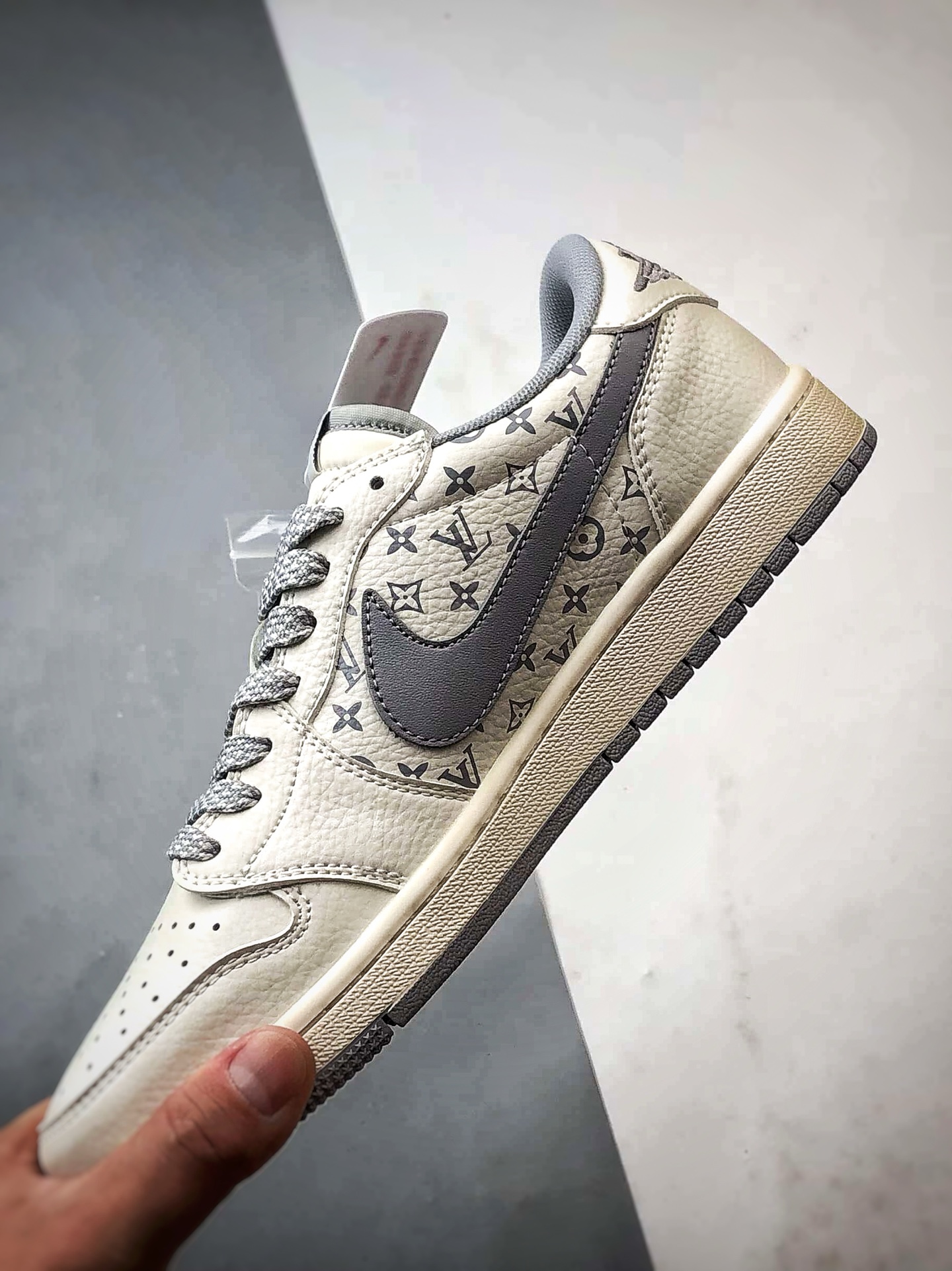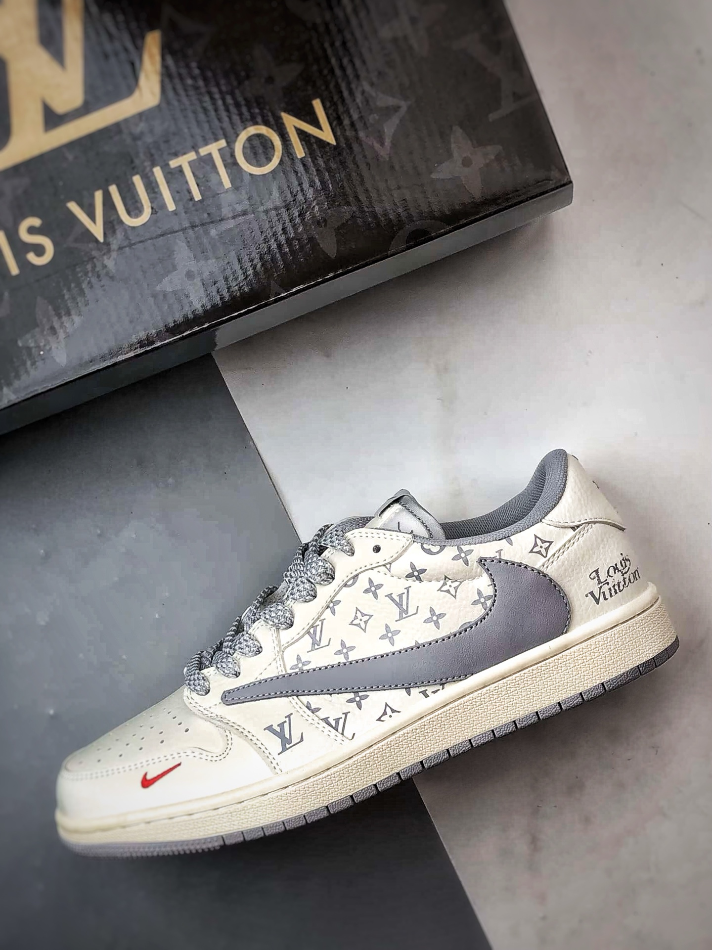 LV print beige gray reverse swoosh, major factory pure original craftsmanship