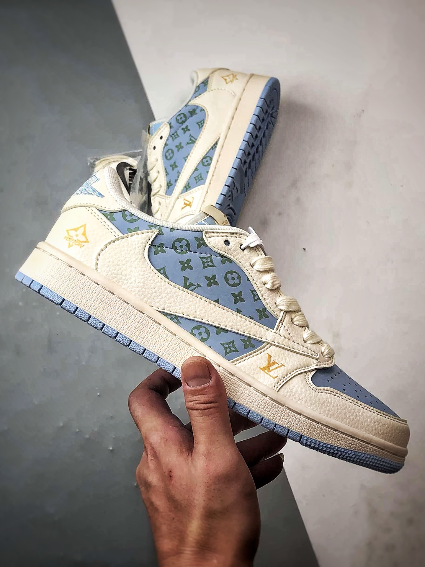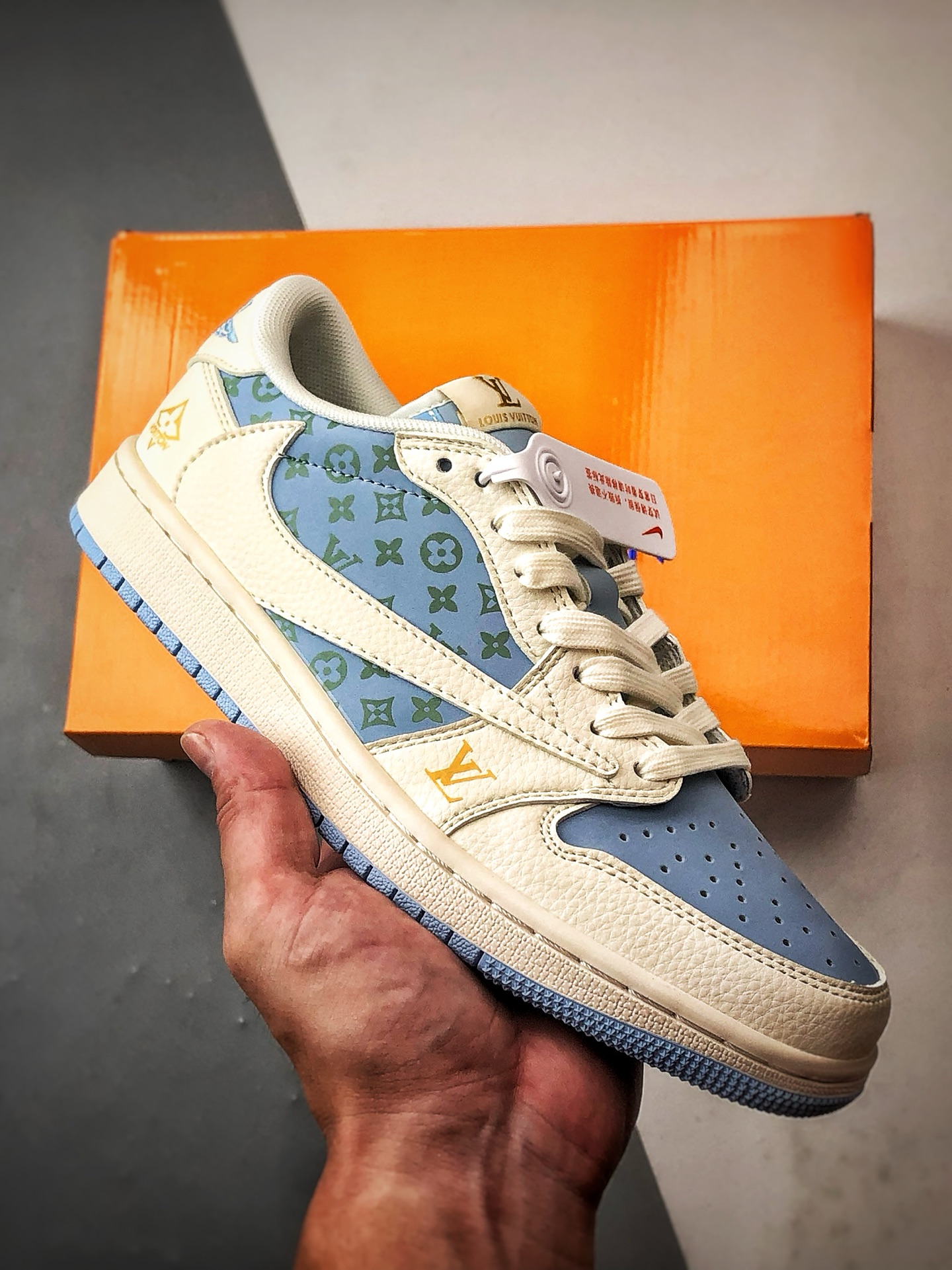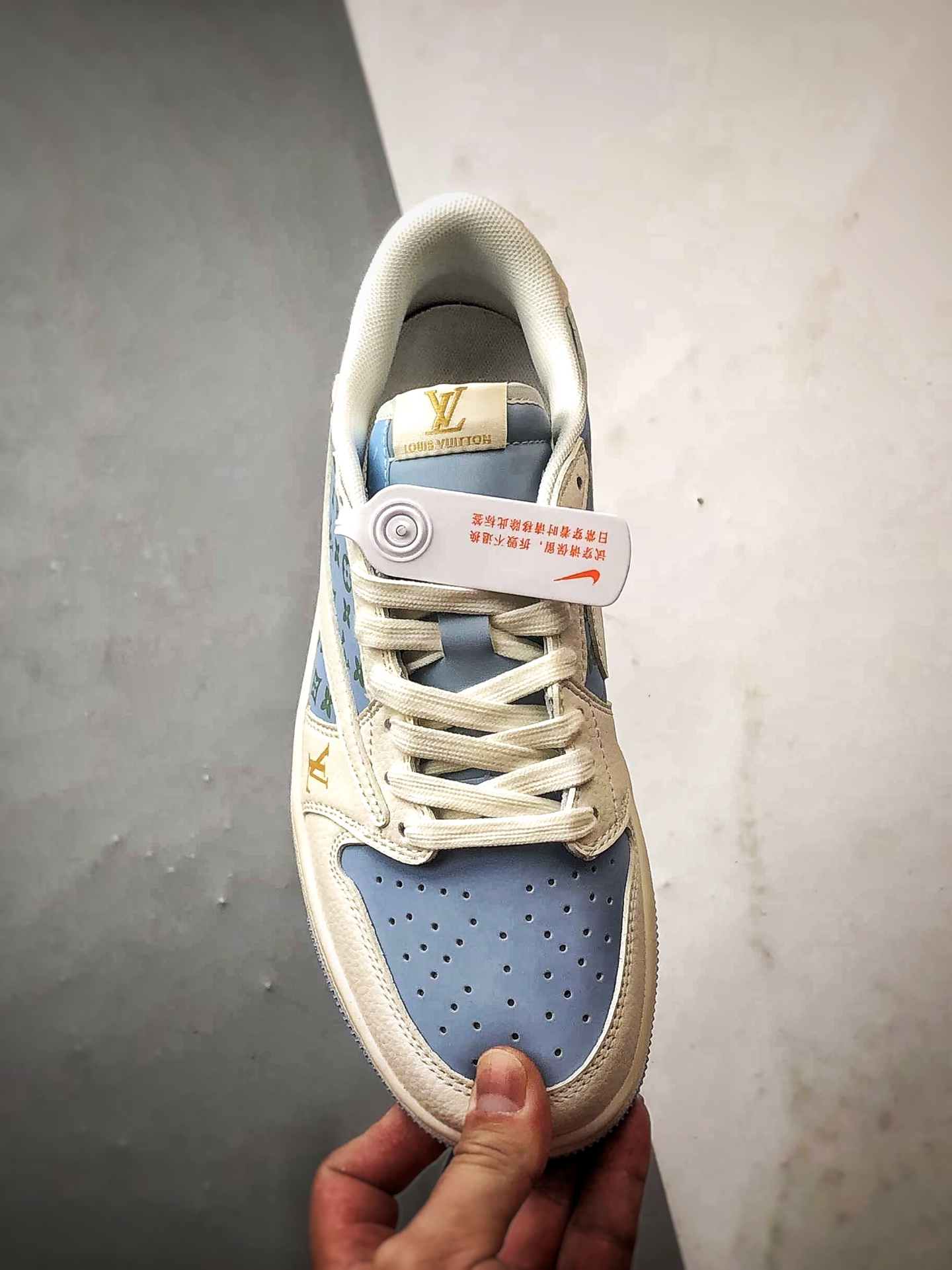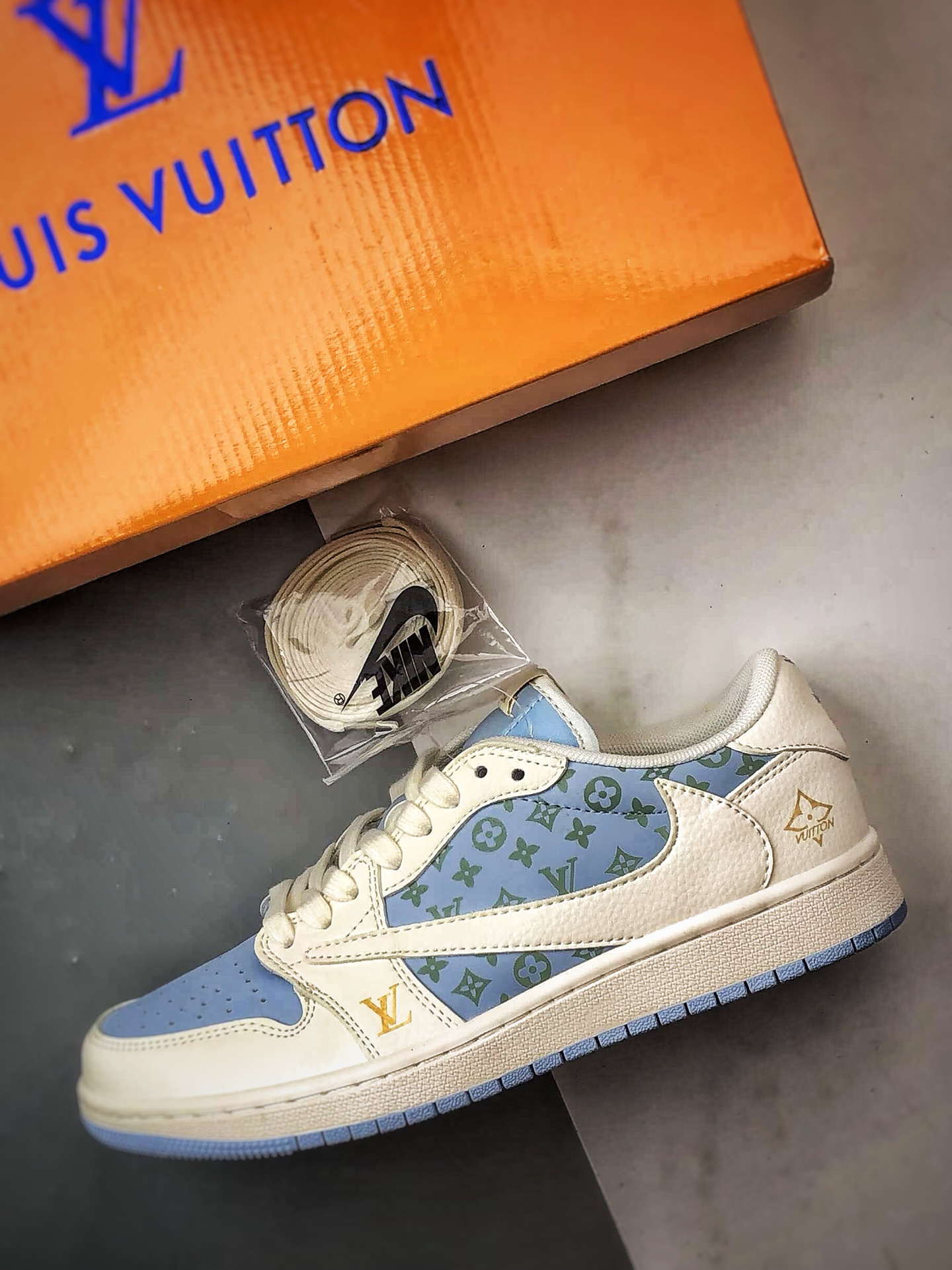LV Print Off-White Blue Reverse Swoosh