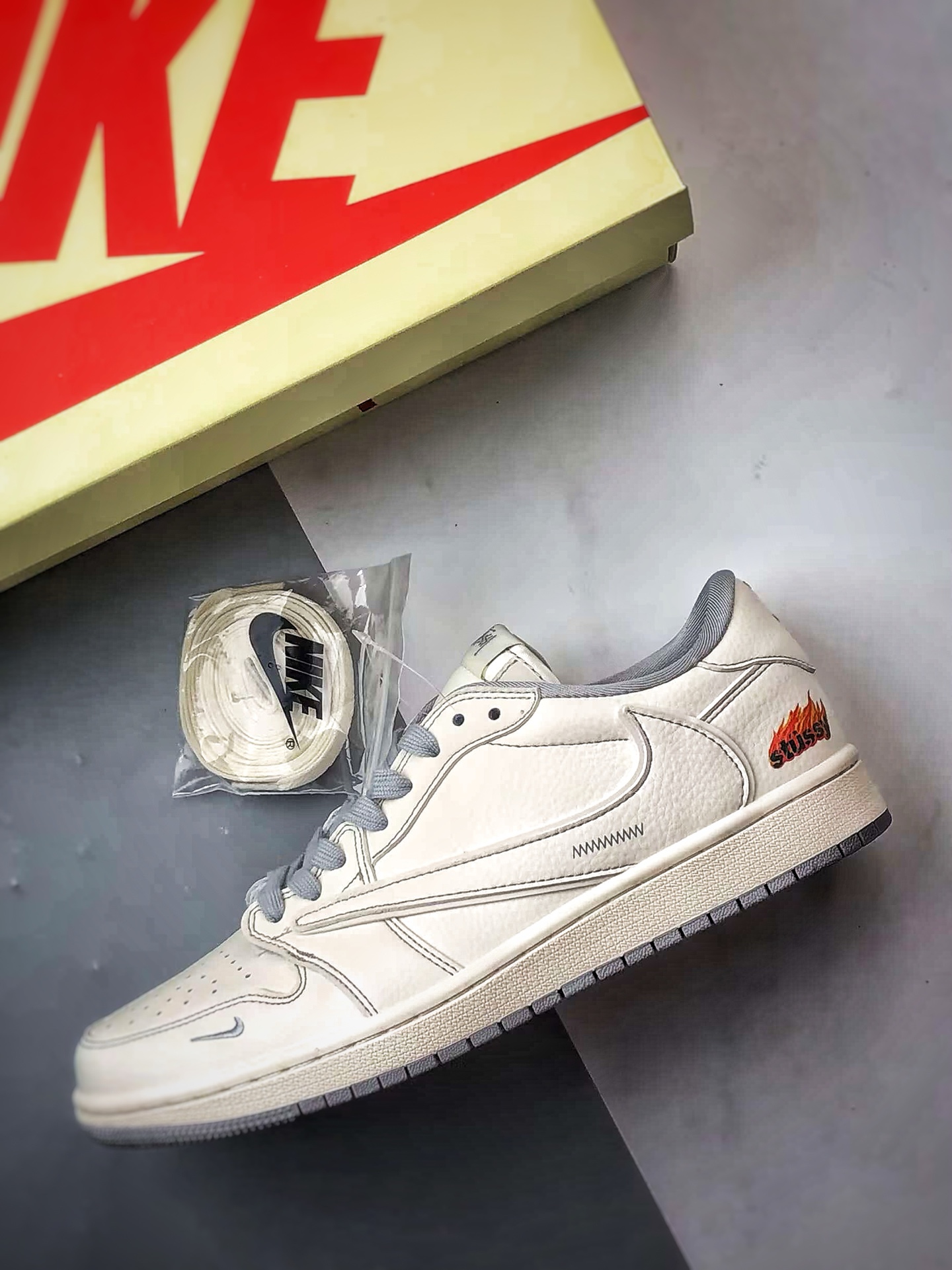 Stussy White Grey Reverse Swoosh, top factory original craftsmanship
