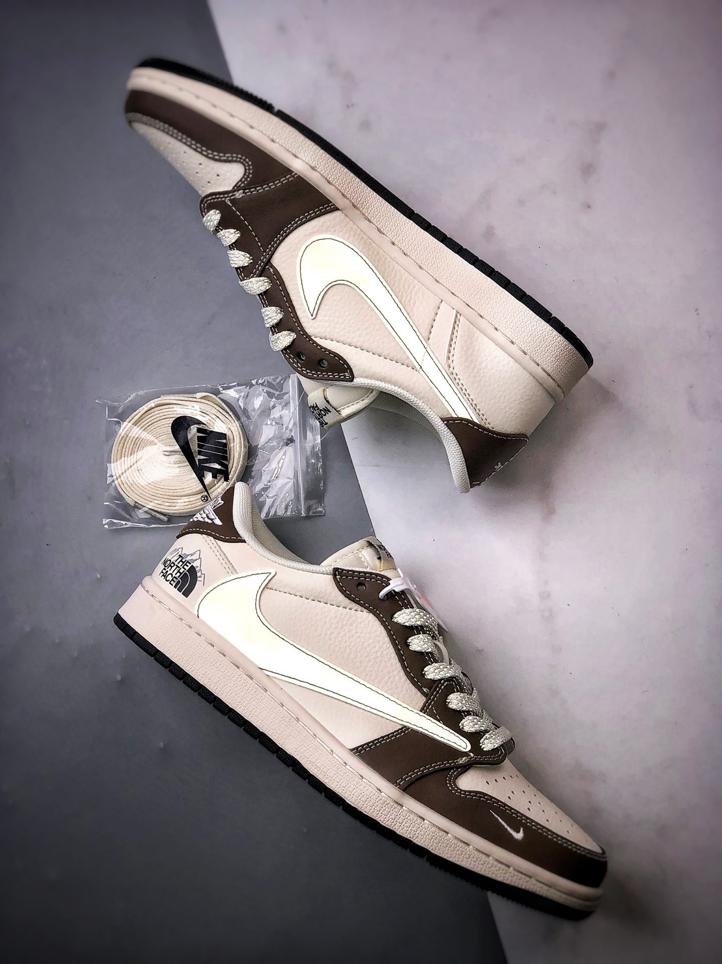 North Face Beige Brown Reflective Reverse Swoosh
