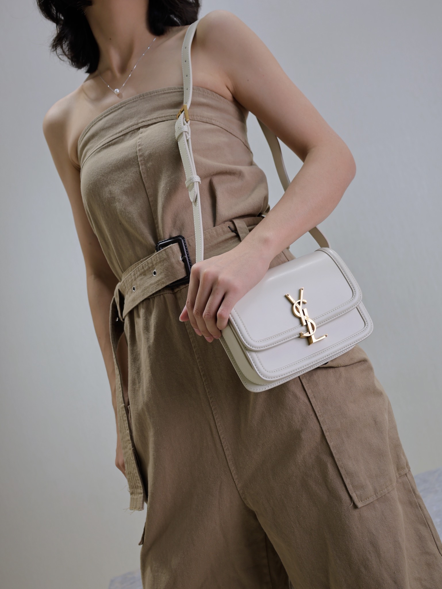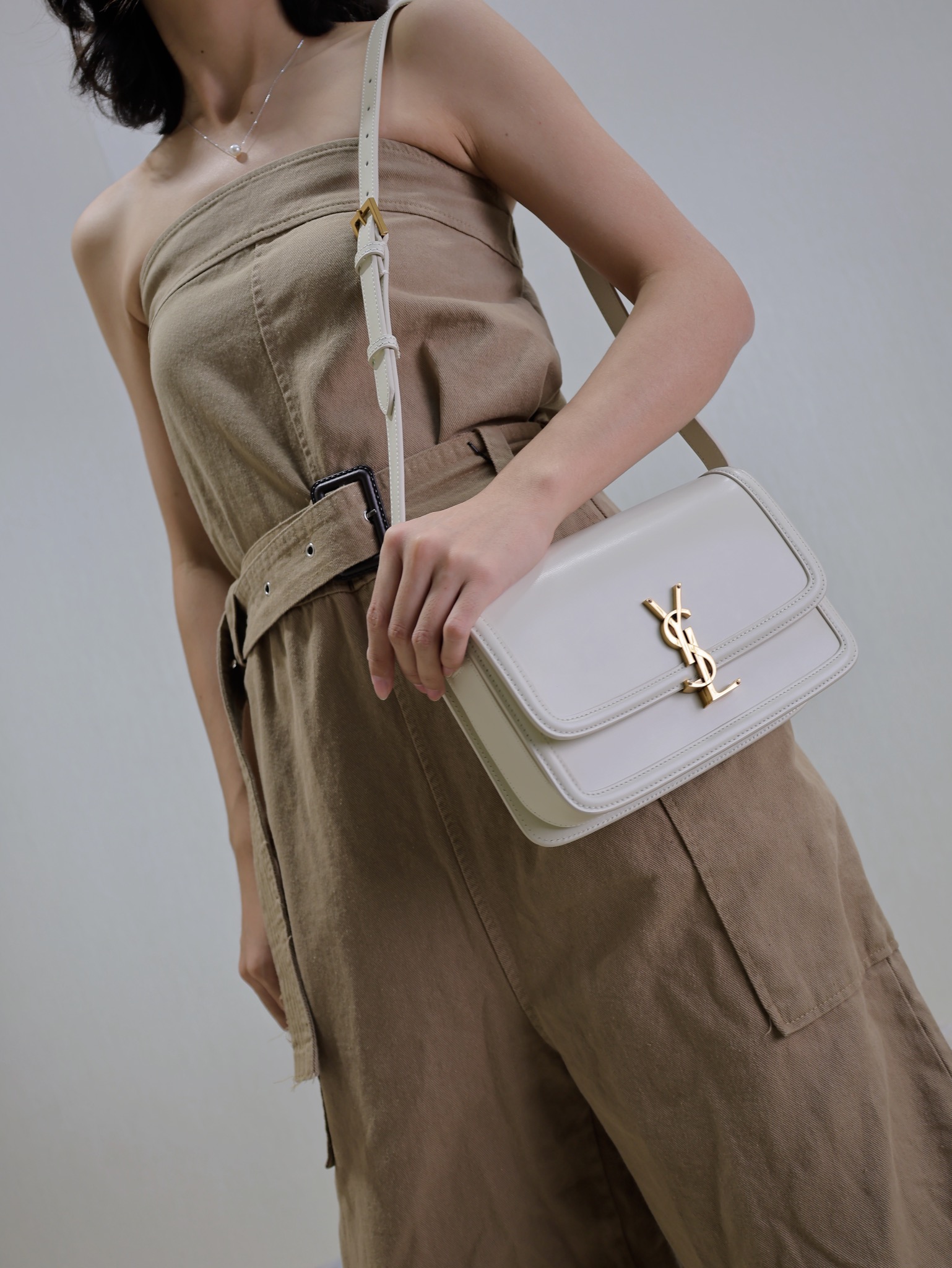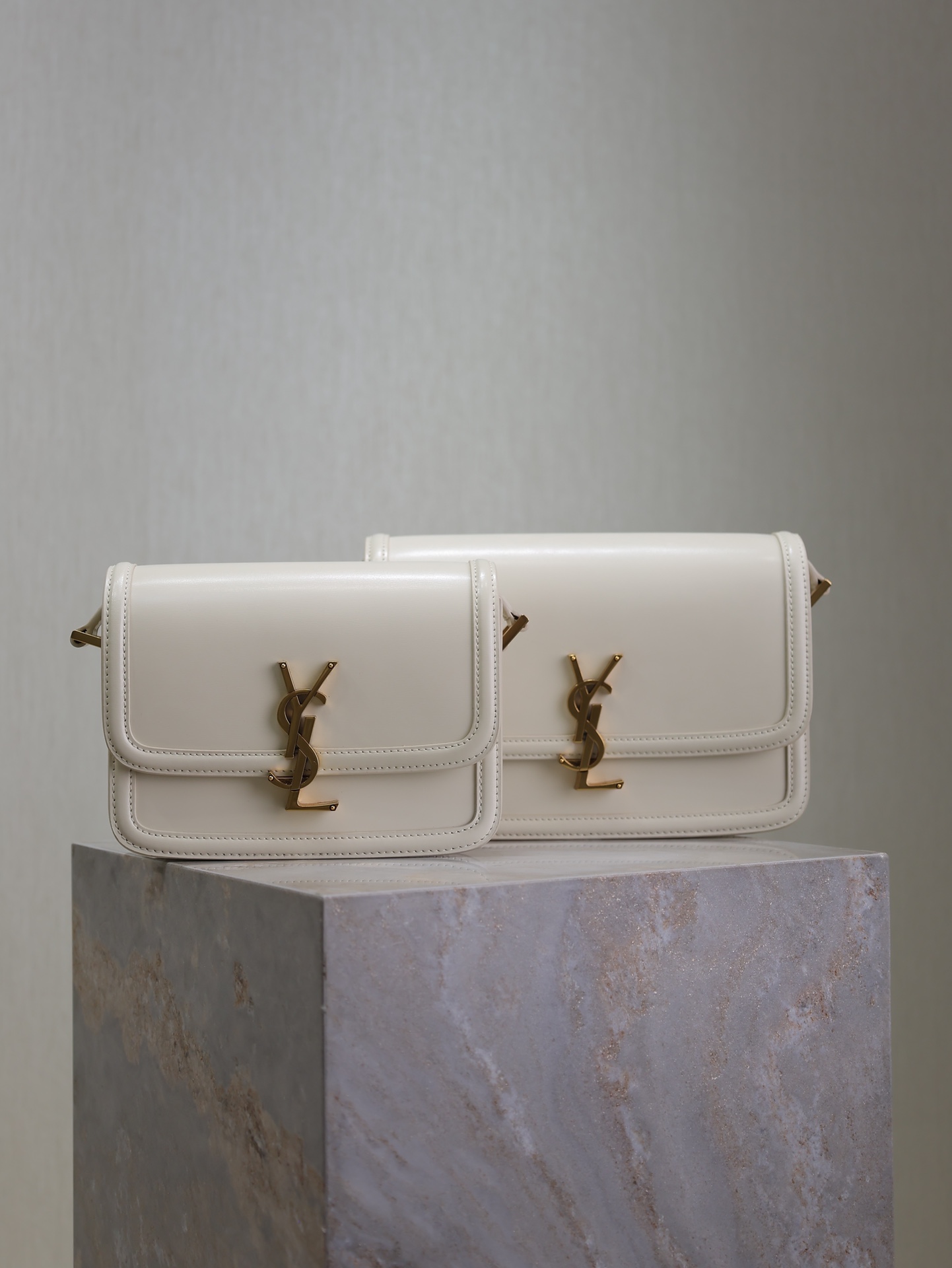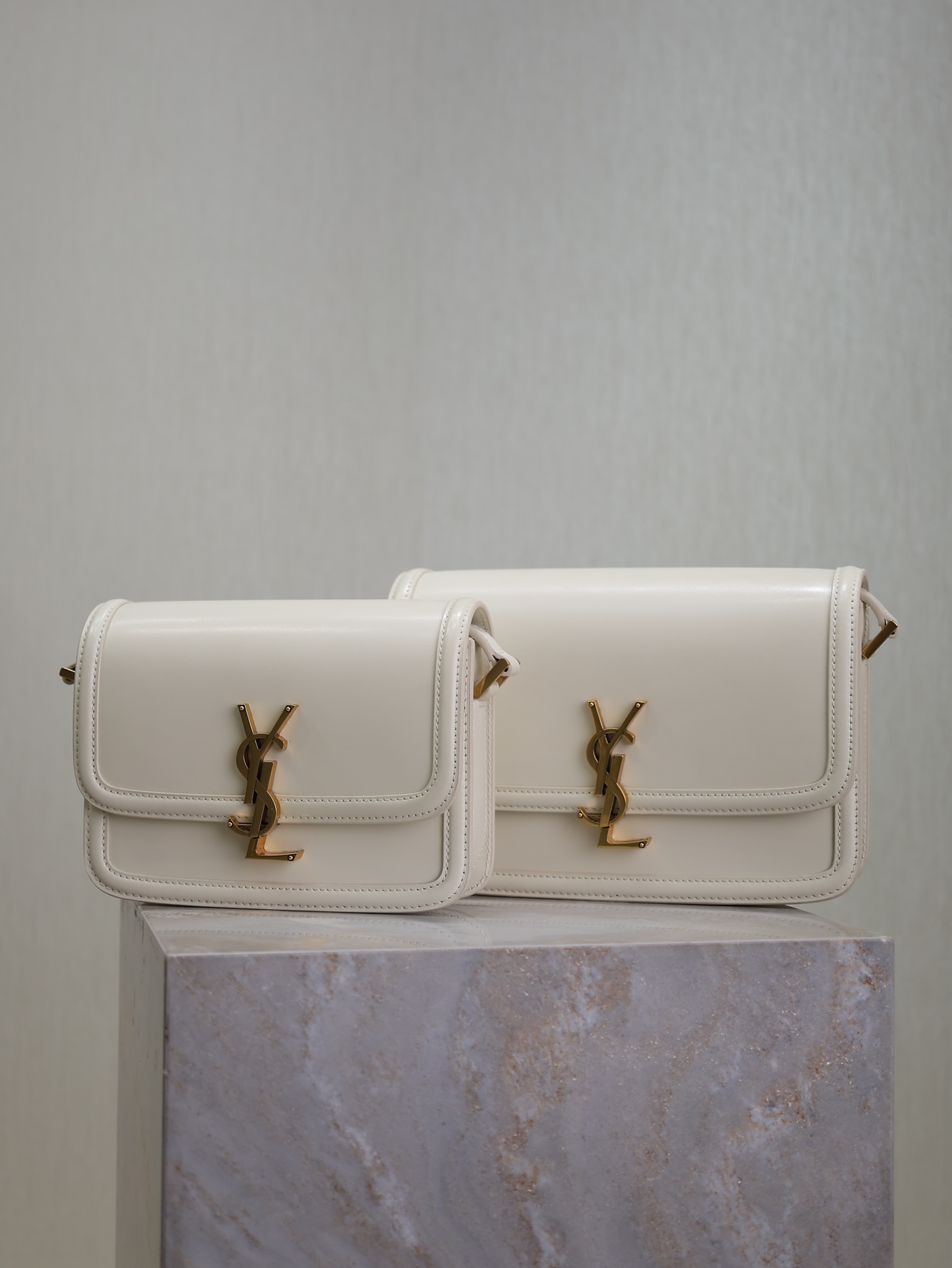 YSL Saint Laurent Solferino Box Bag in White with Gold Clasp, 19/23cm