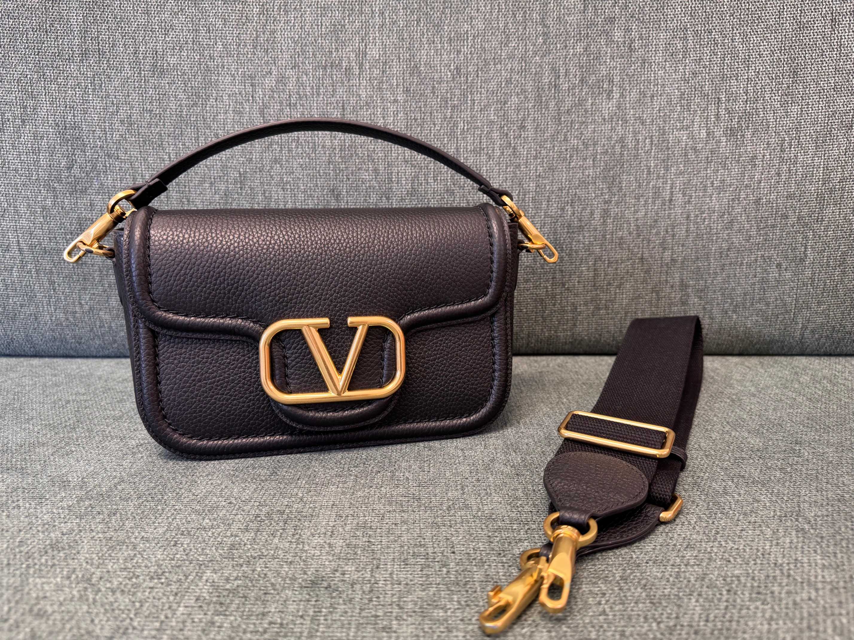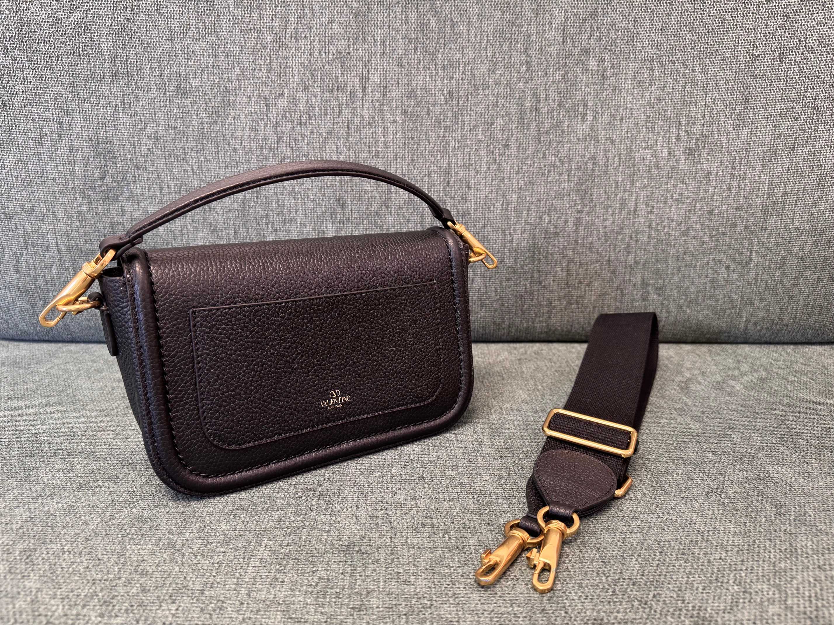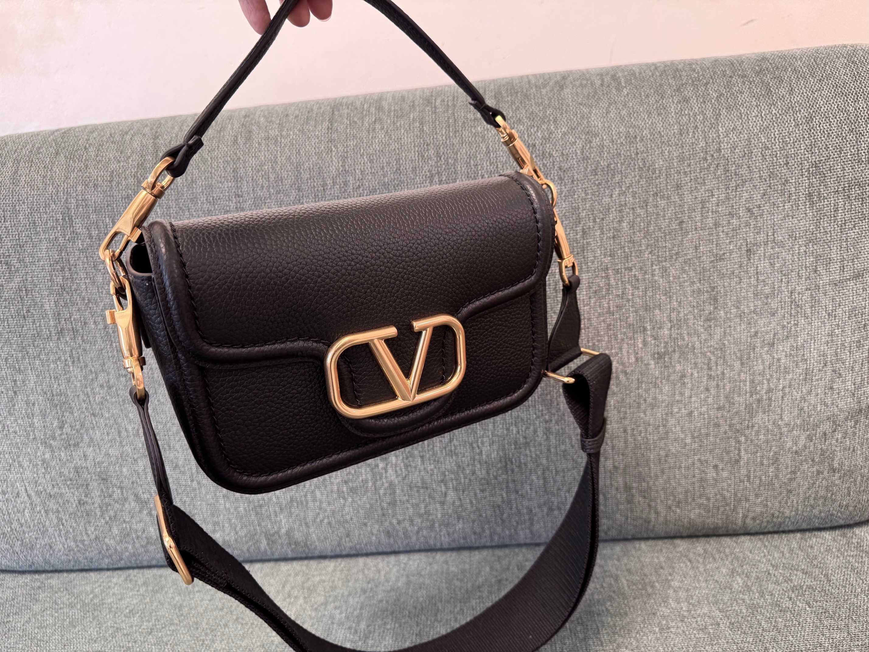 VALENTINO GARAVANI ALLTIME soft grained calfskin handbag, featuring metal VLOGO SIGNATURE details. Thanks to the detachable handle and leather shoulder strap, this bag can be carried on the shoulder, across the body, or by hand.