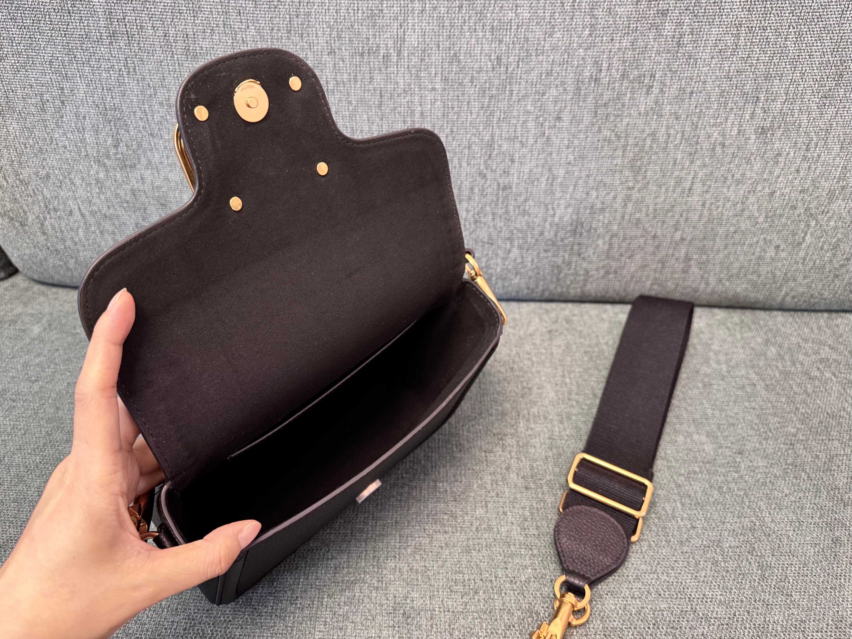 -Soft lambskin leather lining, includes one patch pocket inside