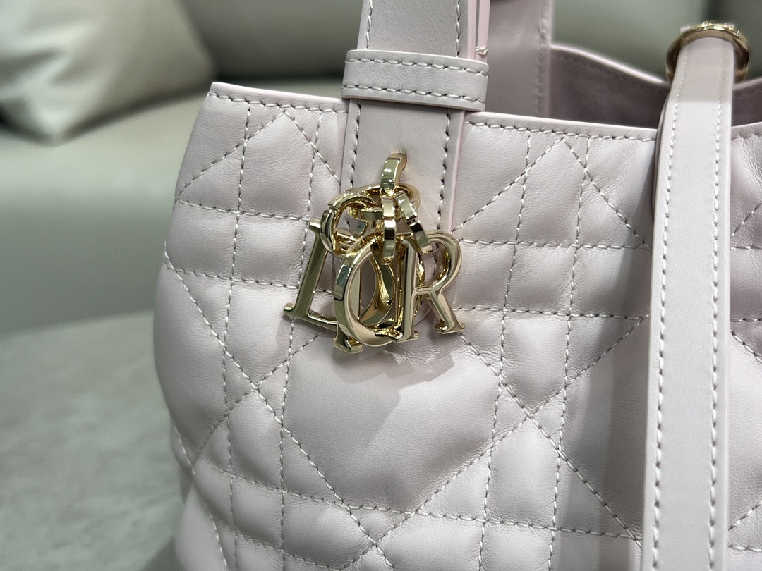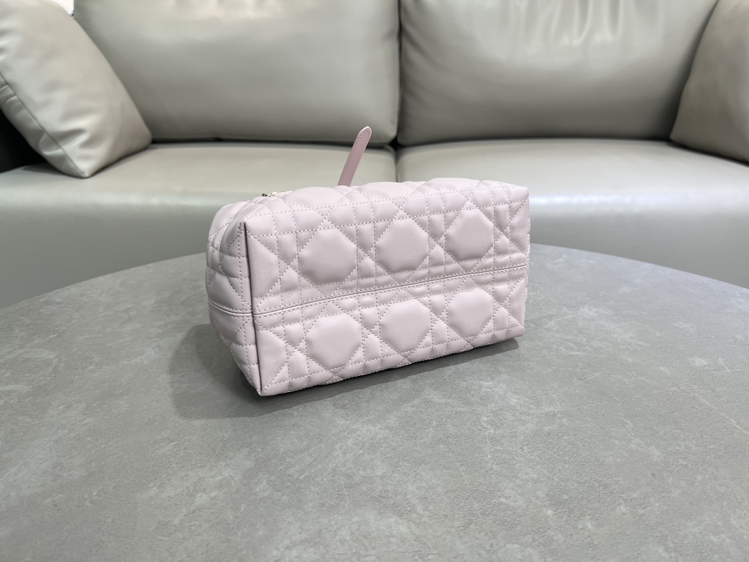 This Dior Toujours handbag made a stunning appearance in the Spring-Summer 2023 collection runway show, featuring a uniquely stylish, casual, and practical design. Meticulously crafted from pink calfskin, it is adorned with oversized cannage stitching. The spacious interior compartment, along with a small pouch, allows for neat organization of various daily essentials. It features a leather tie closure for secure storage of items, as well as a CD Lock with the letter 'D' knob closure. The sides are adjustable, enhancing its elegance. In a small size, the leather handle includes adjustable details, making it suitable for hand carry or shoulder wear.