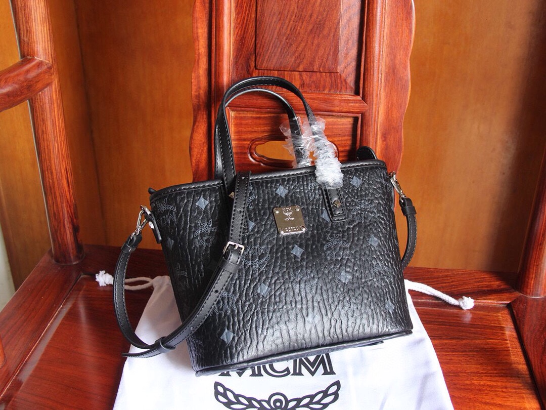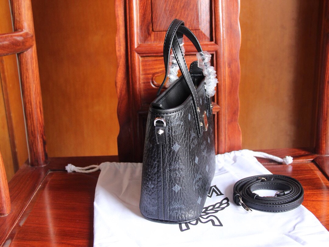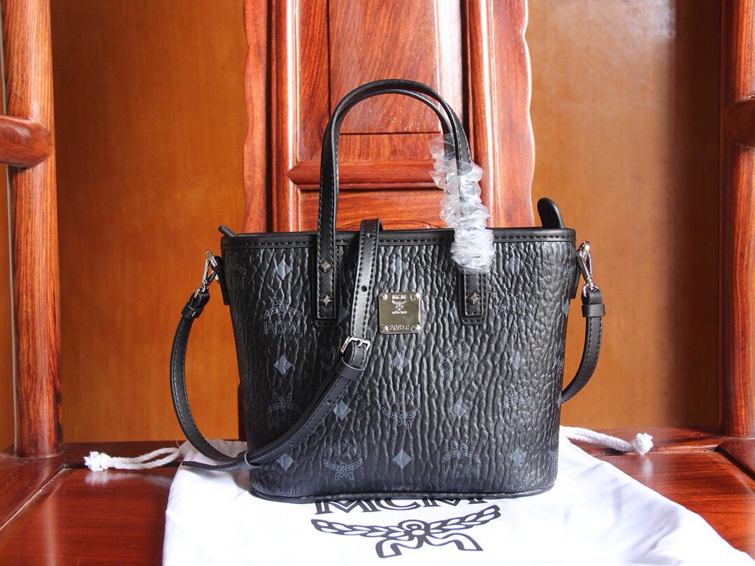 MCM (original quality) bronze mini shopping bag/basket. Made of classic printed coated canvas, it can hold daily necessities and comes with a detachable shoulder strap for single-shoulder, cross-body, or hand carry. Classic and versatile, practical and stylish. Dimensions: 20×17×10cm.