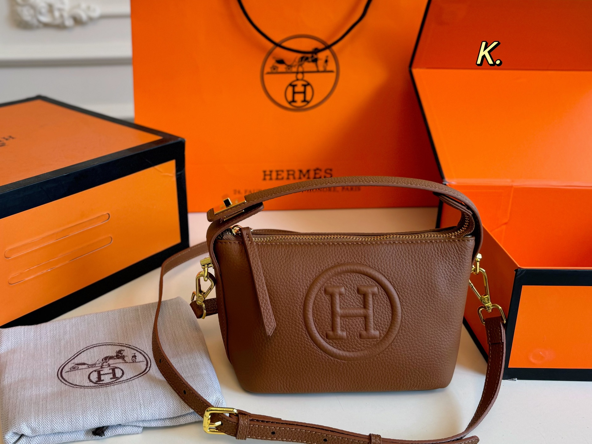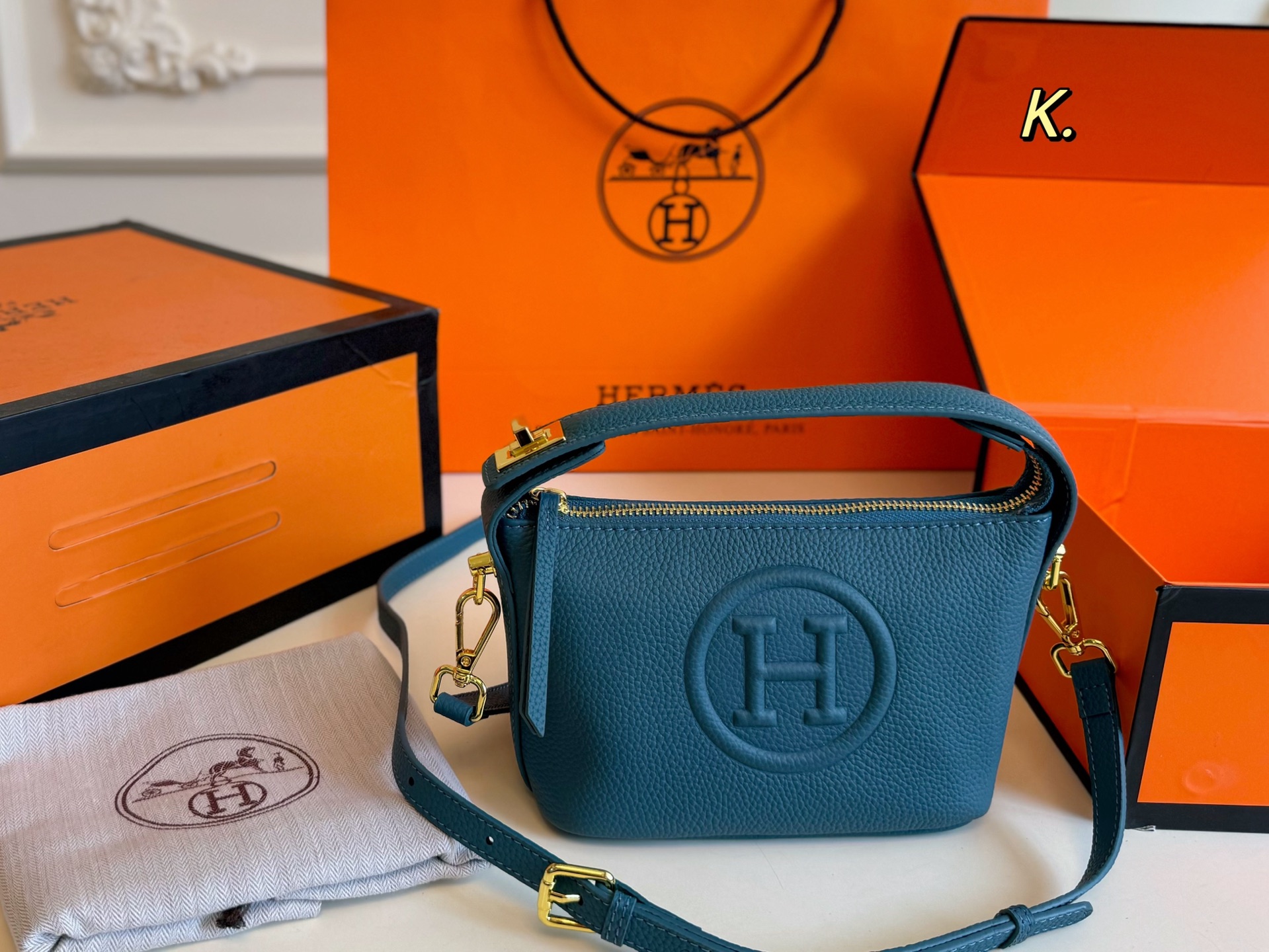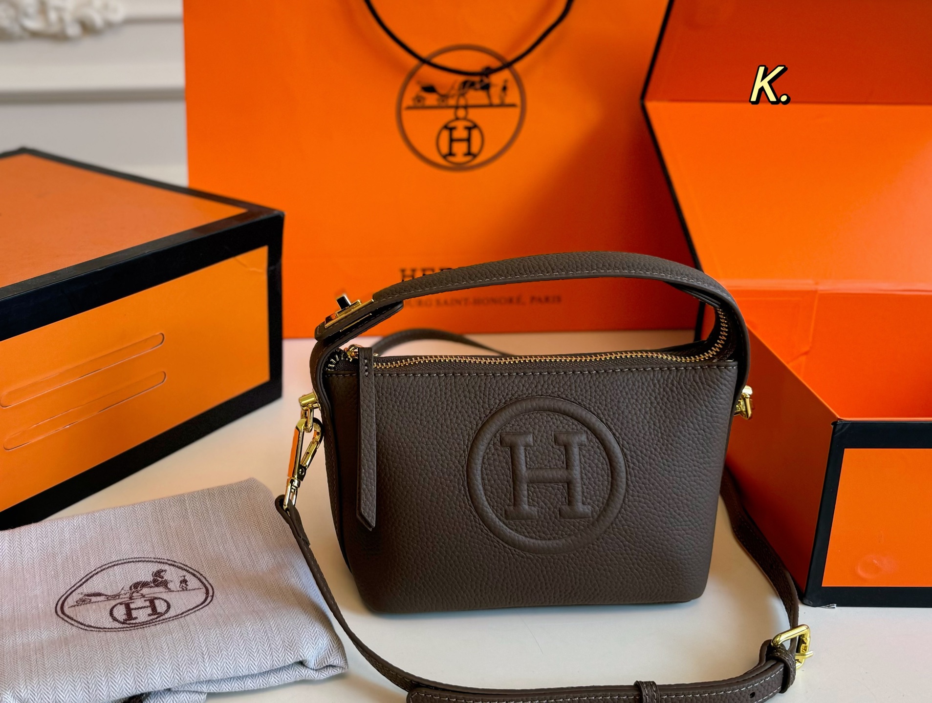 Comes with a long shoulder strap, can be worn crossbody or carried by hand.