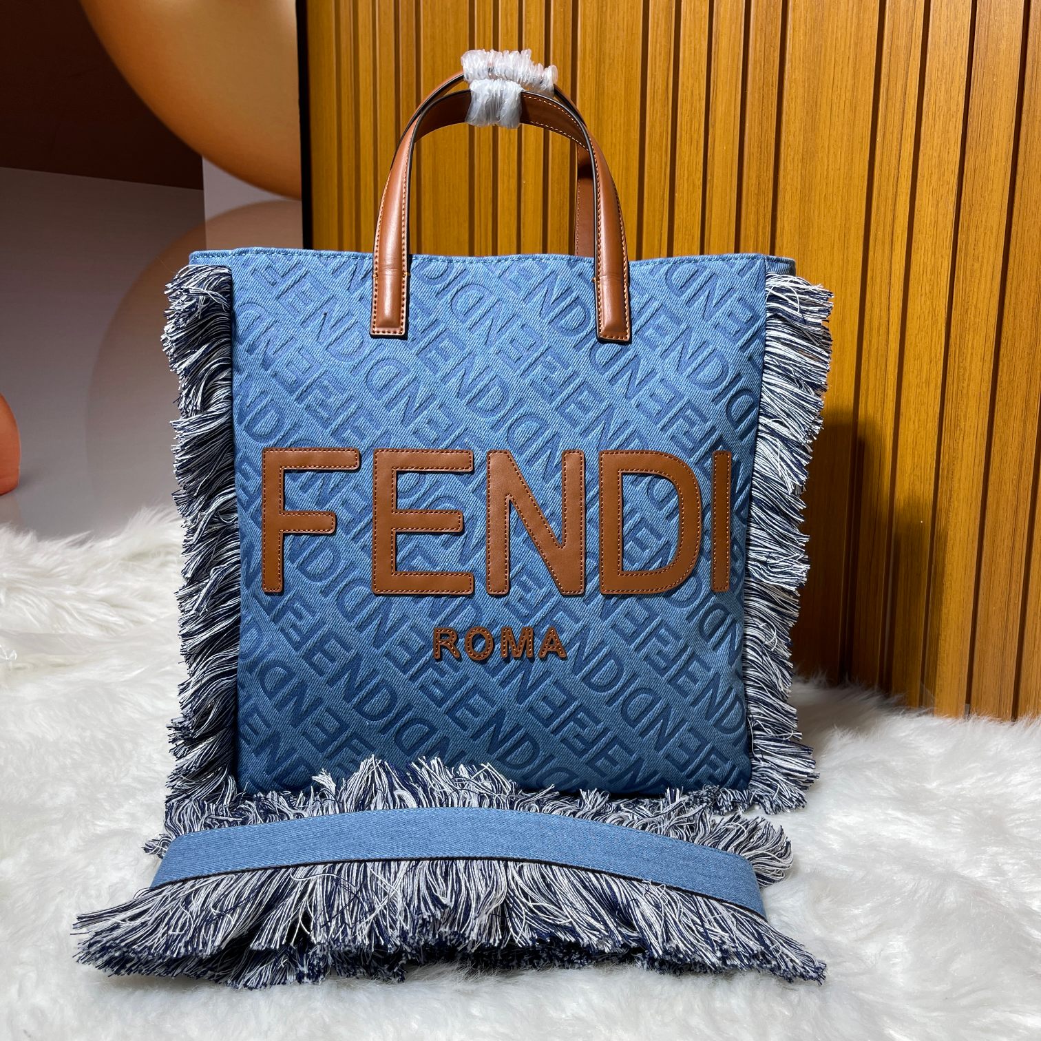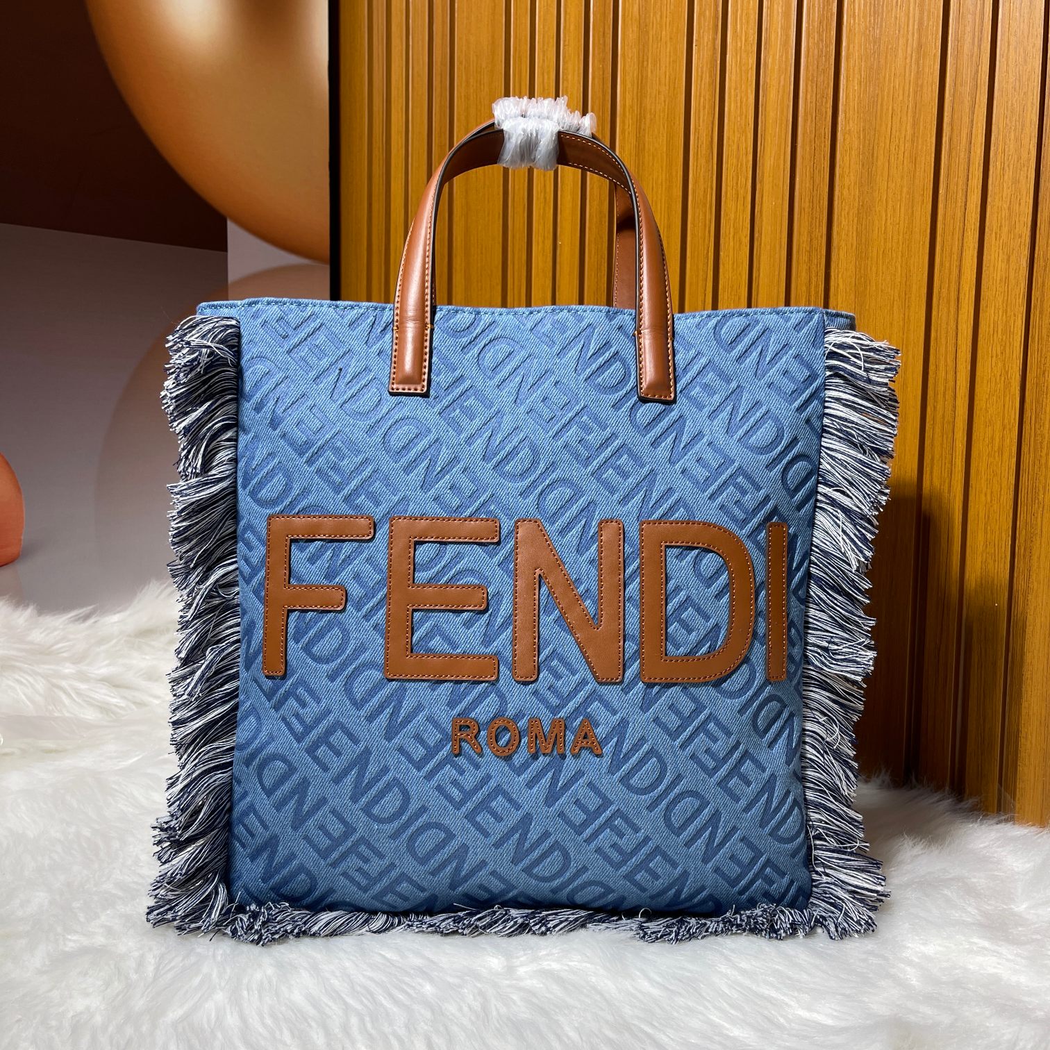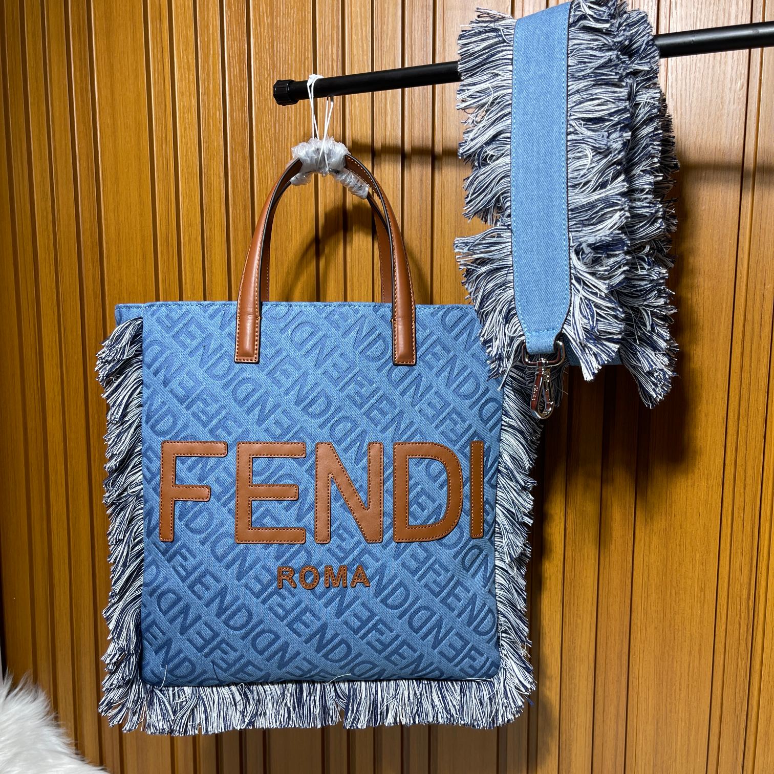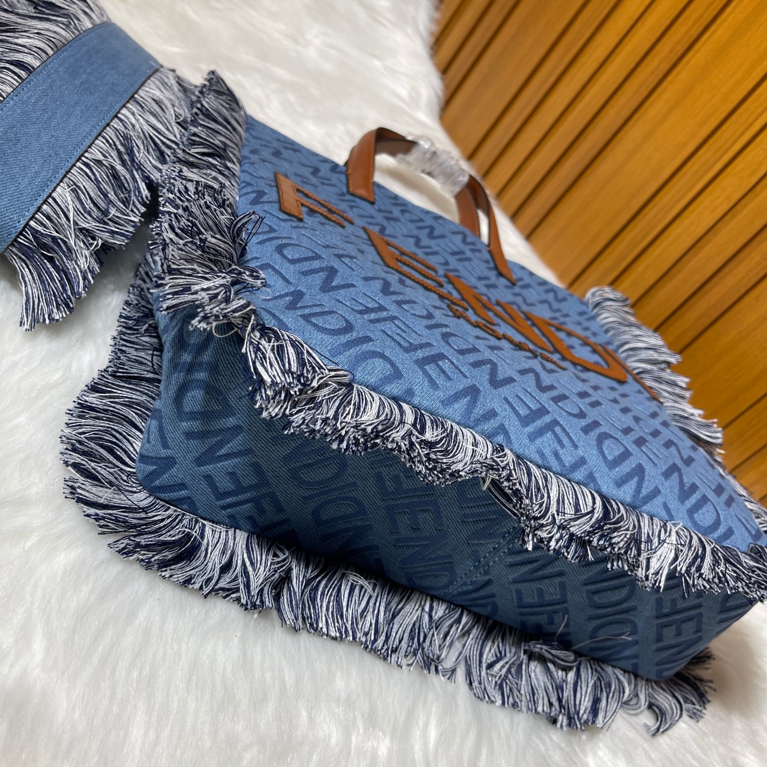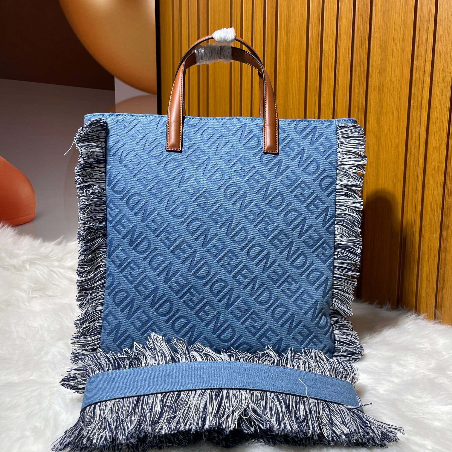 🛒 Factory Direct Sale Fendi Denim Fringe Tote Bag. Shoulder or crossbody, not a problem. Denim fabric with embossed letters, giving off a lazy, casual street style. Super practical! Size 30 cm