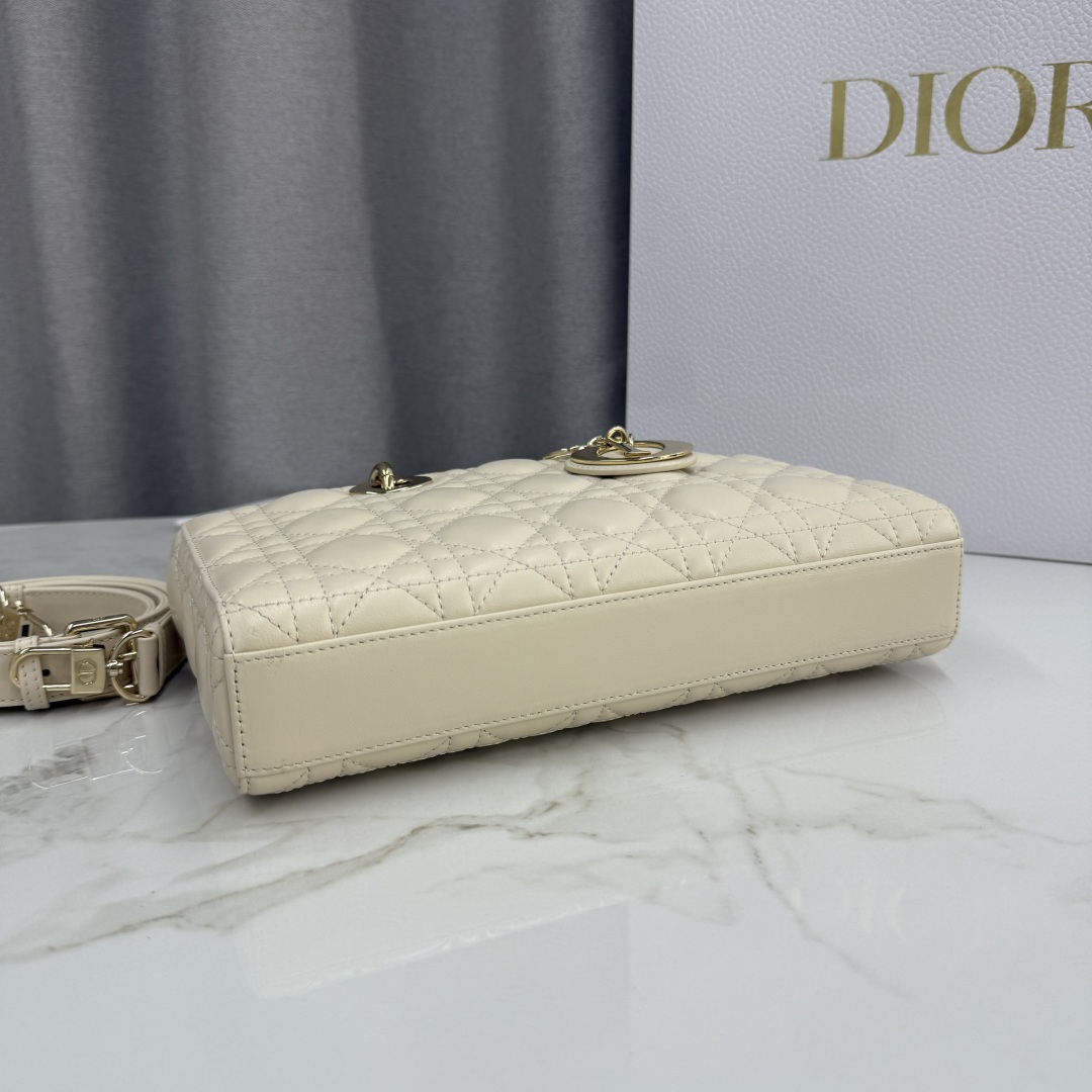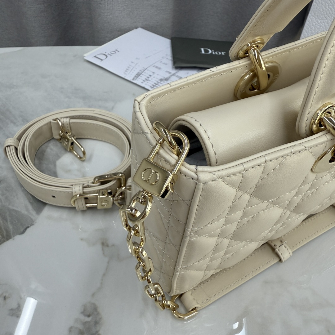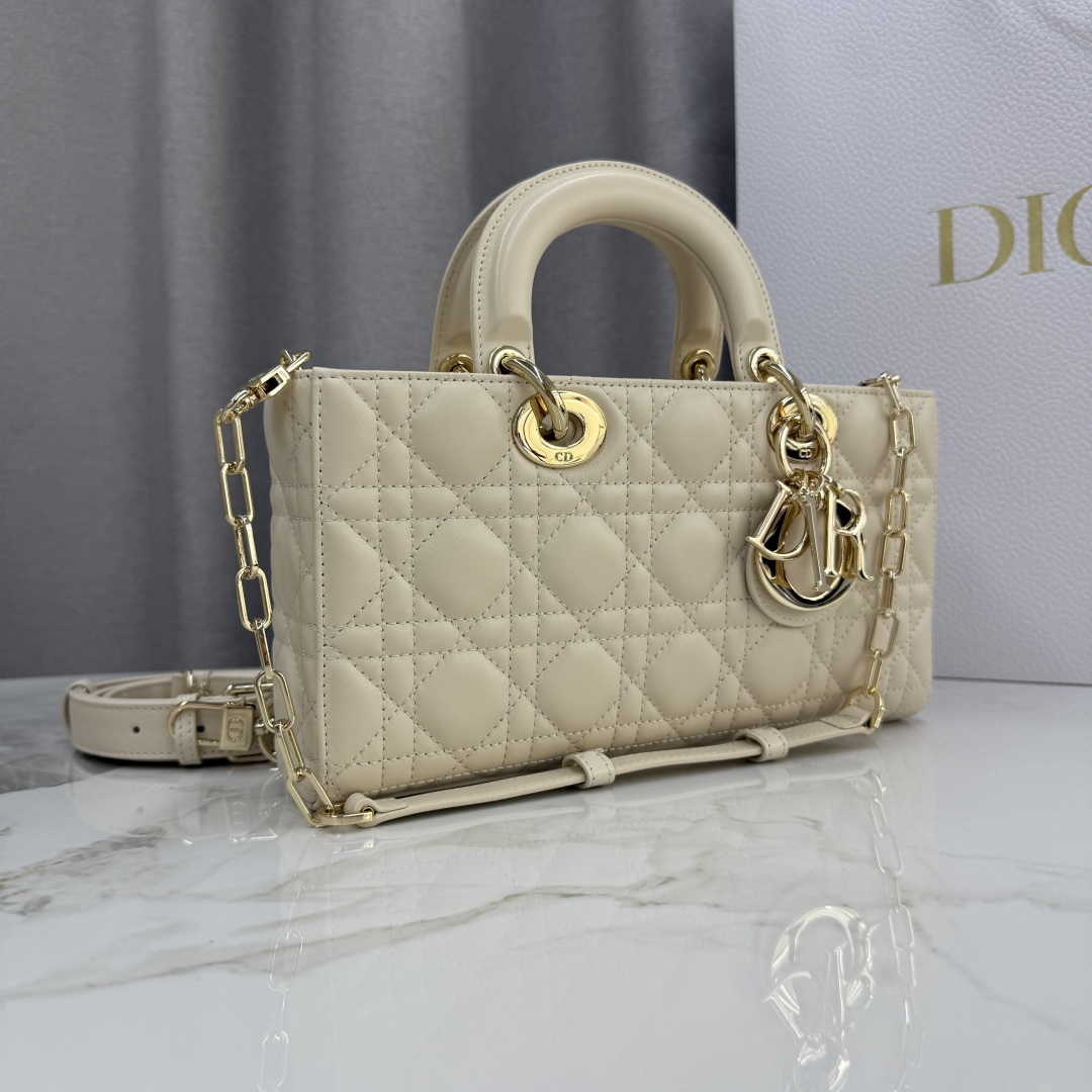 This Lady D-Joy handbag interprets Dior's profound insight into elegance and beauty. The elegant and classic style is meticulously crafted with imported patent leather embroidery and the brand's classic cannage pattern. It is enhanced with a light gold-finished metal Dior charm, adding a touch of dynamism to the exquisite silhouette. Equipped with a detachable chain strap and an adjustable, detachable leather strap, it can be carried by hand, on the shoulder, or cross-body, making it an ideal choice for everyday goddesses.