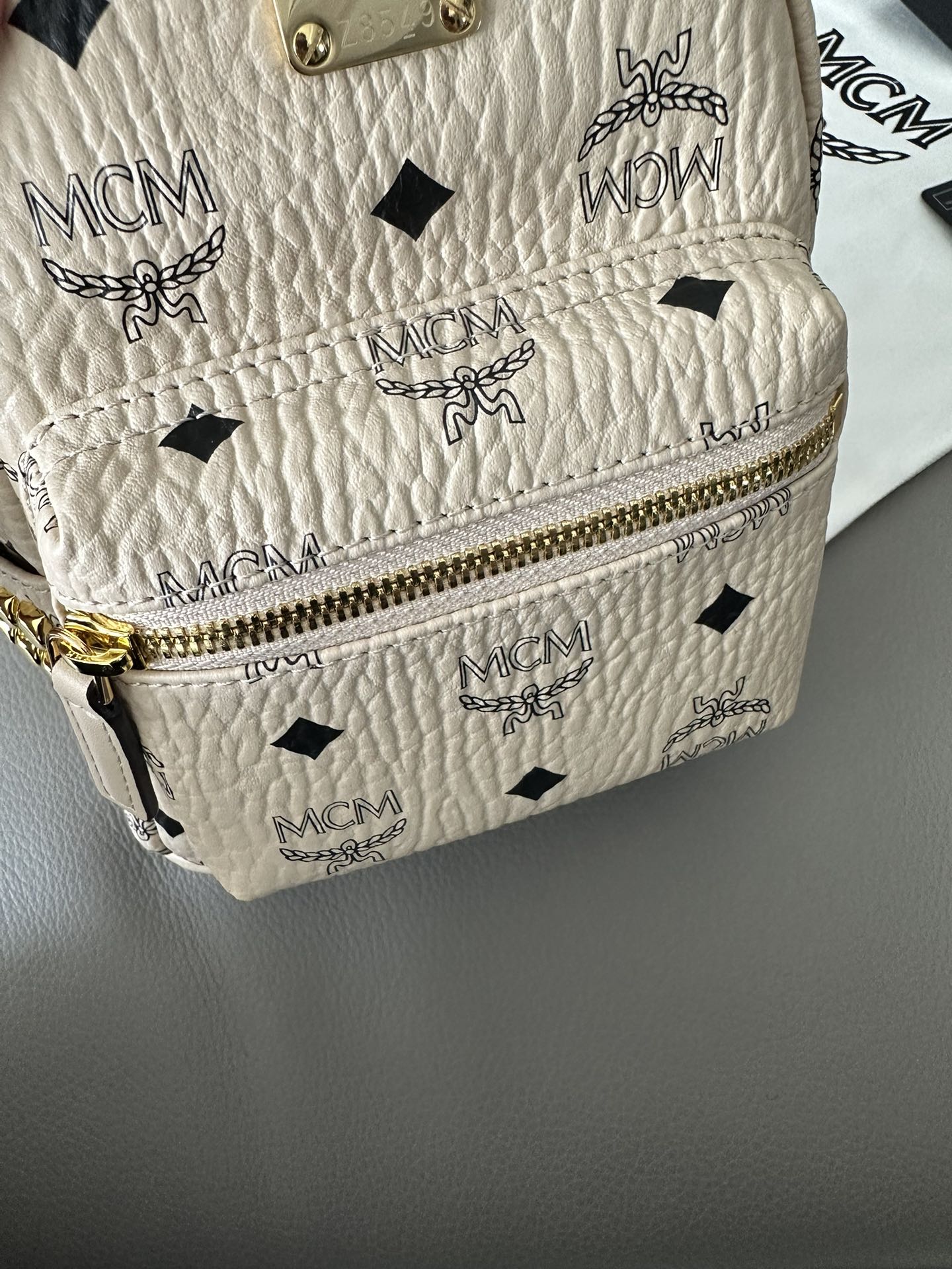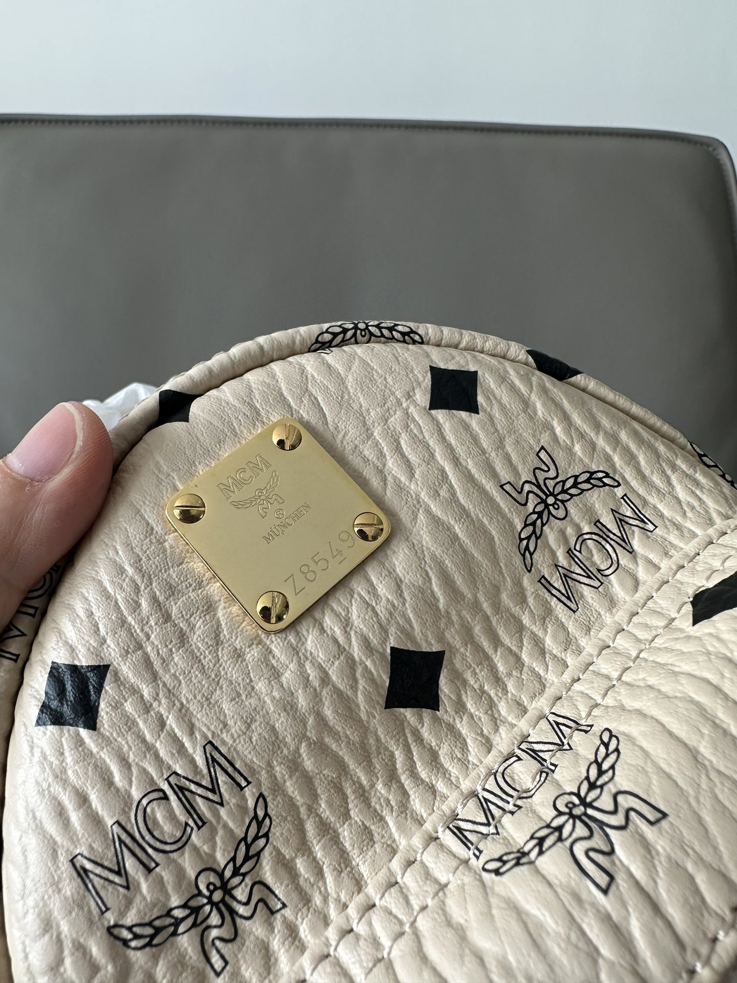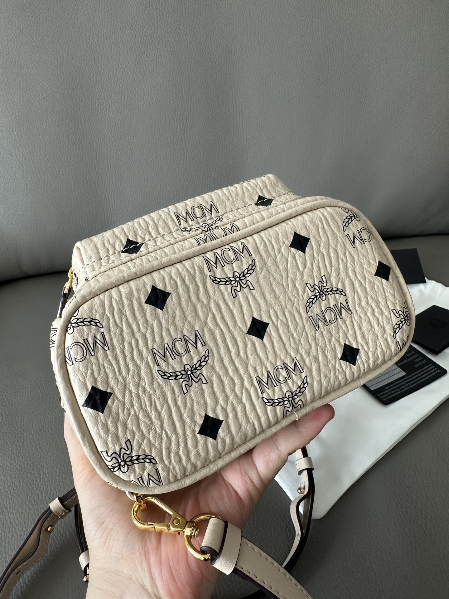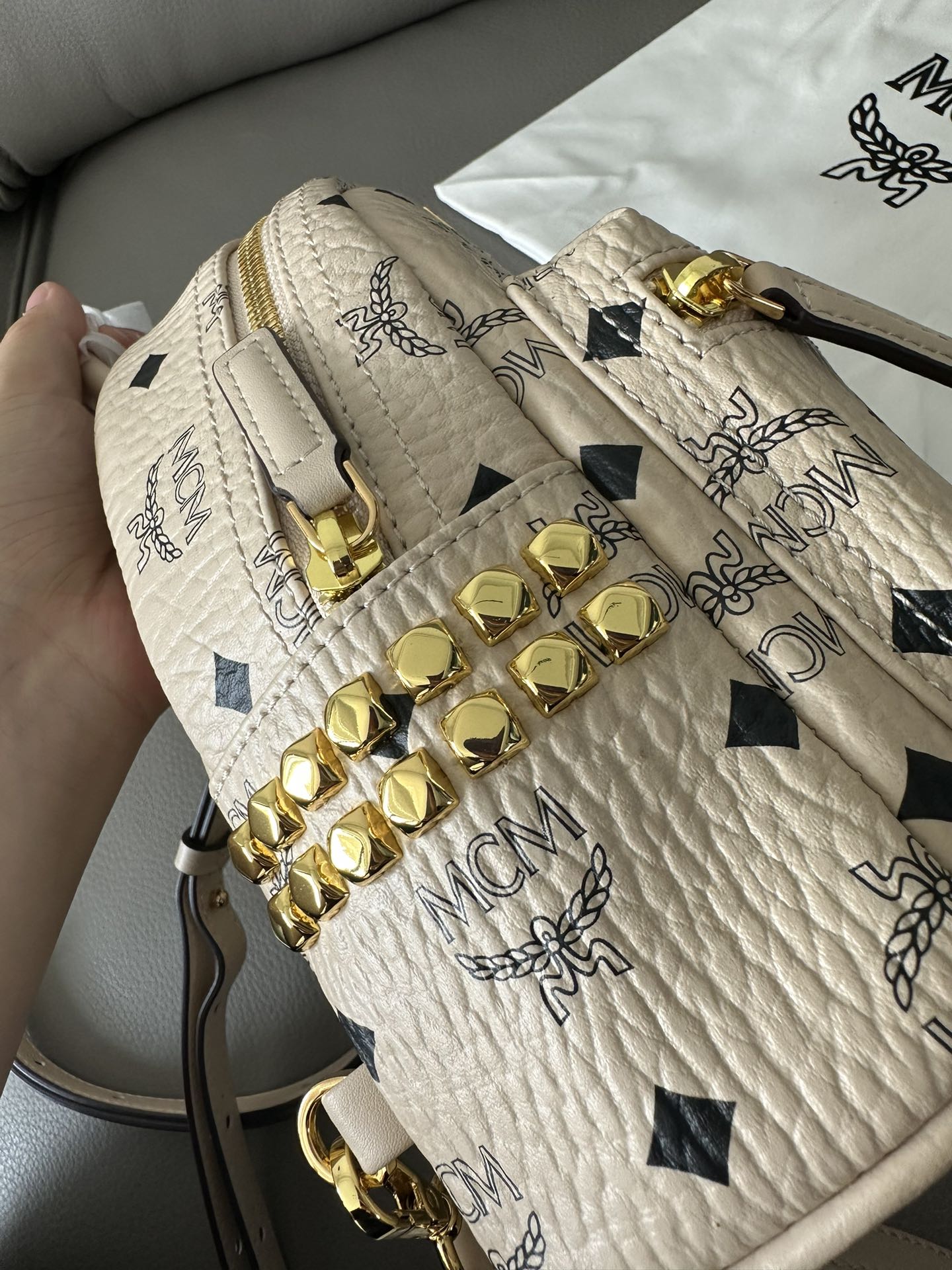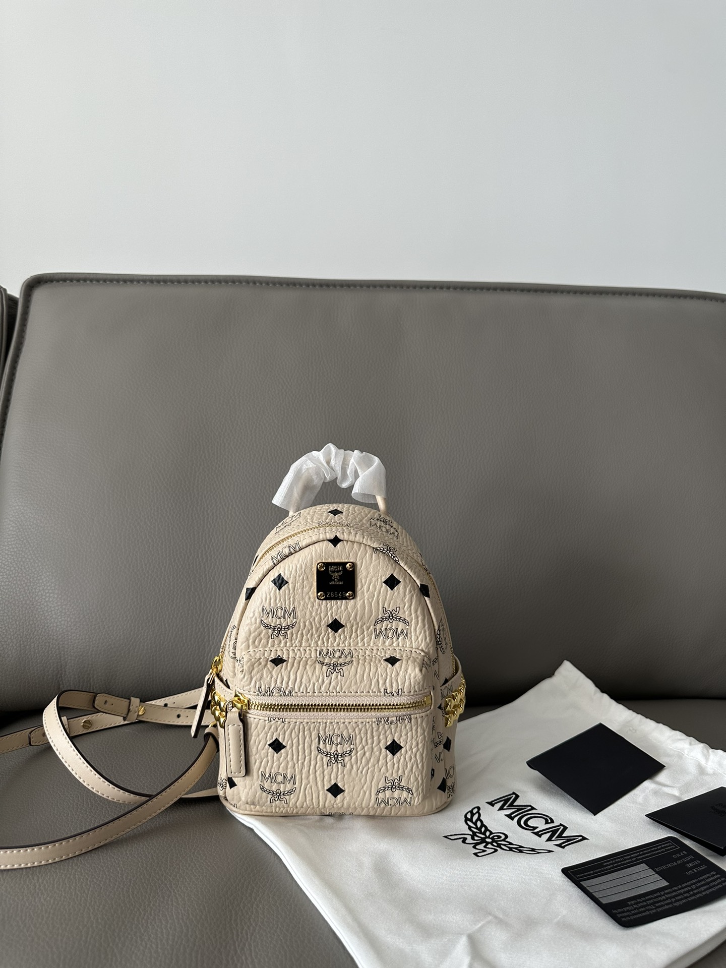 [Top Original] MCM STARK series side stud ultra mini, classic reduced version, comes with 4 straps (two long and two short). By adjusting the straps, it can easily switch between a crossbody bag, backpack, wristlet, or handbag, offering versatile styles and full adaptability. The material uses MCM-specific leather, paired with high-quality cowhide, and selected premium hardware. Dimensions: 17*21*9cm,