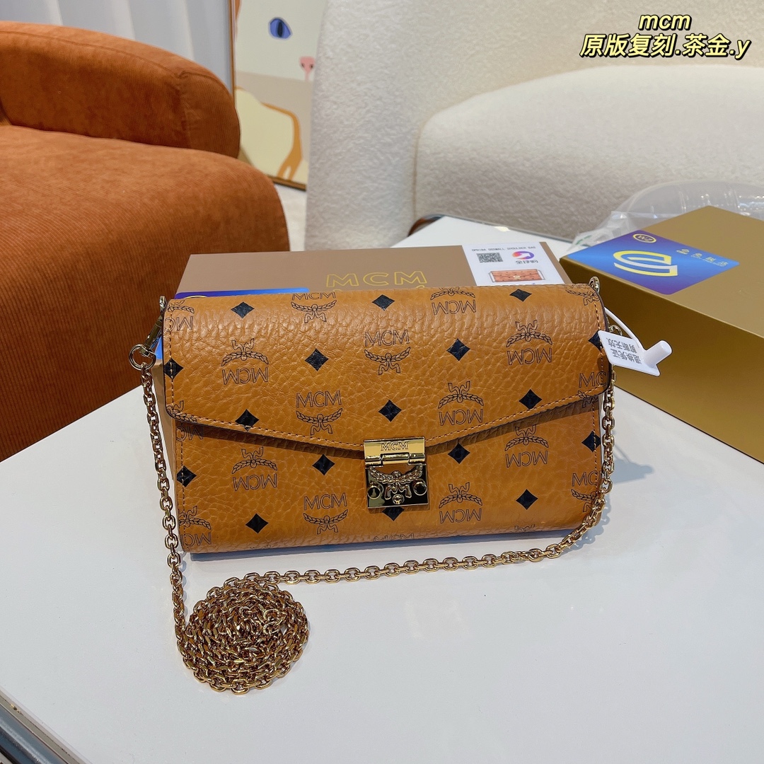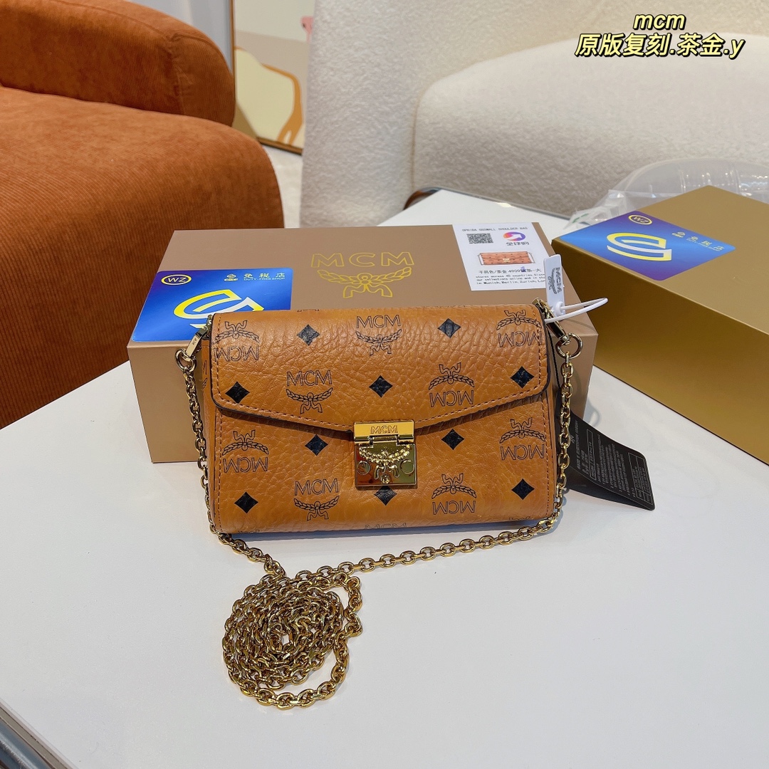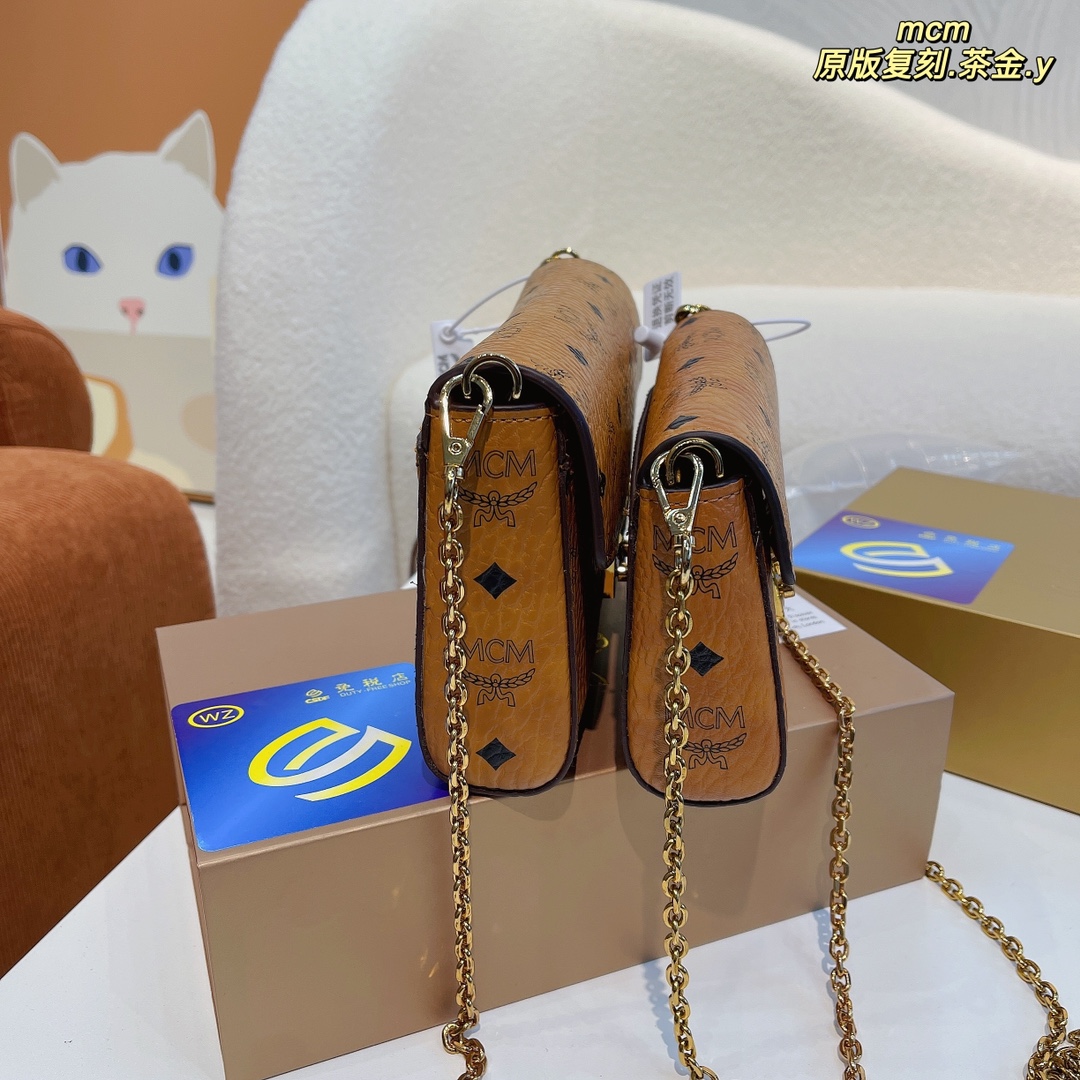MCM original tea gold chain bag