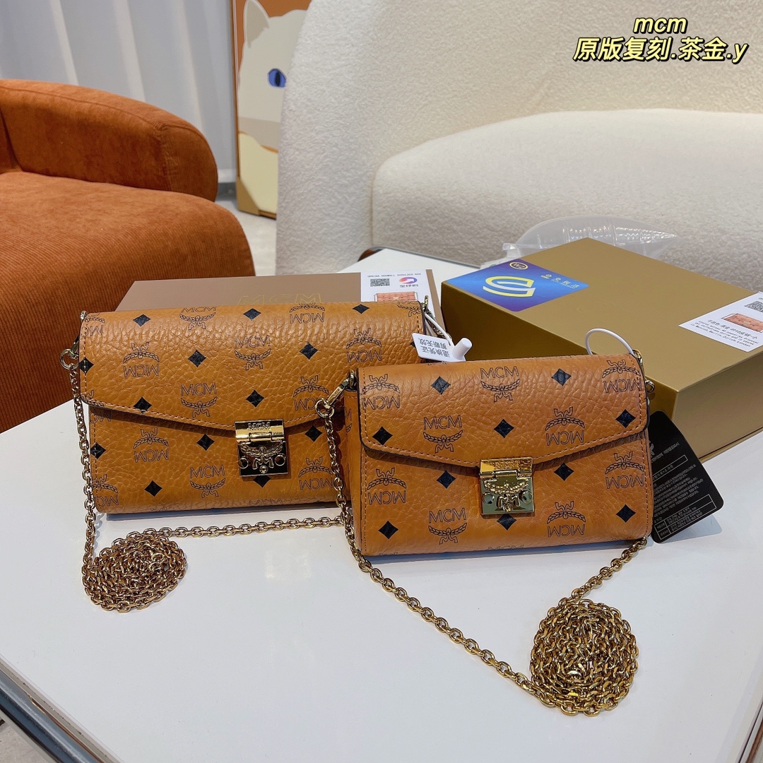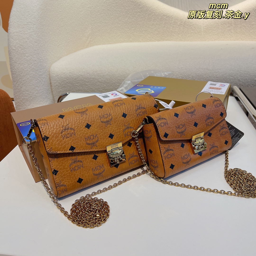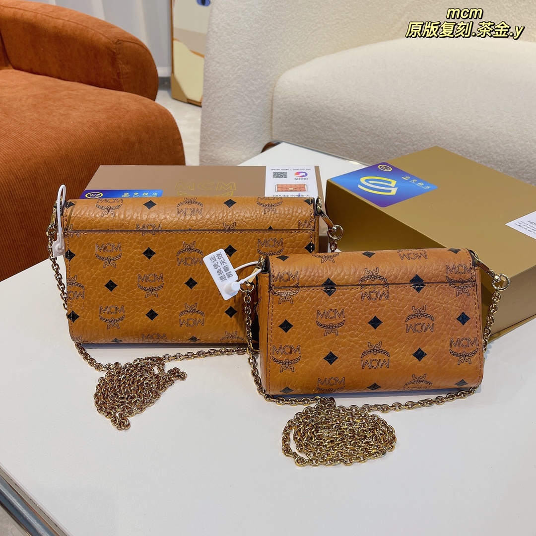 MCM original tea gold chain bag