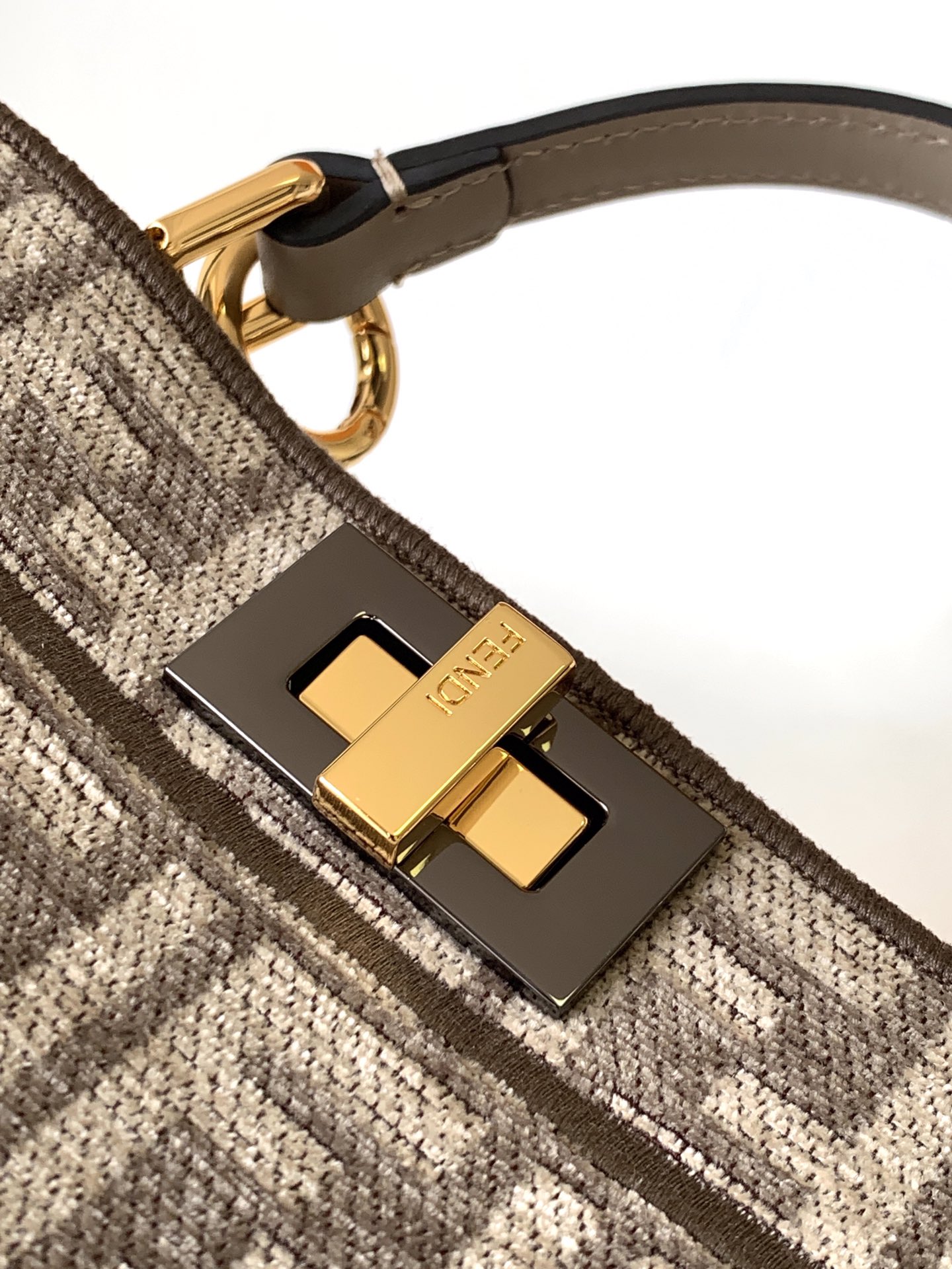 Factory Direct Sales Top Original Fendi Iconic Peekaboo ISeeU Small Handbag, Fabric Material, Both Sides Decorated with Classic Twist Locks Two Compartments Separated by Rigid Dividers Removable, Comes with Handle and Adjustable Detachable Shoulder Strap