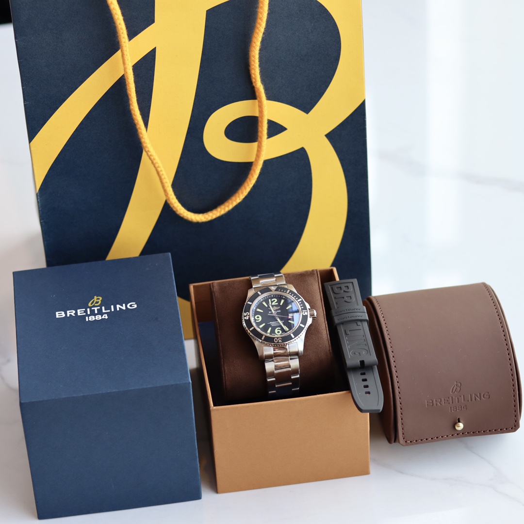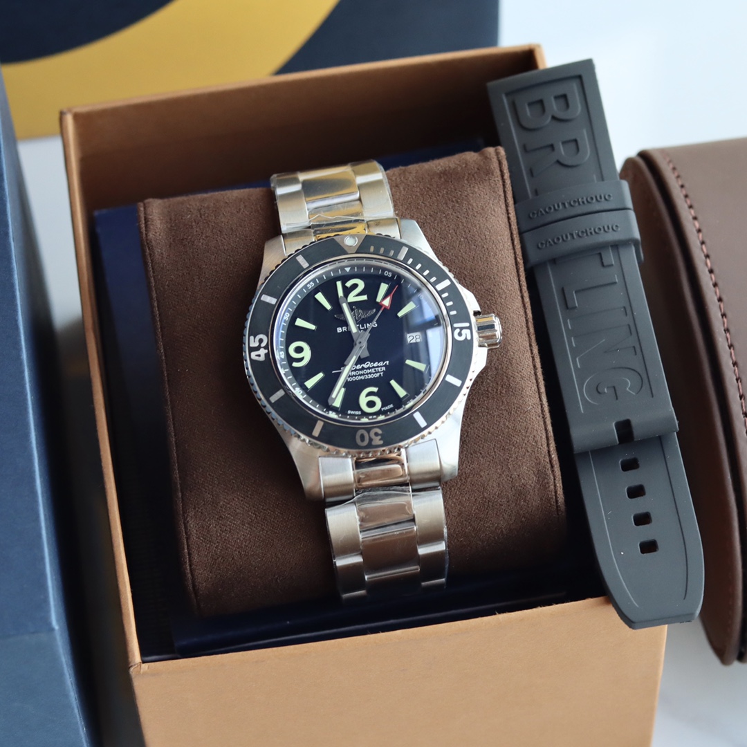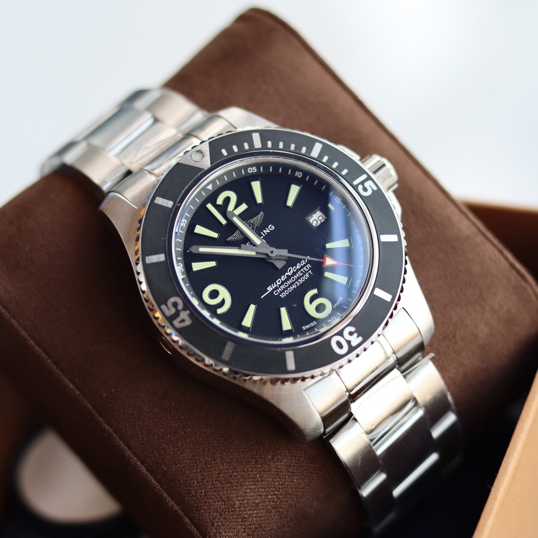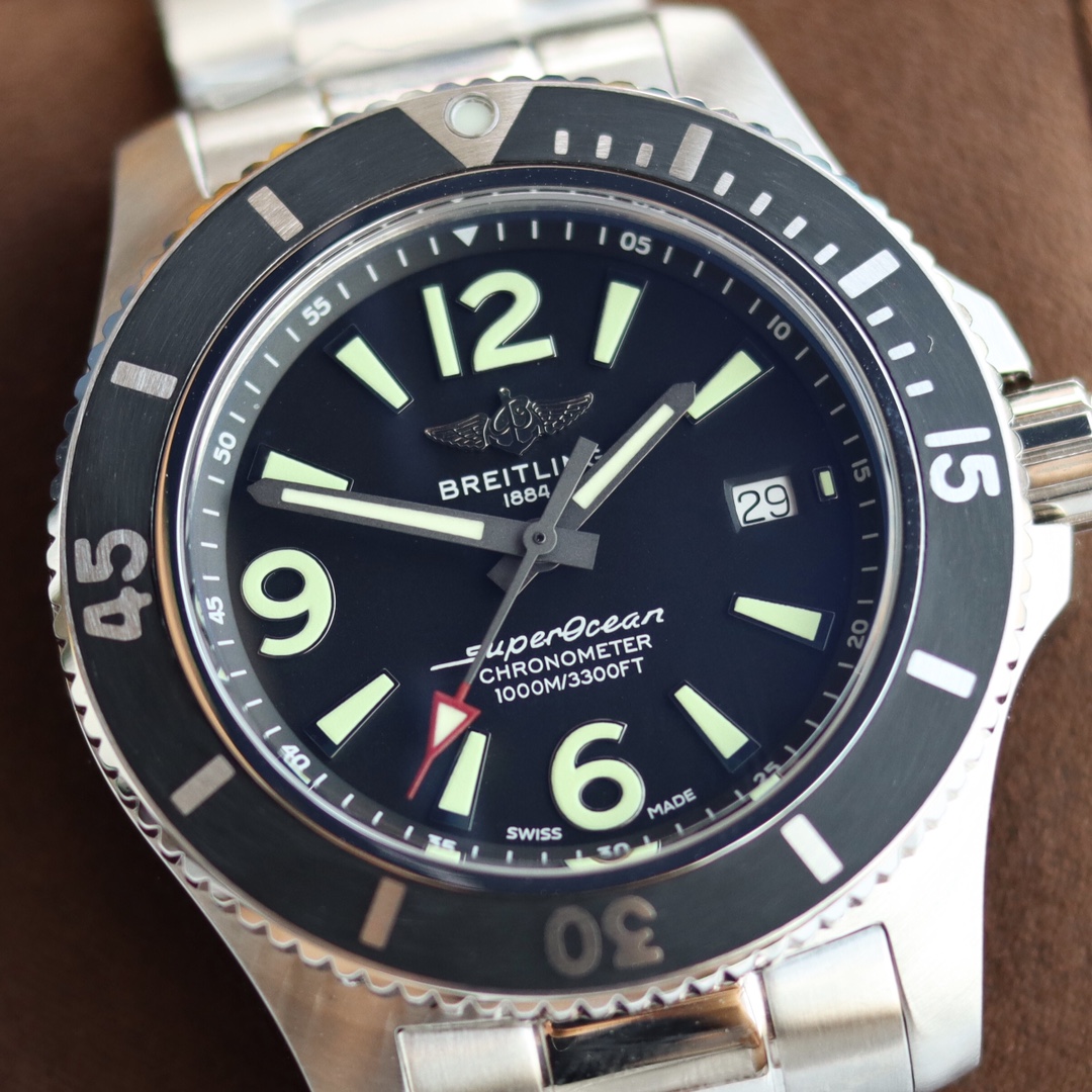 Batch, latest arrival Original Breitling genuine factory authentic Breitling Superocean automatic mechanical watch, fresh, colorful, and sporty, specially designed for men who pursue卓越 performance and modern style. A sense of power, functionality, and cool contemporary style outline the classic image of the Breitling ocean. It features a sturdy 44mm stainless steel case, a ratcheted unidirectional bezel, and is equipped with an original Swiss ETA SW200 automatic mechanical movement. Curved sapphire crystal glass, anti-reflective on both sides. Channel warehousing, price and style absolutely stunning,专柜售万+, comes with an additional rubber strap, full set of original packaging for shipment.