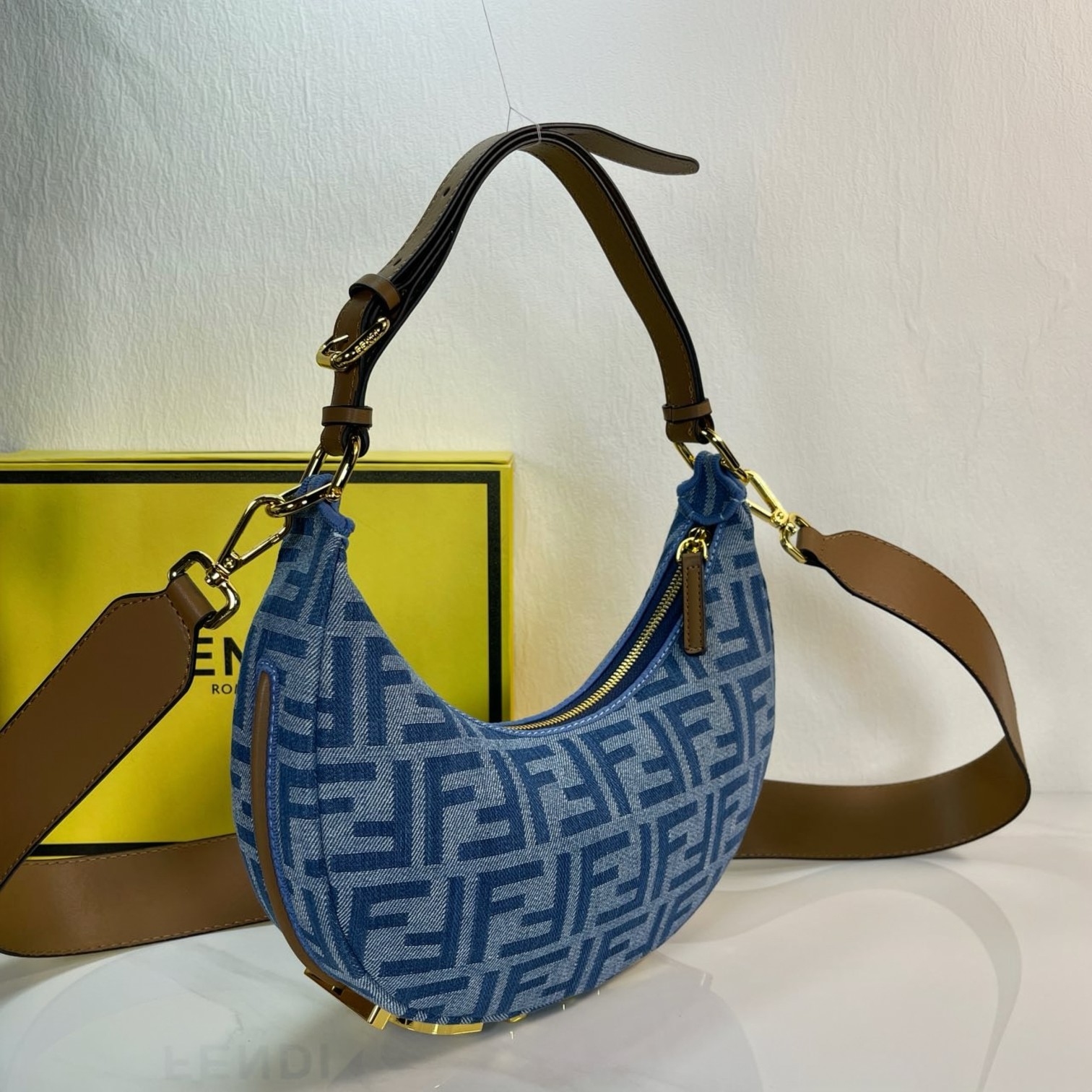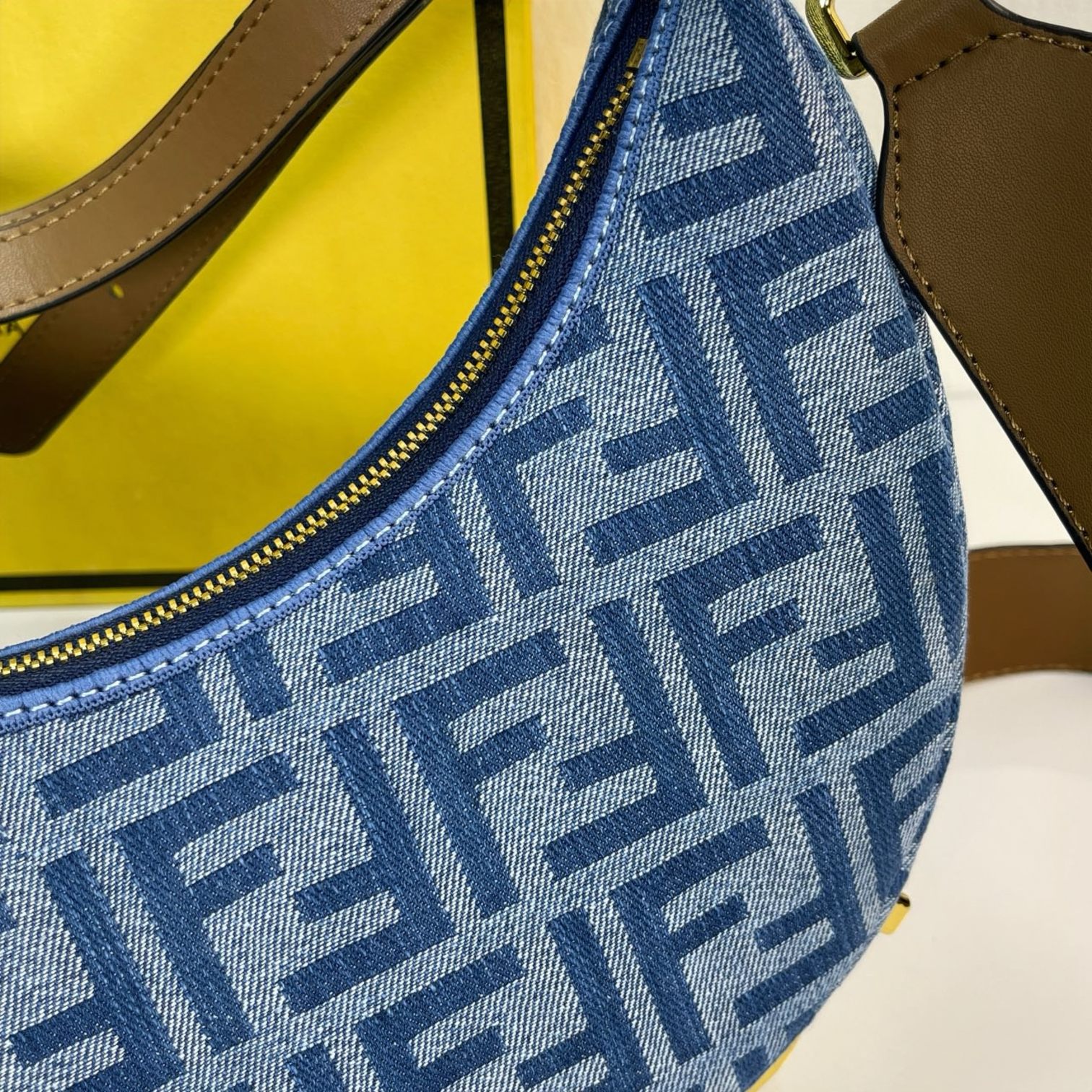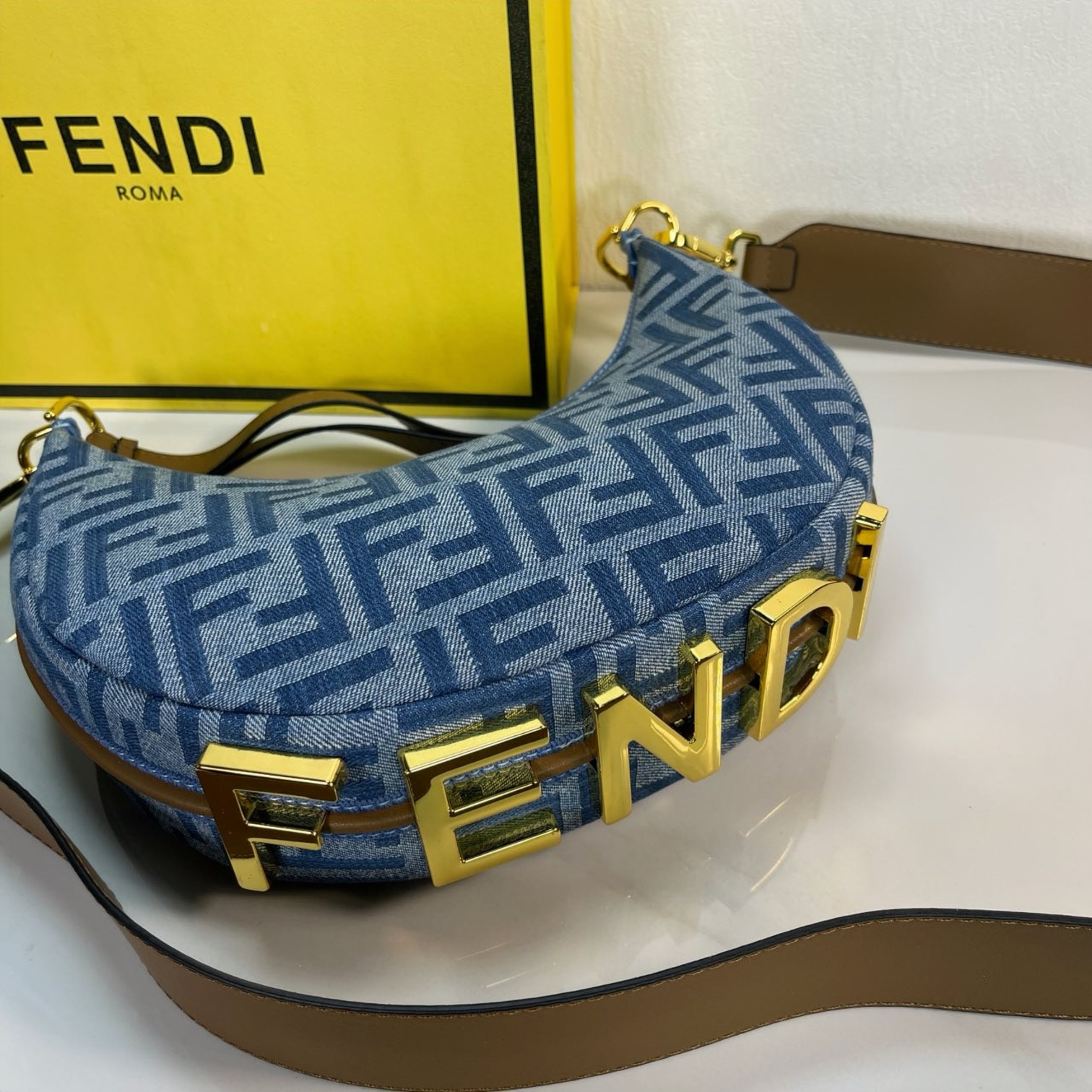 🛒 Factory direct sales medium FEND1 praphy underarm bag, featuring a crescent moon shape, with the classic large metal logo [FEND1] decorated at the bottom of the bag. The bag's contour fits the body's lines very well, and when worn under the arm, it is full of fashion sense—simply a walking grass-planting machine!