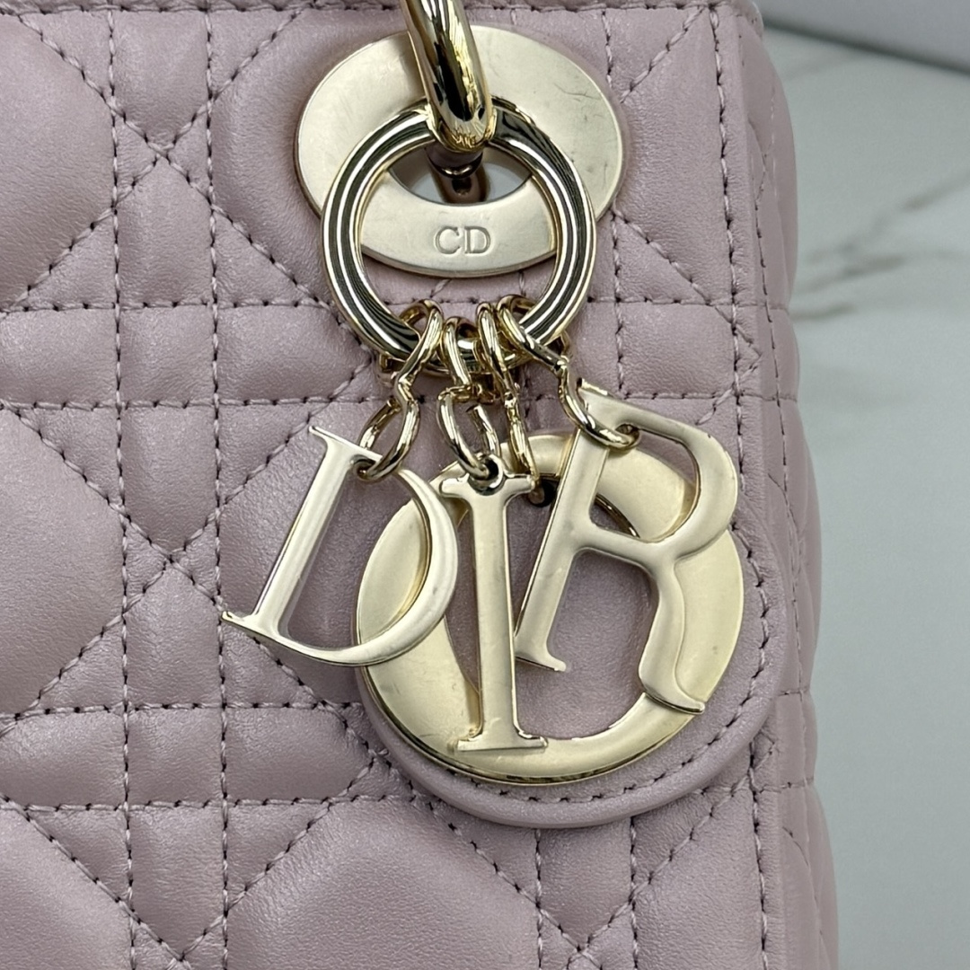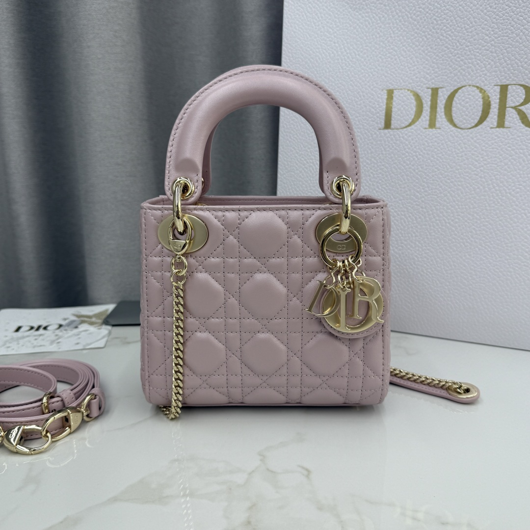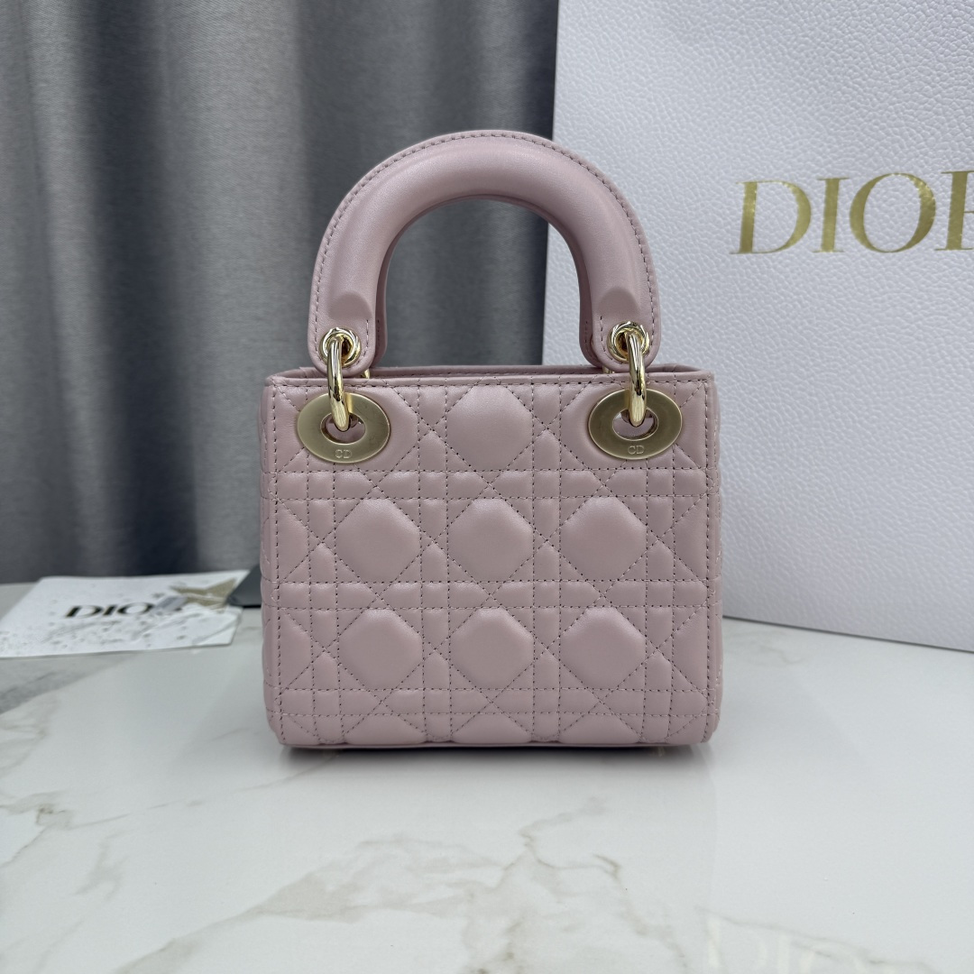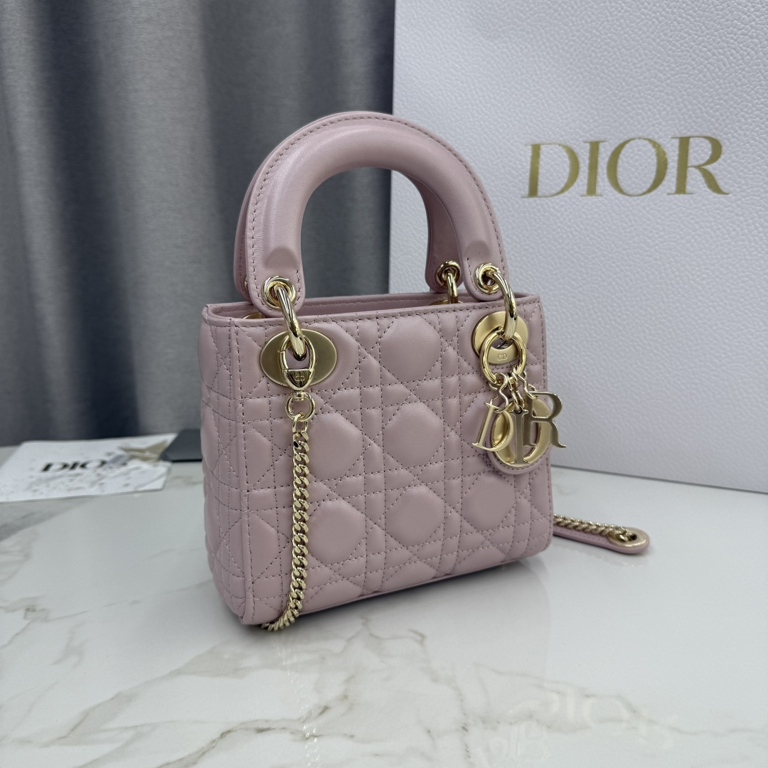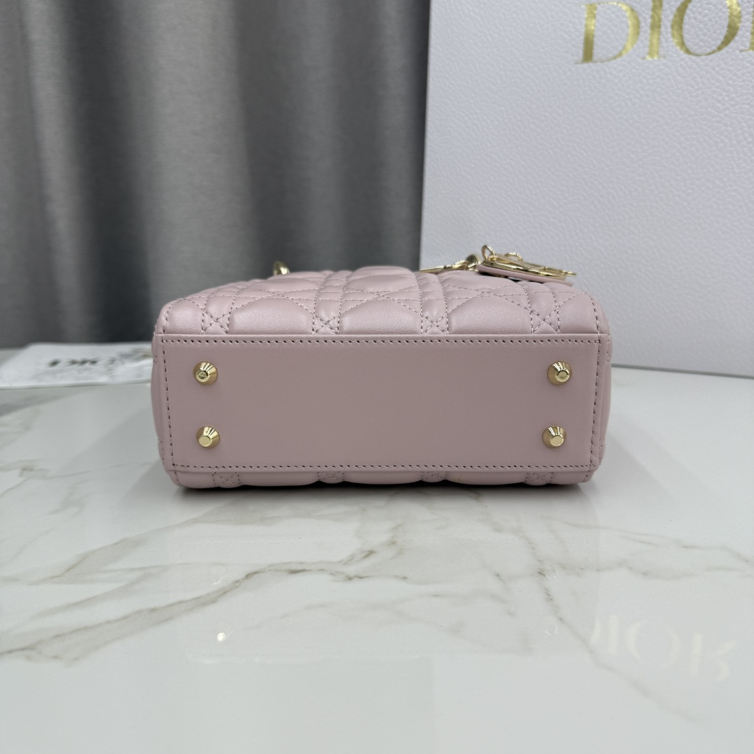 Three-compartment pearlescent pink - lambskin gold buckle Lady Dior bag - Model number: M0505