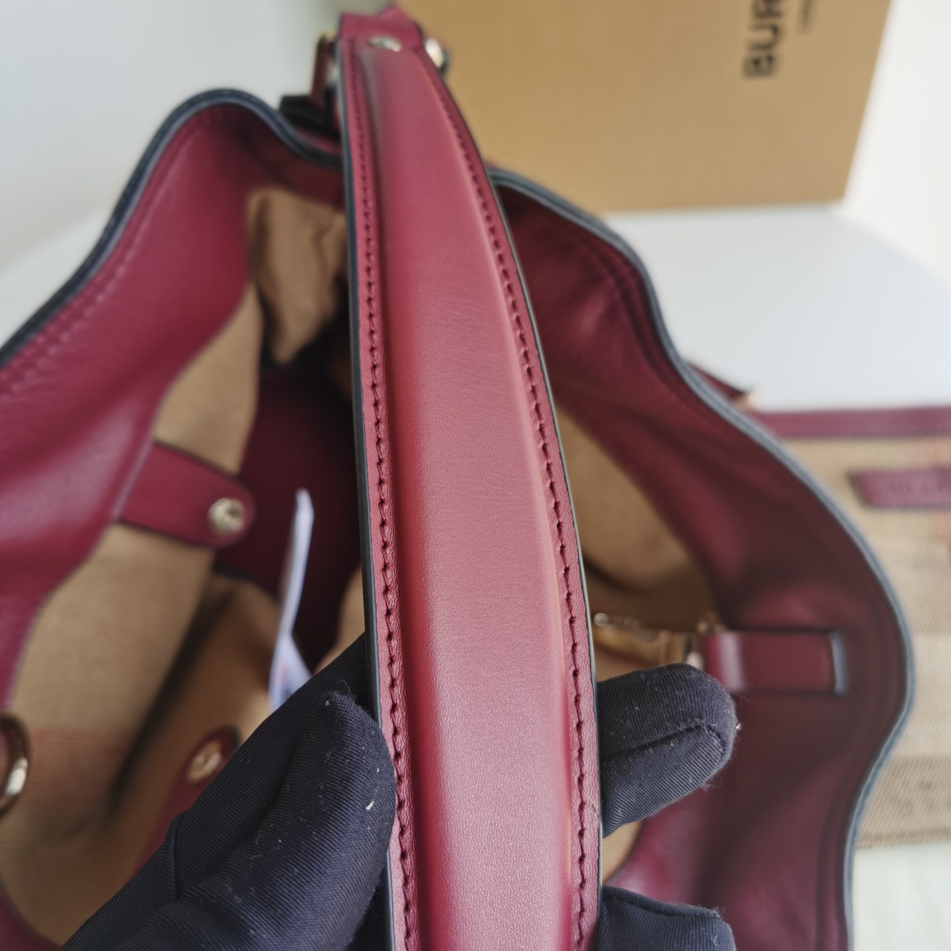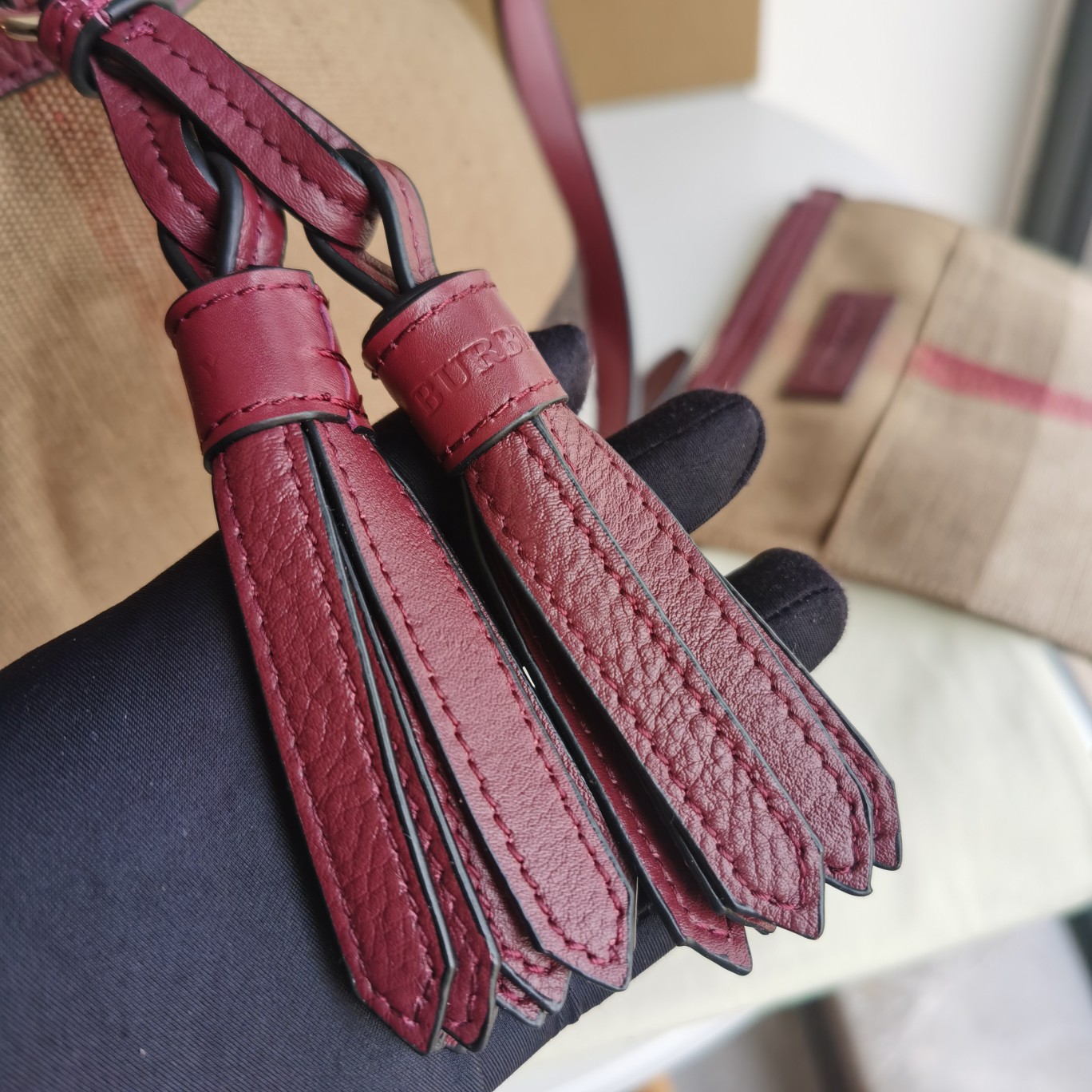 Original Burberry's most popular barrel bag is now available! [Model 9371] How about the quality? The details speak for themselves! Original factory pure cotton and linen, details synchronized with the authentic version in earth yellow, black, and burgundy! Full set of imported Korean washing hardware, double-layer material lining, includes removable small bag & long shoulder strap, anti-counterfeit washing label. Dimensions: 25x19x34cm