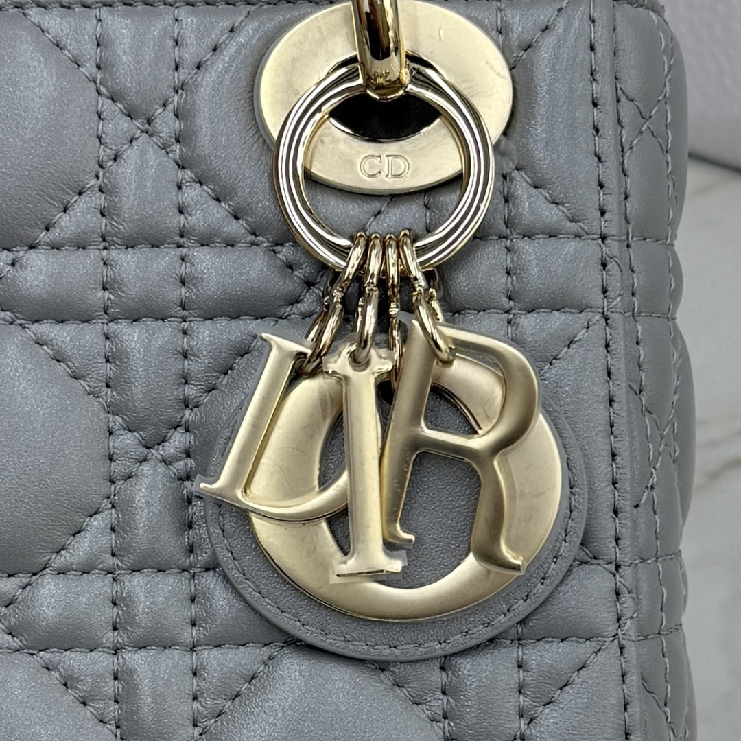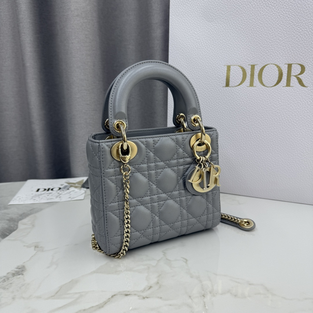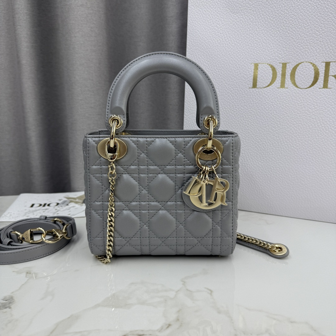 Original title: Three-compartment pearlescent gray - lambskin gold buckle Lady Dior bag - Model number: M0505