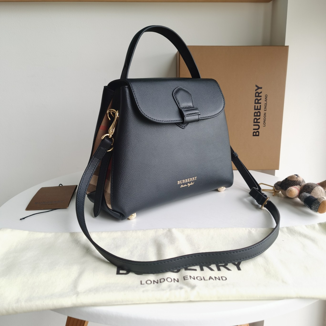 Original title: Original order [Model: 6151] A style of soft and beautiful tote bag made from selected soft and durable full-grain leather, paired with British spun House plaid pieces, meticulously crafted by Italian workshops. The sleek and compact size design comes with multiple slip pockets and zippered pockets. A gold metal base provides protective effect. This style features an adjustable handle or a detachable narrow strap, suitable for hand-carrying or cross-body wear. 26 x 12 x 21cm