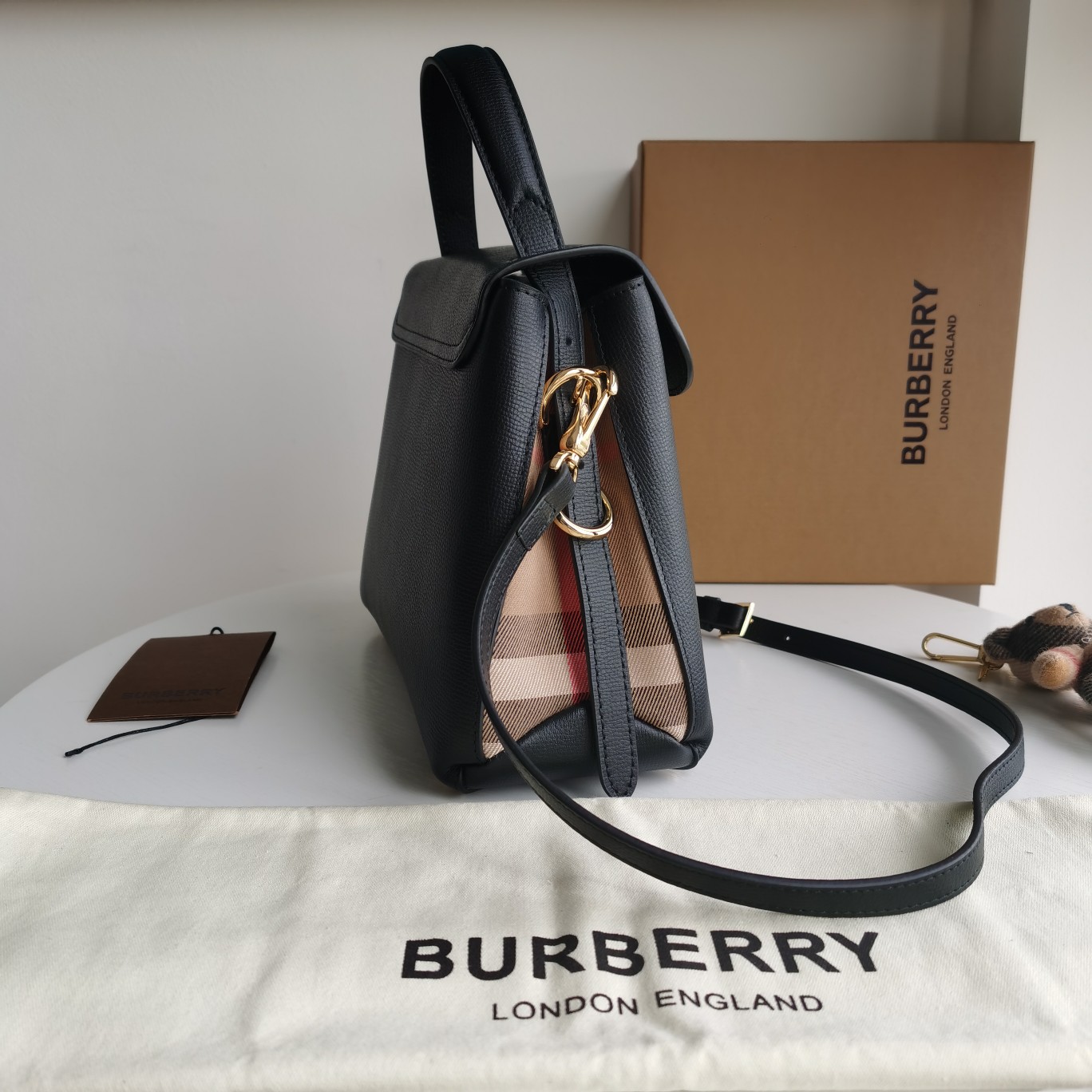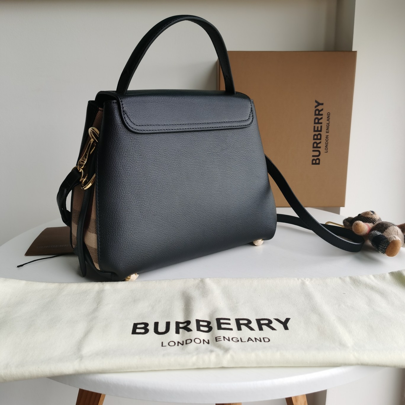 Original order [Model: 6151] A style of soft and beautiful tote bag made from selected soft and durable full-grain leather, paired with British spun House plaid pieces, meticulously crafted by Italian workshops. The sleek and compact size design comes with multiple slip pockets and zippered pockets. A gold metal base provides protective effect. This style features an adjustable handle or a detachable narrow strap, suitable for hand-carrying or cross-body wear. 26 x 12 x 21cm