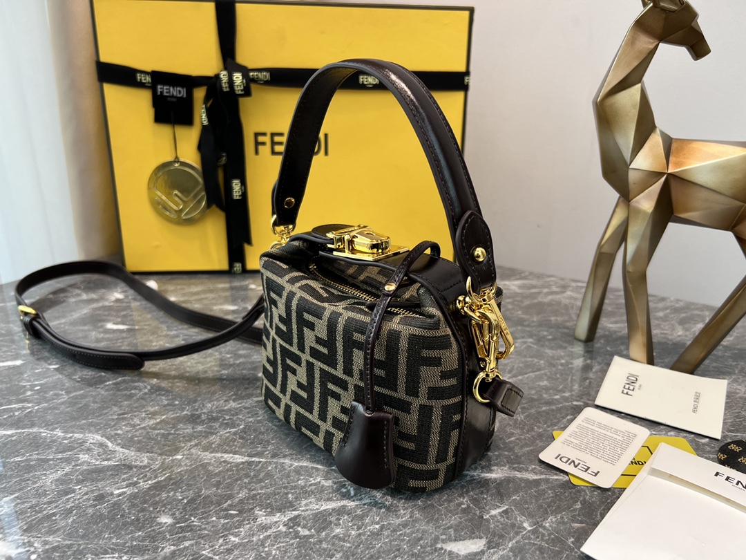 Factory Direct Sales Dark Brown Line Top Original Factory Fendi Vintage "Little Lunch Box" Youthful Artifact, Not Only Cute, Capacity Also Very OK, Combining Fashion and Practicality 15cm..
