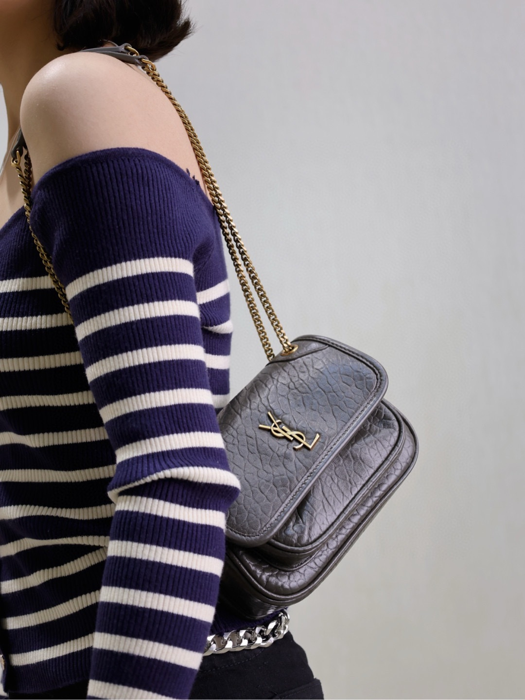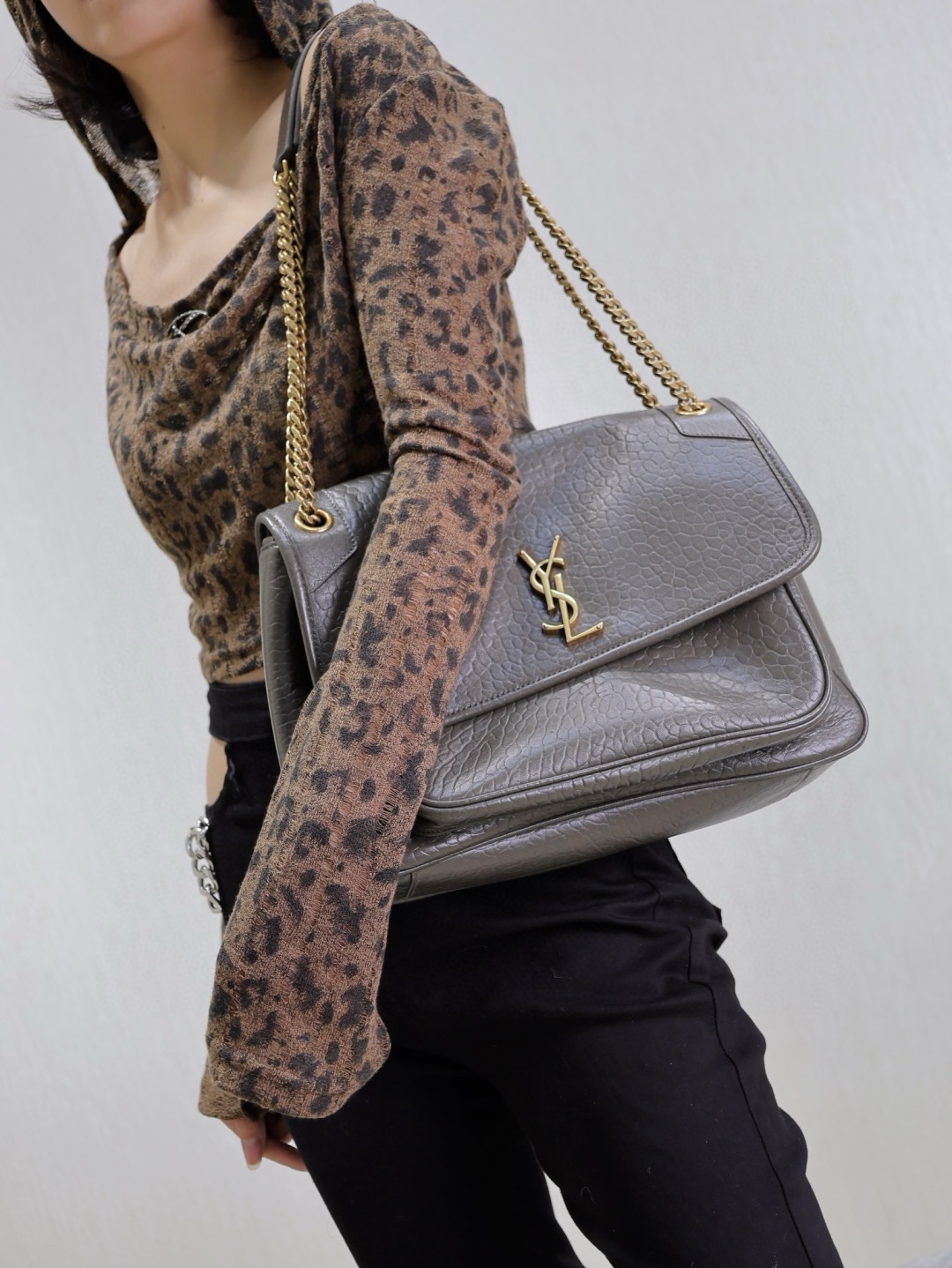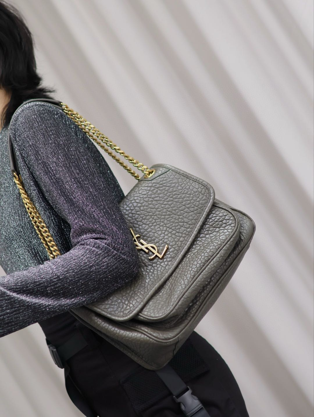 YSL Saint Laurent Niki Green Crocodile Embossed