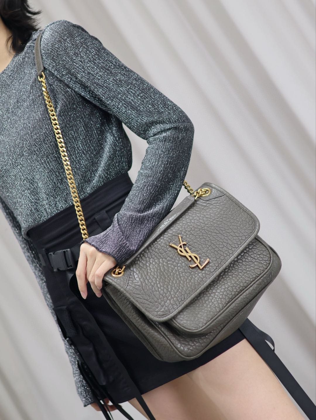 Original Title: Niki_Green Elephant Print Gold Buckle 22/28cm