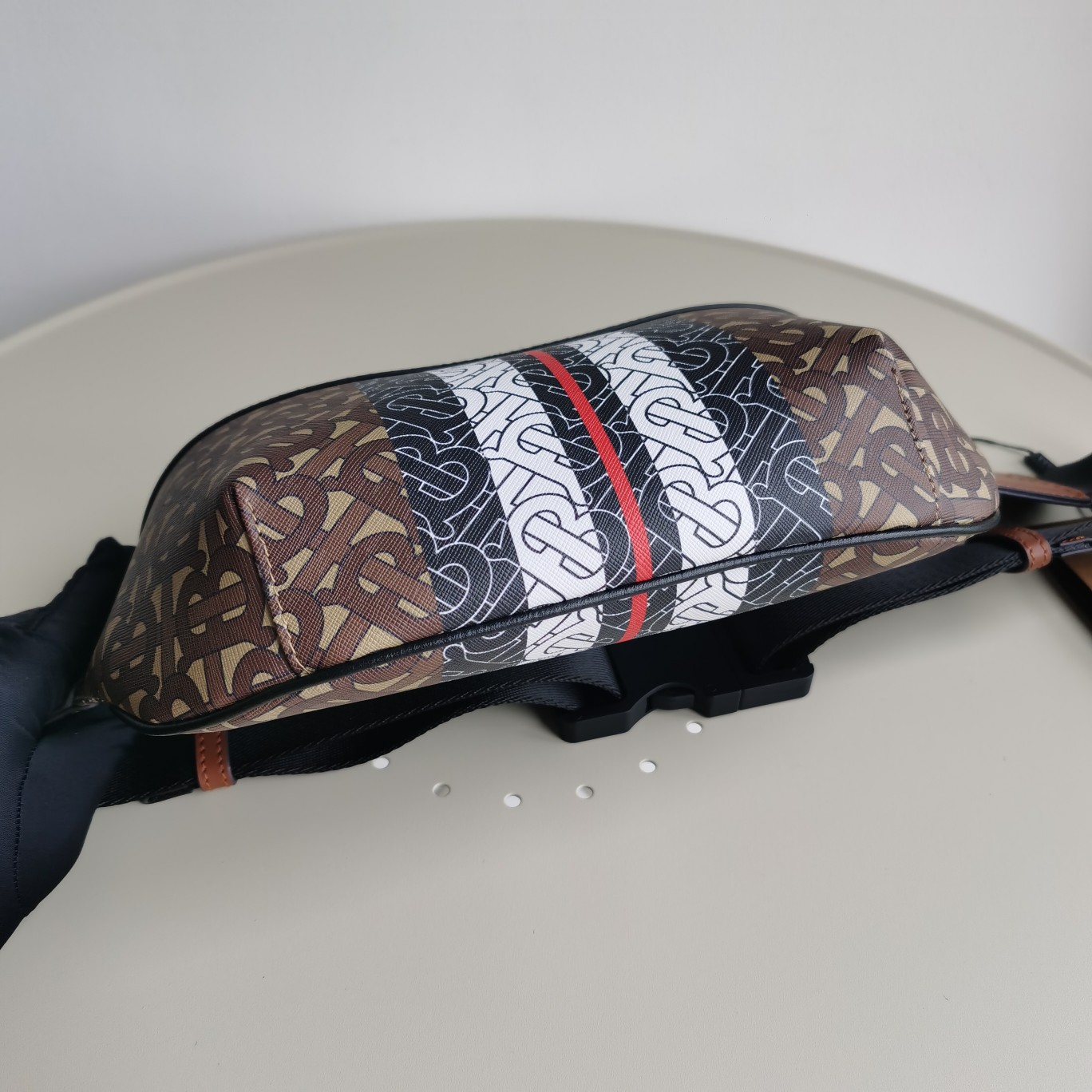 Original title: Original quality Burberry new waist bag draws inspiration from the 90s street style, featuring a new Bt logo design, and is renewed with new eco-friendly canvas material, which is mainly made from renewable resources. Printed with a unique exclusive logo stripe, paired with Italian tanned leather trim. Size: 31 -7.5-16vm