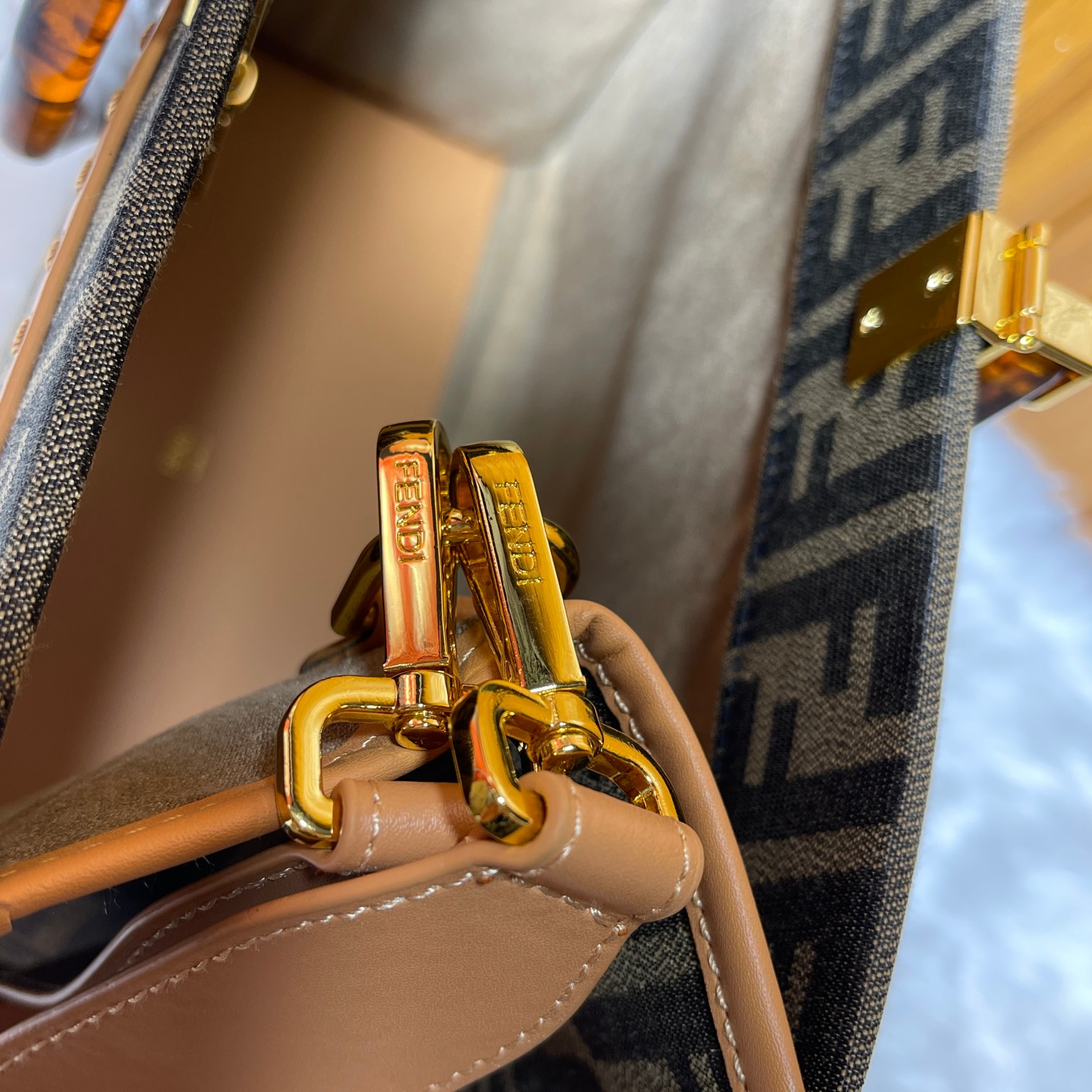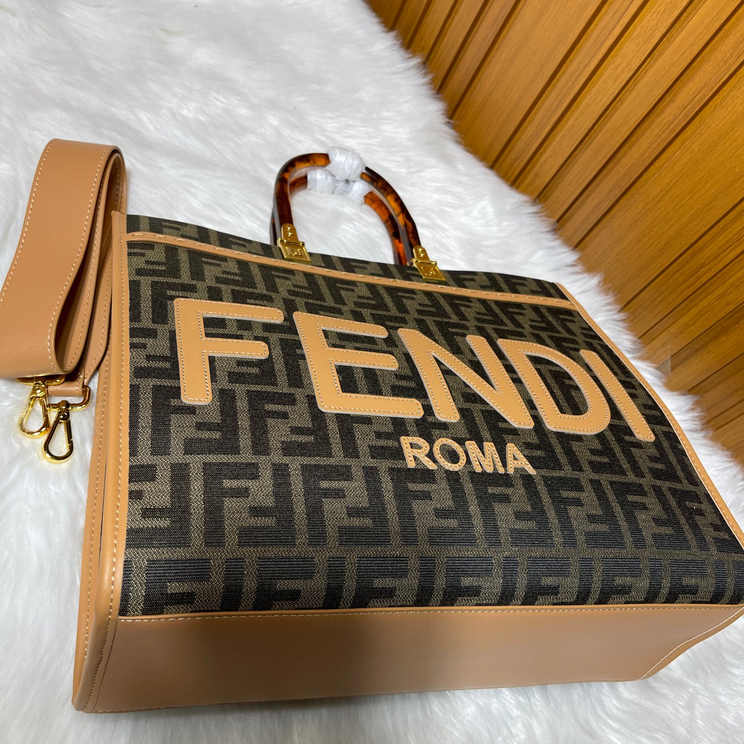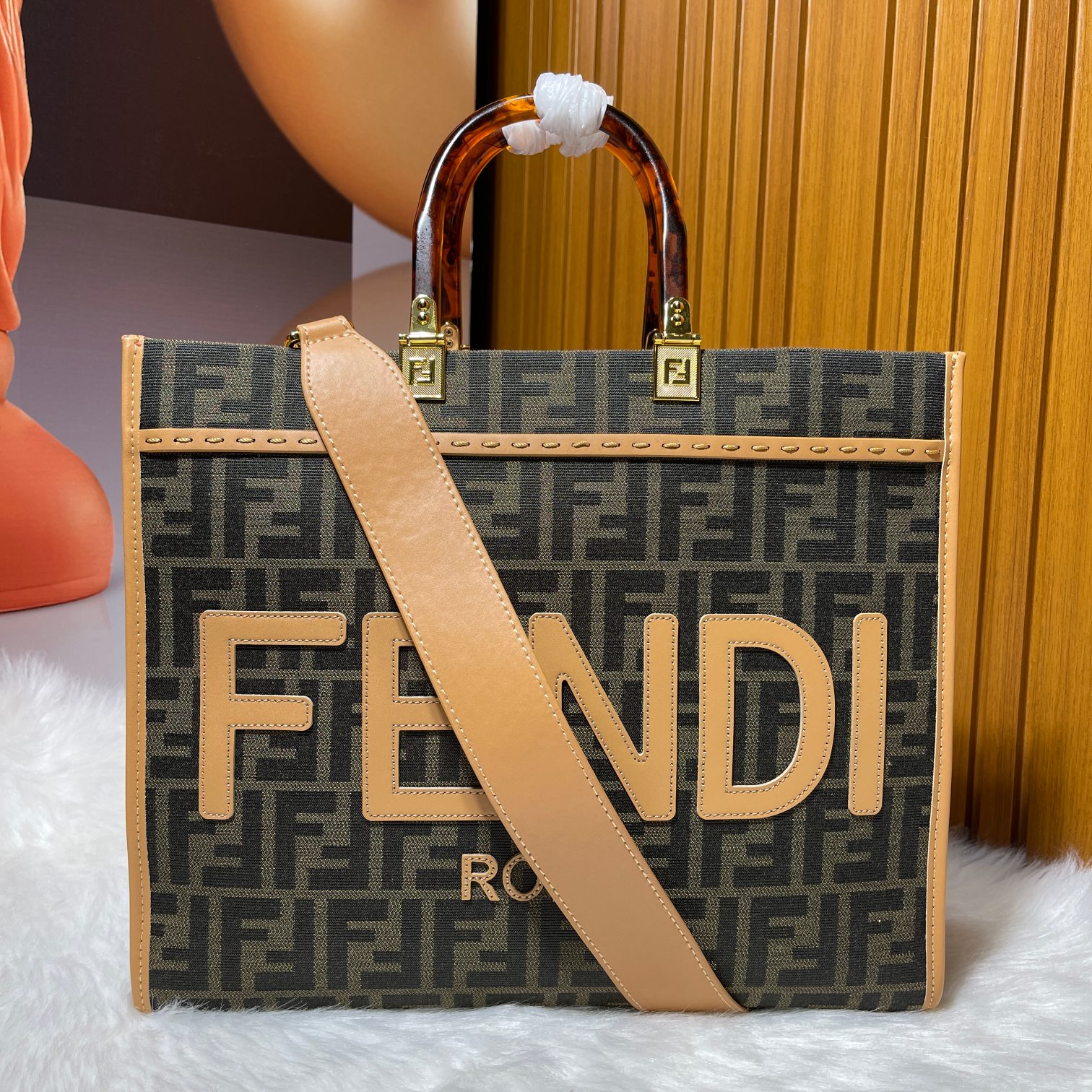 Factory direct sales Tote bag series limited edition uses iconic double F monogram fabric, lucite organic glass double handles, the front lettering on the bag is made of cowhide material, the FENDI logo is the biggest highlight of the entire bag, comes with a full leather long shoulder strap, can be worn as a single shoulder or crossbody, carrying it alone has a strong presence and doesn't hurt the hand, overall retro feeling is super strong, very suitable for fashion lovers who like the retro style, highly recommended!