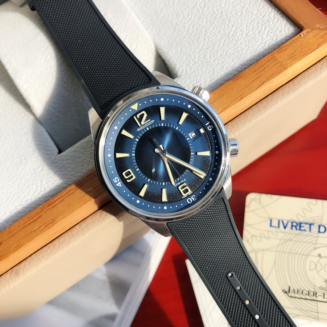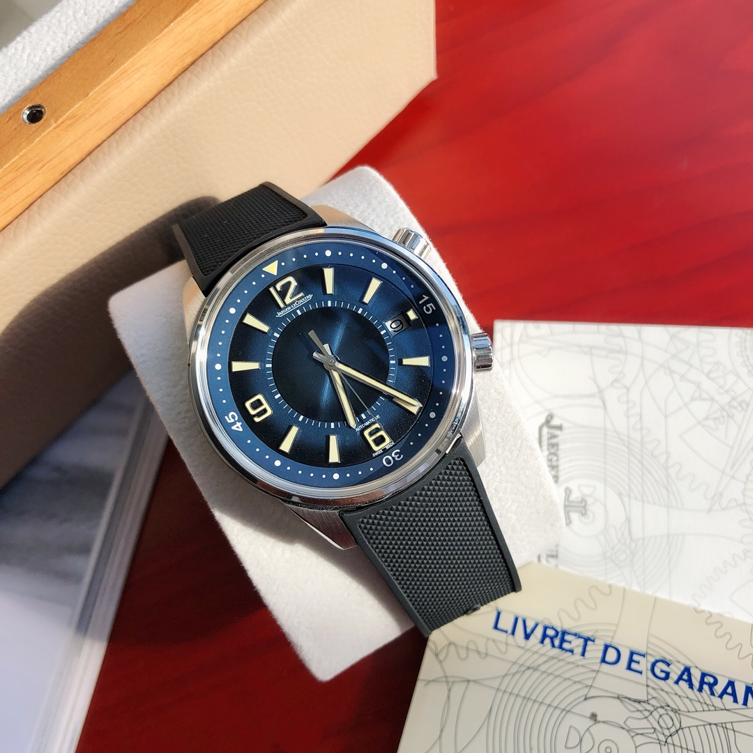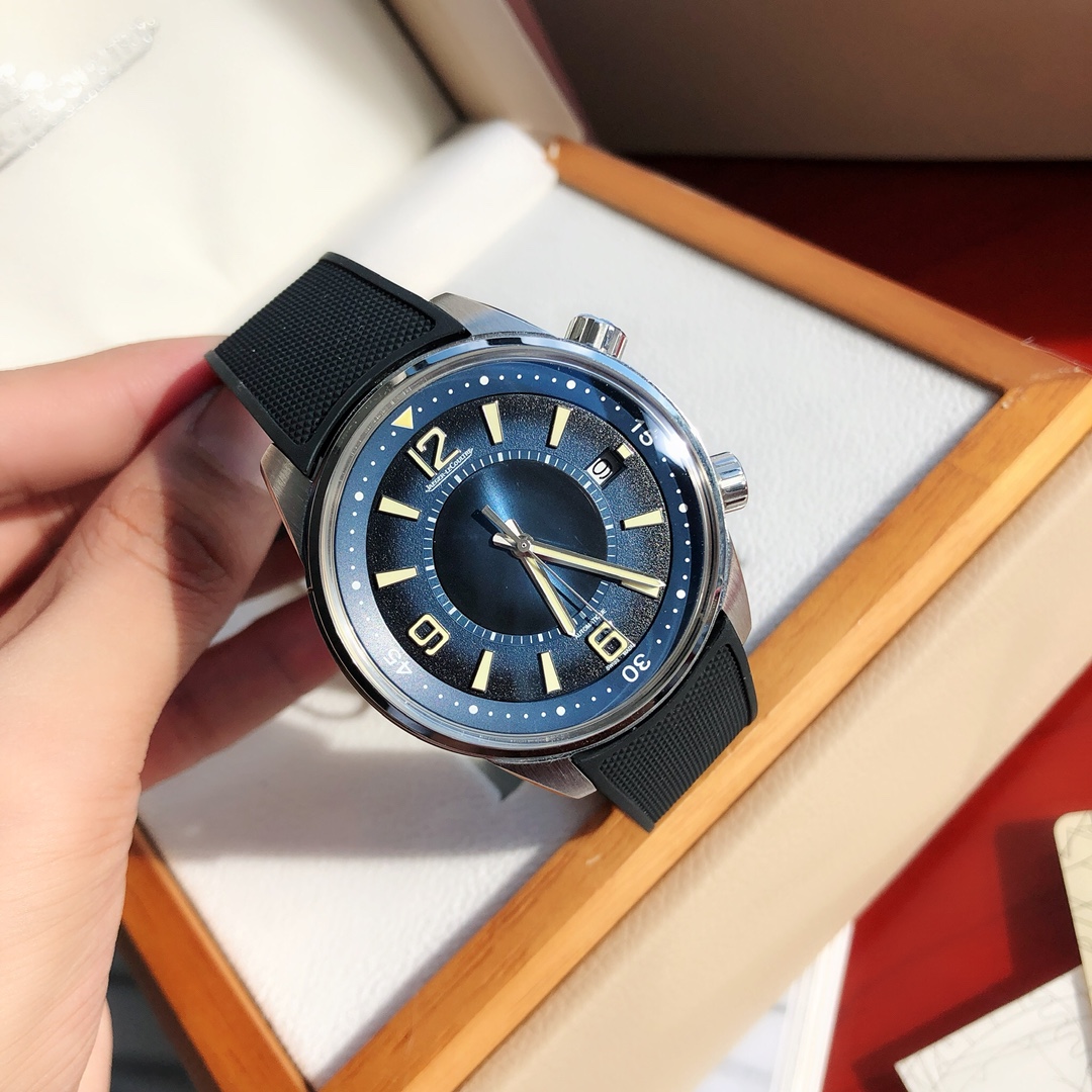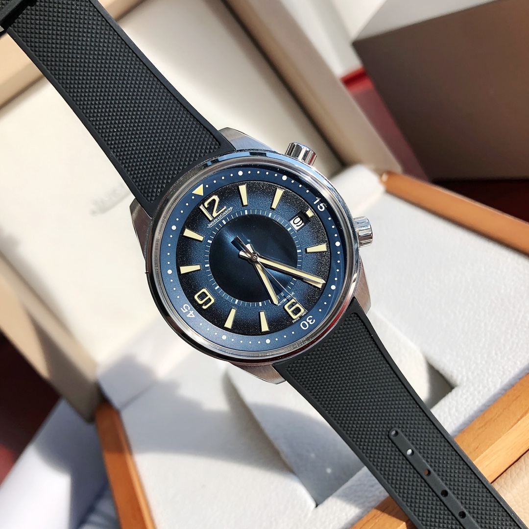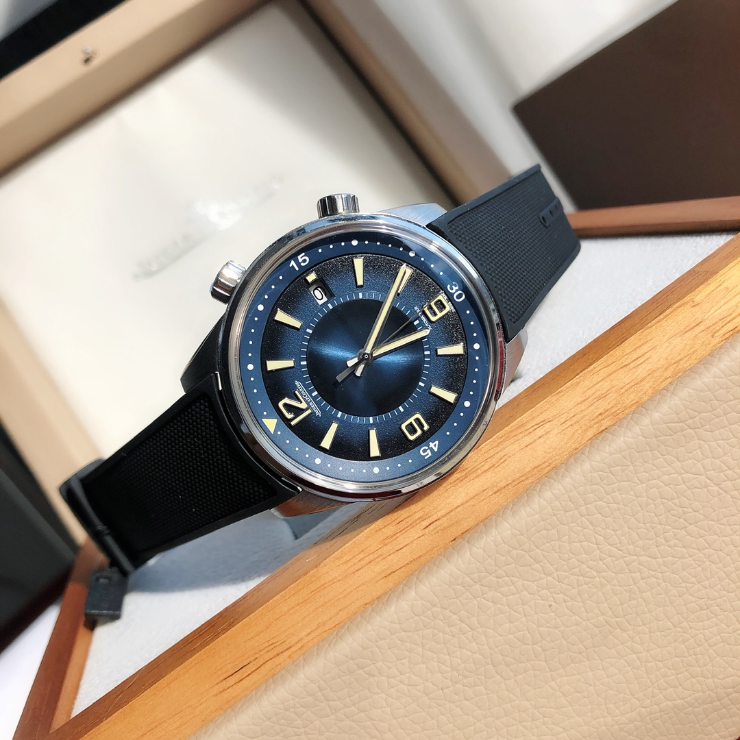 Dimensions 42x13.1mm. The classic and sleek case is entirely hand-finished, with brushed sides and polished edges. The craftsmanship and processes closely match the genuine product. The case back is also engraved with a diving suit pattern characteristic of Jaeger LeCoultre, featuring carved decorations.