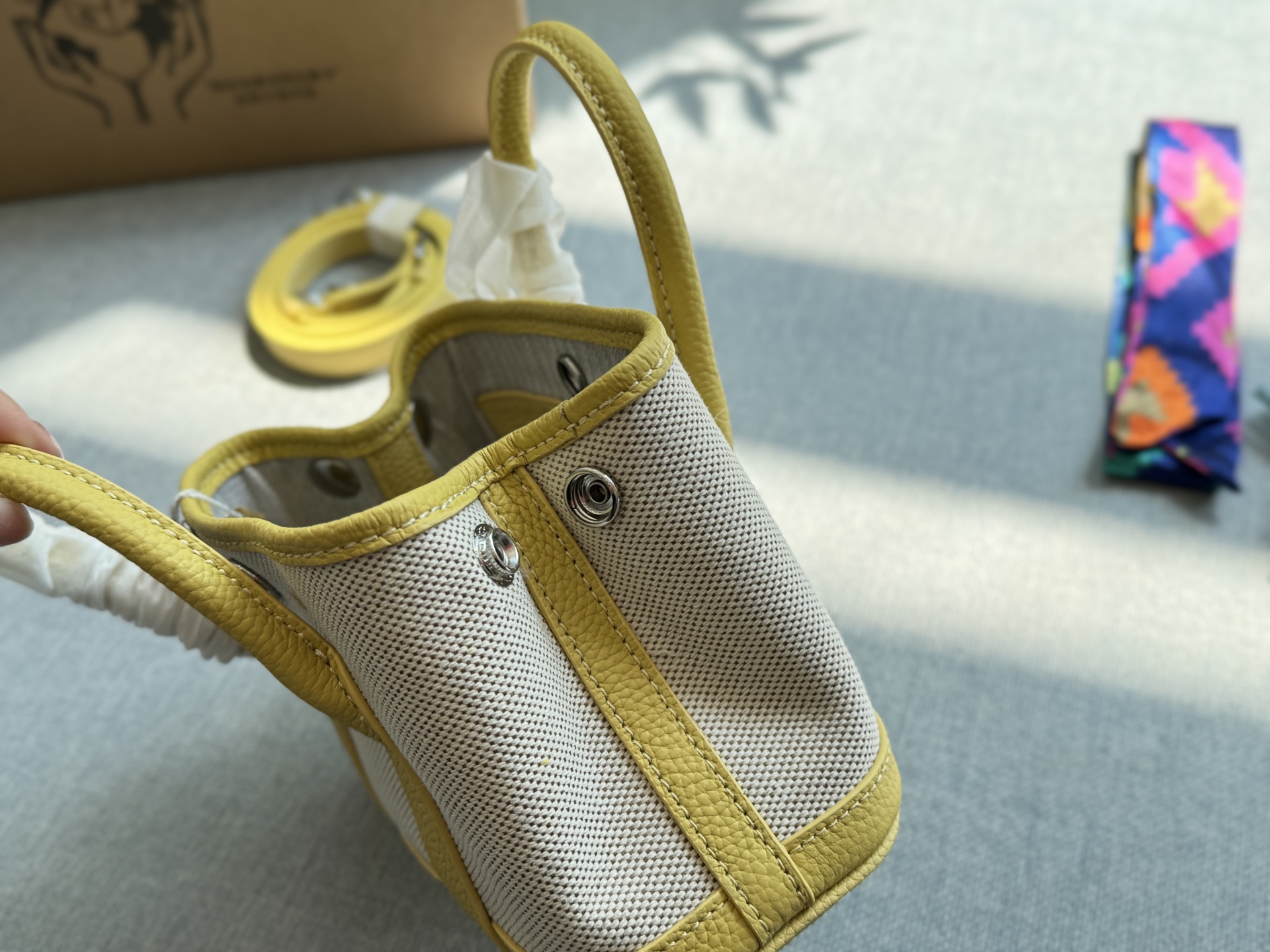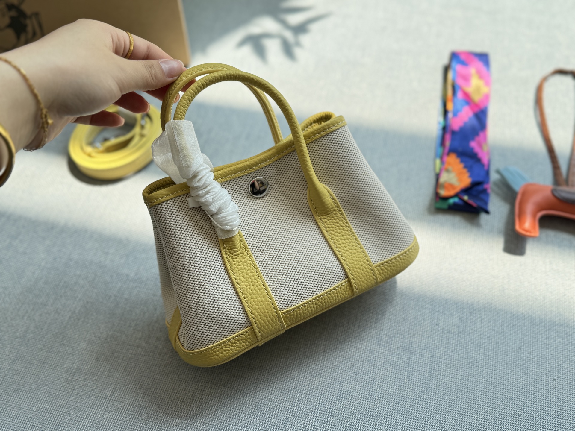 HERMES Garden Party NEO Garden 23 Silver Buckle Canvas and Leather Combination Garden Bag Handheld Crossbody Bag
