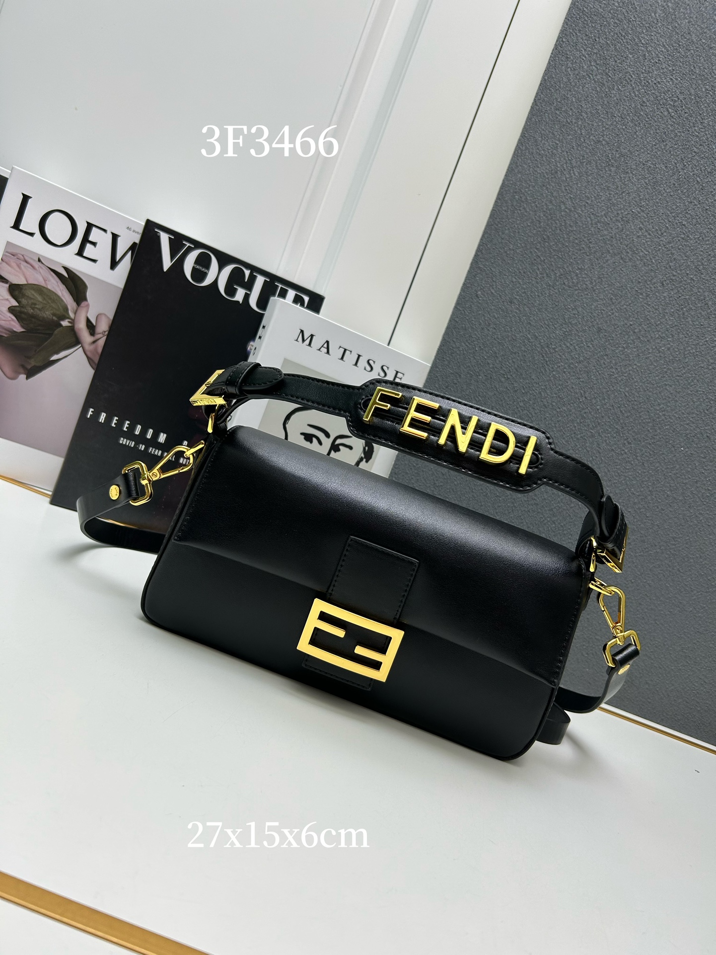 Factory direct sales, running volume price, original order, official website latest Fendi limited edition baguette first release! Collaboratively launching the classic medium Baguette bag, uniquely made from classic smooth cowhide. The wrist strap is adorned with Fendi letter decorations, offering a refreshing visual feast! The cover hardware and the bag's cowhide are perfectly combined! The bag comes with a detachable handle and a long shoulder strap. The wrist strap can be extended with the long shoulder strap! Can be carried by hand, over the shoulder, or cross-body, meeting daily needs! Comes with a packaging box, full of premium feel. Model 2366 black, size 27-6-15. Place orders + WeChat [Hi881689]