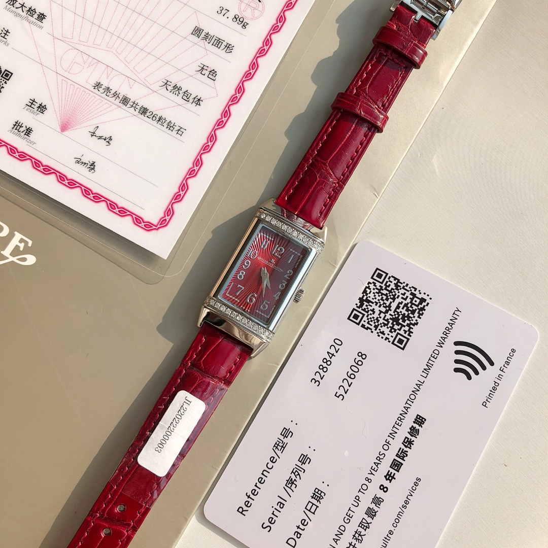 The strongest new Jaeger-LeCoultre model has arrived! High-quality goods! 26 diamonds! 26 diamonds! Each watch comes with a warranty card! Fully corresponds to the boutique! Please distinguish from the inferior non-authentic versions circulating in the market! JL Jaeger-LeCoultre women's watch with 26 real diamonds, comes with full set of packaging. Imported Swiss movement with a service life of up to 10 years, imported American alligator leather strap. Our model - 26 natural South African real diamonds, VVS grade, 1.6mm size, weight 0.29 carats, eight hearts and eight arrows craftsmanship, each watch has an independent code, national inspection certificate, verifiable online! Watch size 41.1x20mm, comes with the latest boutique packaging! Makes a great gift! 👍