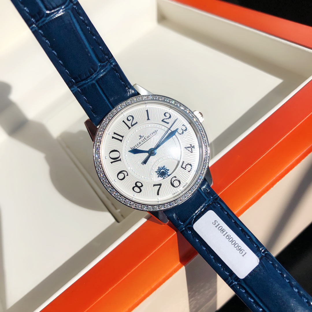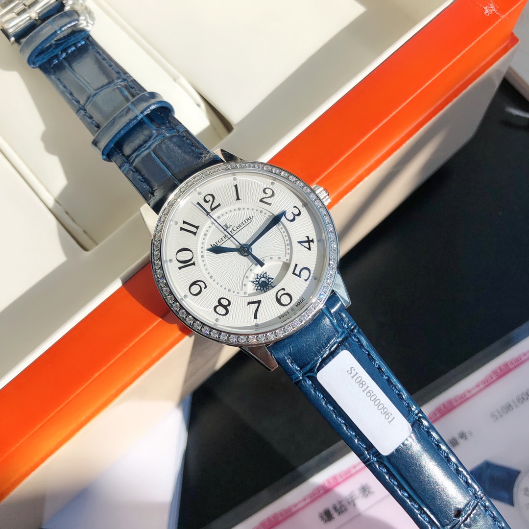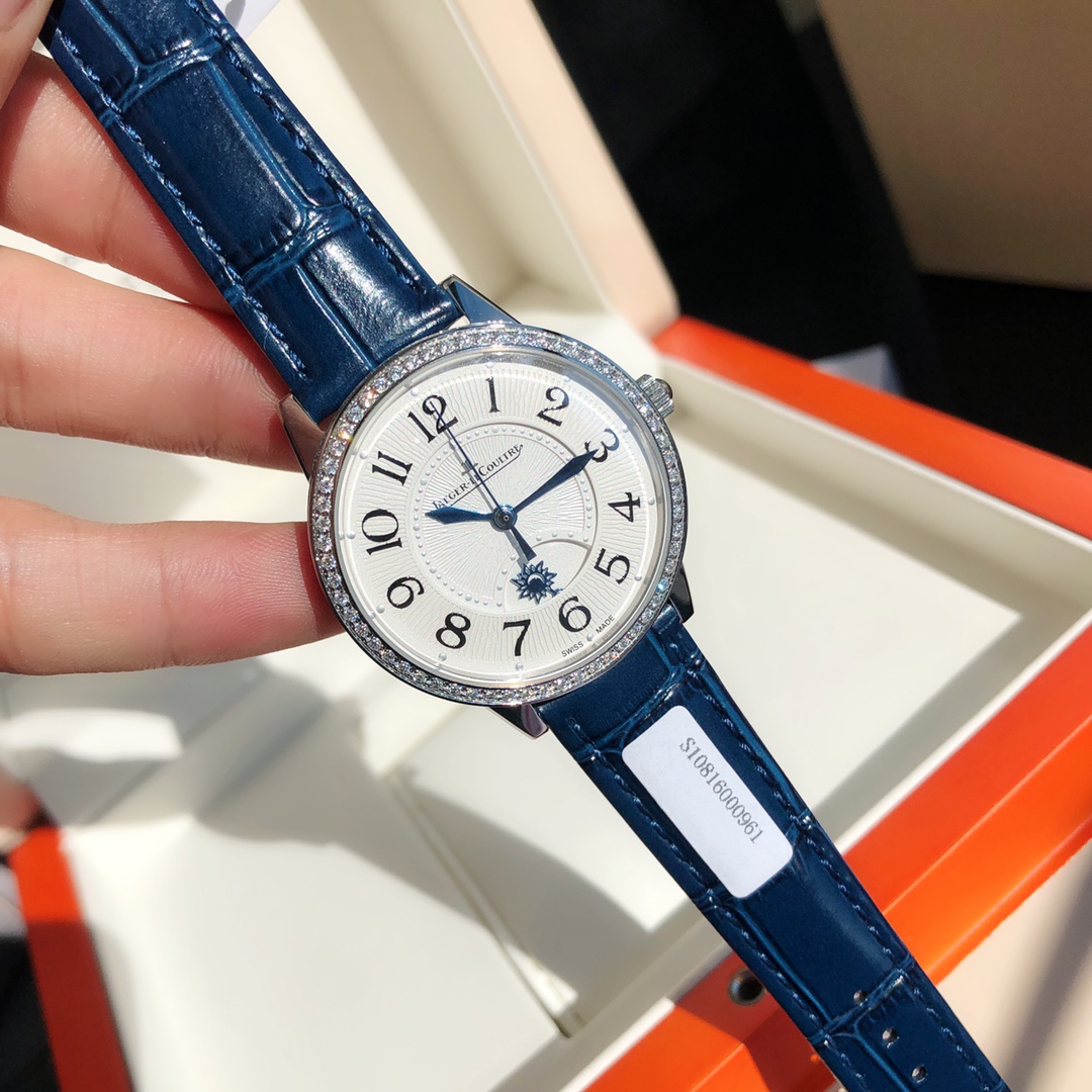 Addresses all shortcomings of any current versions on the market—simple and elegant, fully showcasing romantic charm! Watch dimensions: 34mm in diameter, 8.9mm in thickness. The sleek and refined case is meticulously polished to ensure craftsmanship alignment and texture matching with the authentic product. The bezel is set with 60 VS1.5 top-grade natural South African diamonds, totaling 0.69 carats. The diamond setting is meticulous, crafted with substantial investment. Restores the most beautiful charm of the authentic product! Equipped with a 9015 modified Jaeger-LeCoultre in-house CAL.898A movement, perfectly replicating the original day/night and hour/minute/second functions, faithfully following the original replica! Stable timekeeping, quality assured! Fully consistent with the authentic product—electro-optical blue hands shimmer brilliantly under sunlight. Italian calfskin strap is lightweight and breathable, with excellent texture, paired with Jaeger-LeCoultre's classic folding clasp. Comes with a national inspection agency certificate and original gift box—perfect for gifting or personal use!