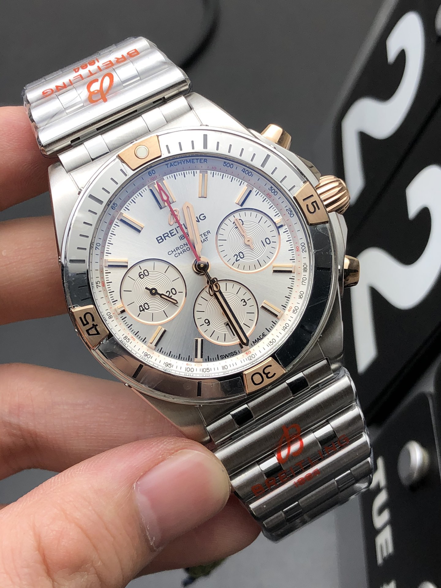 Original Breitling Superocean automatic mechanical watch, 44mm steel case, Swiss ETA2824 movement, sapphire crystal, full set.